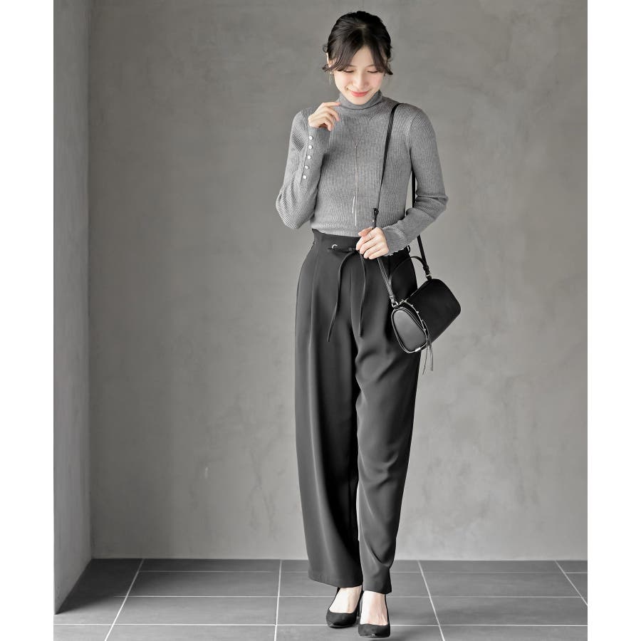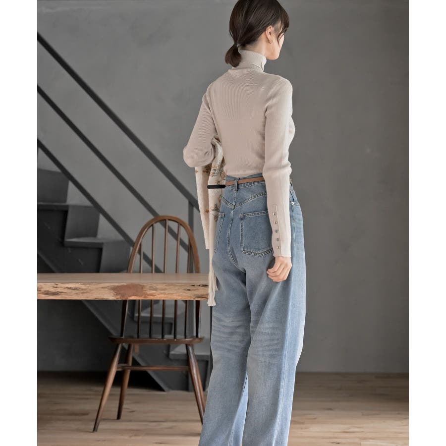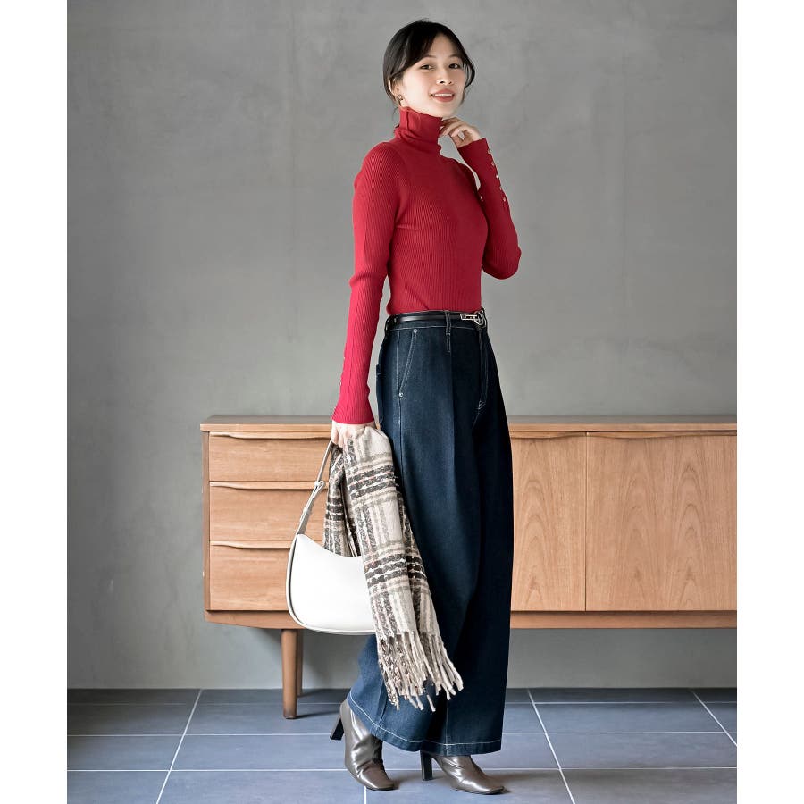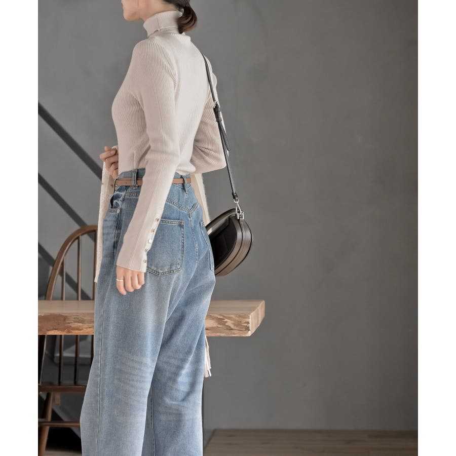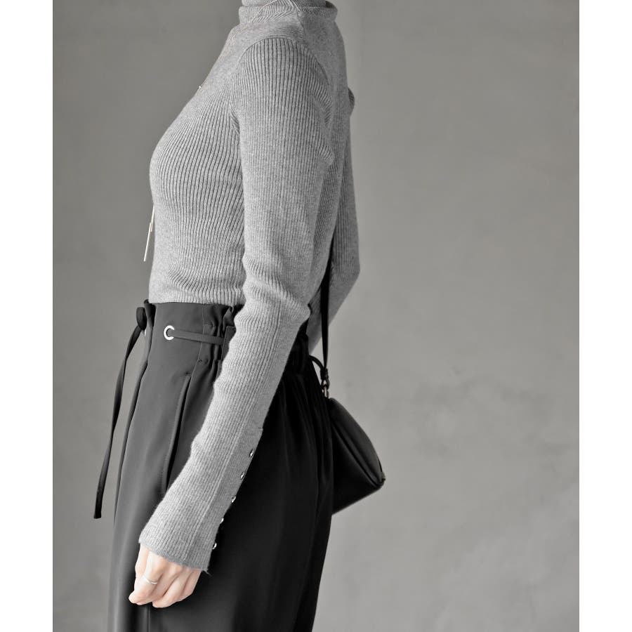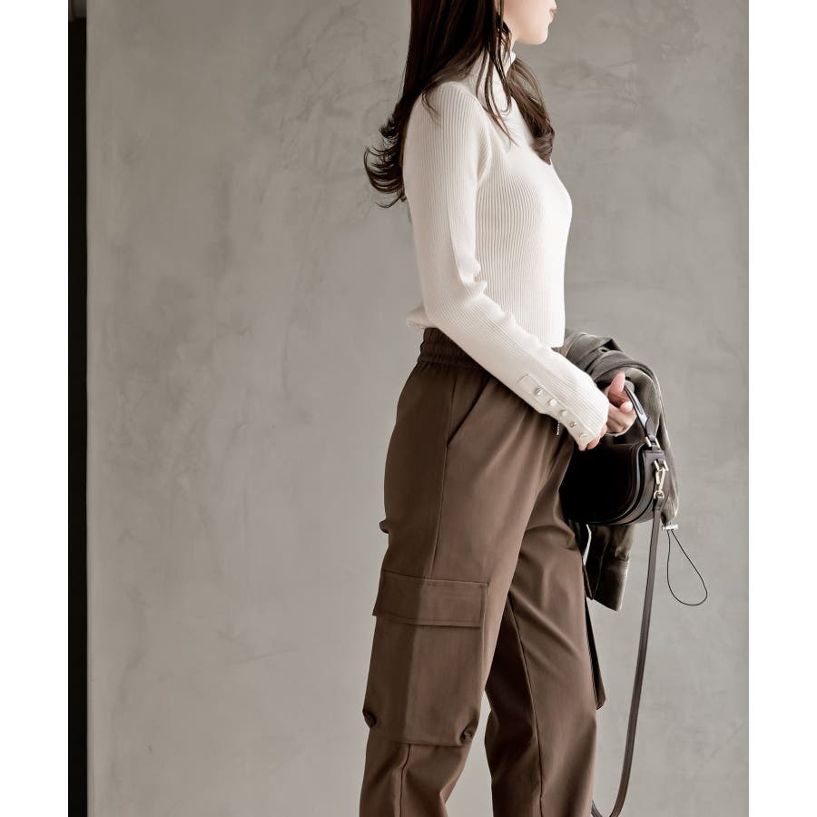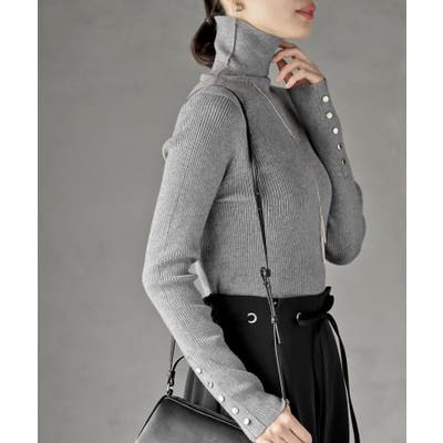 袖口ボタンタートルリブニットプルオーバー