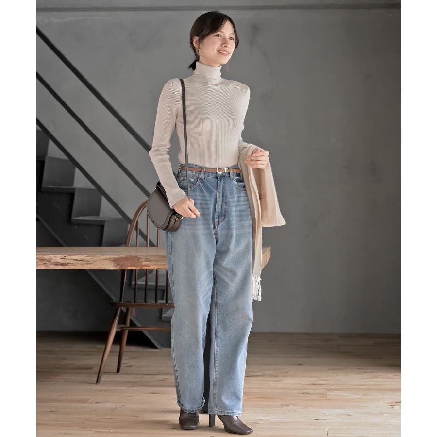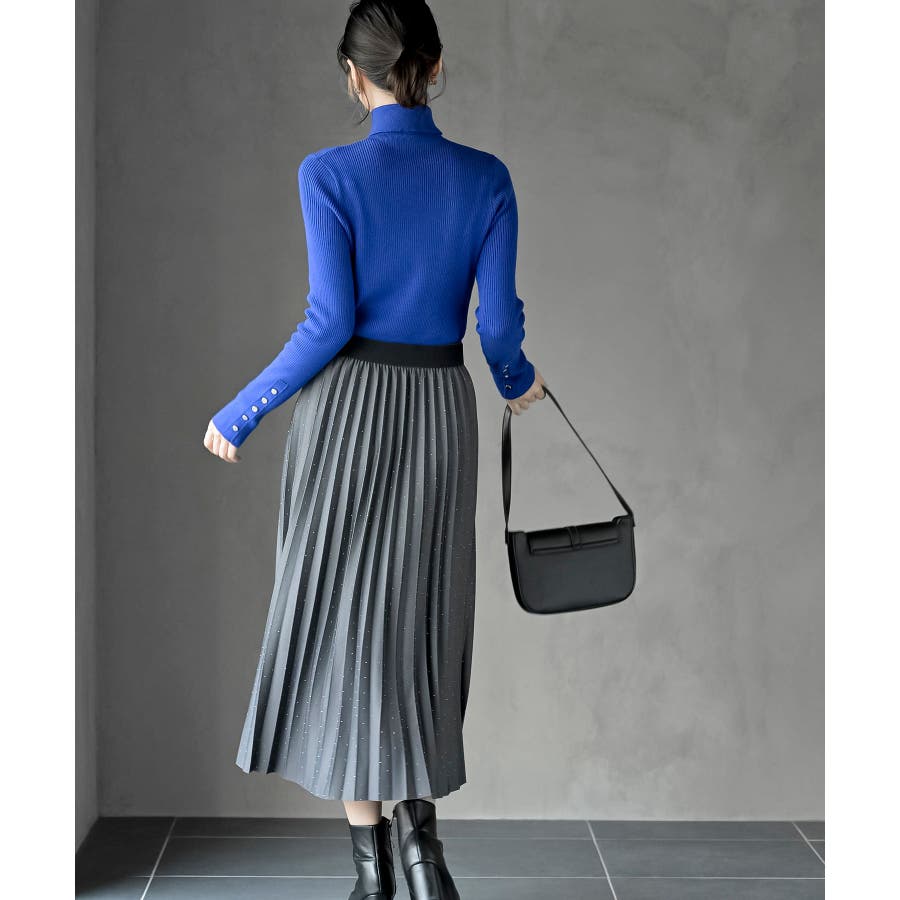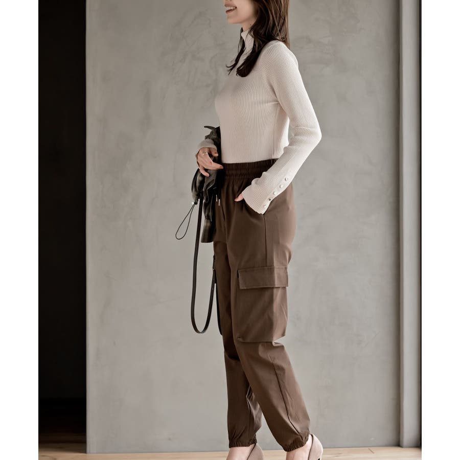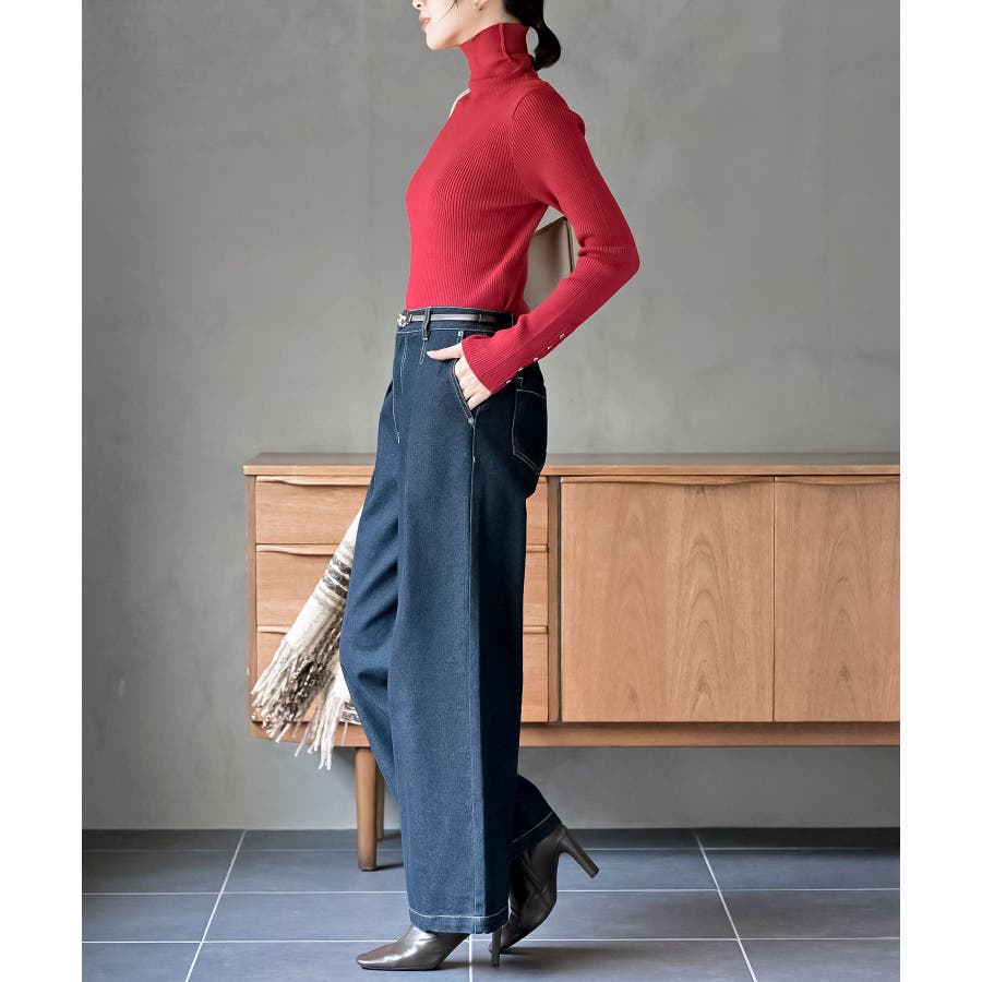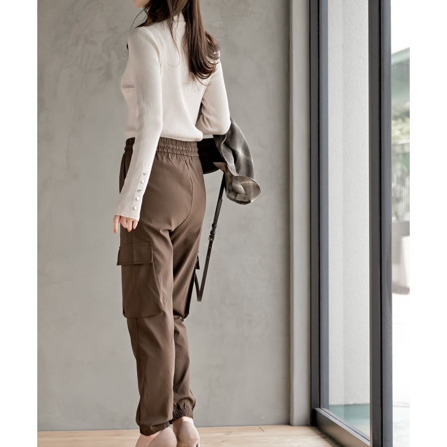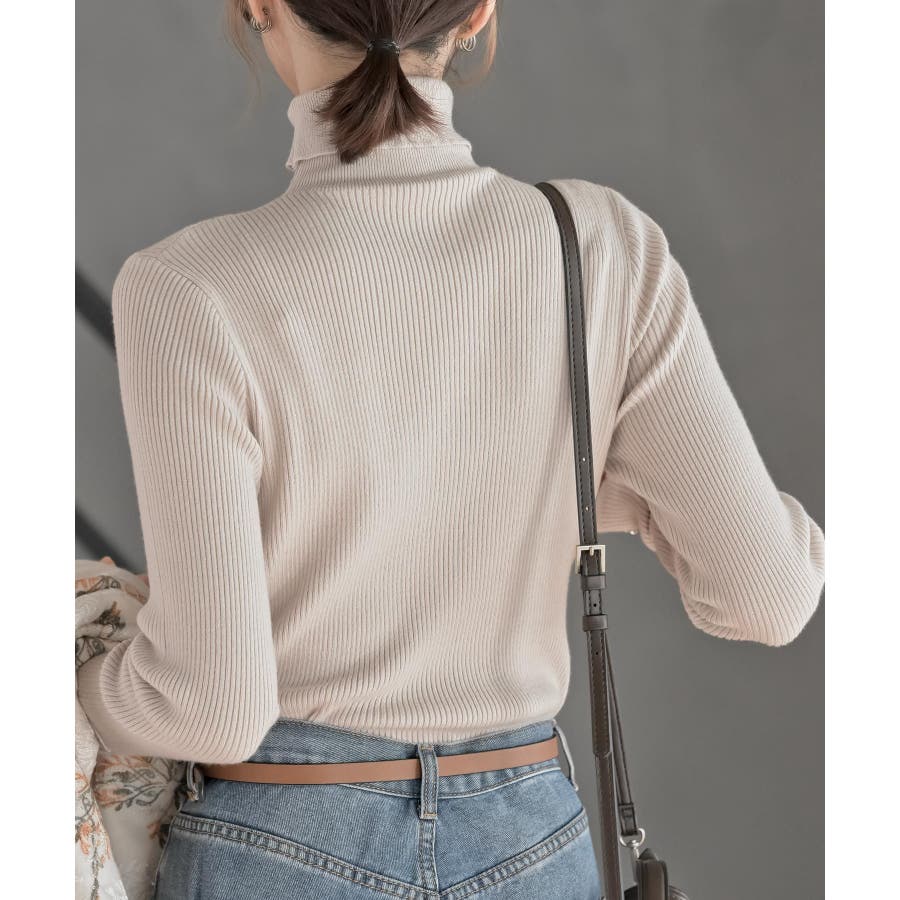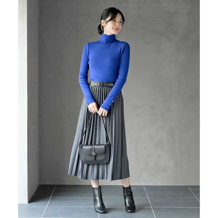 袖口ボタンタートルリブニットプルオーバー