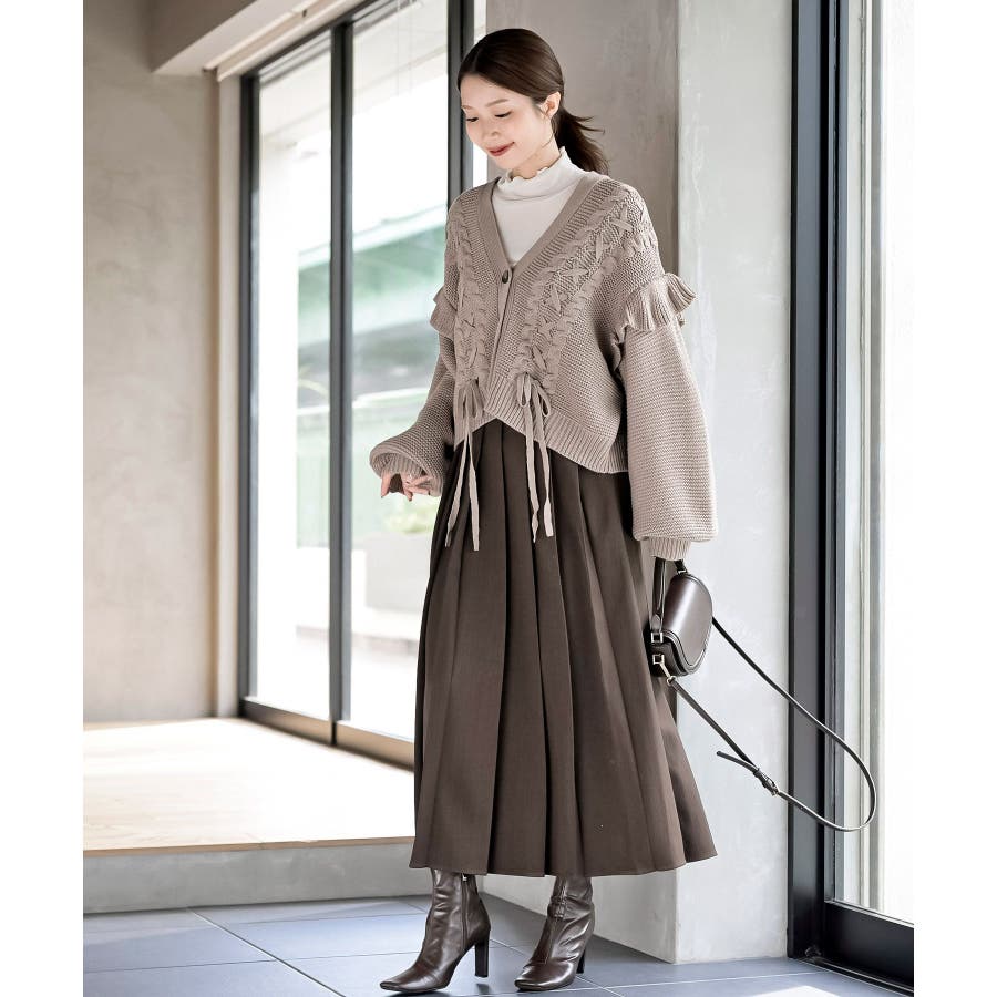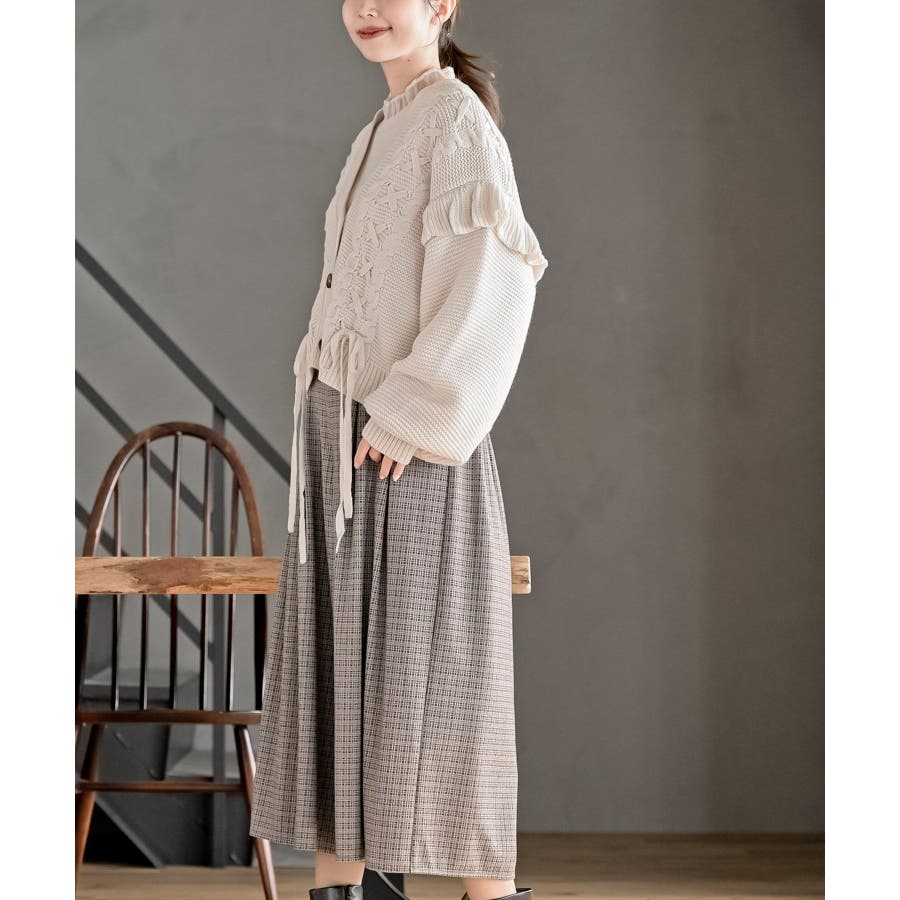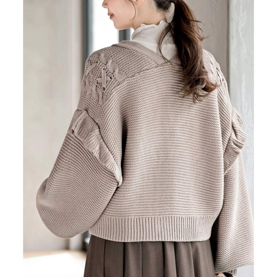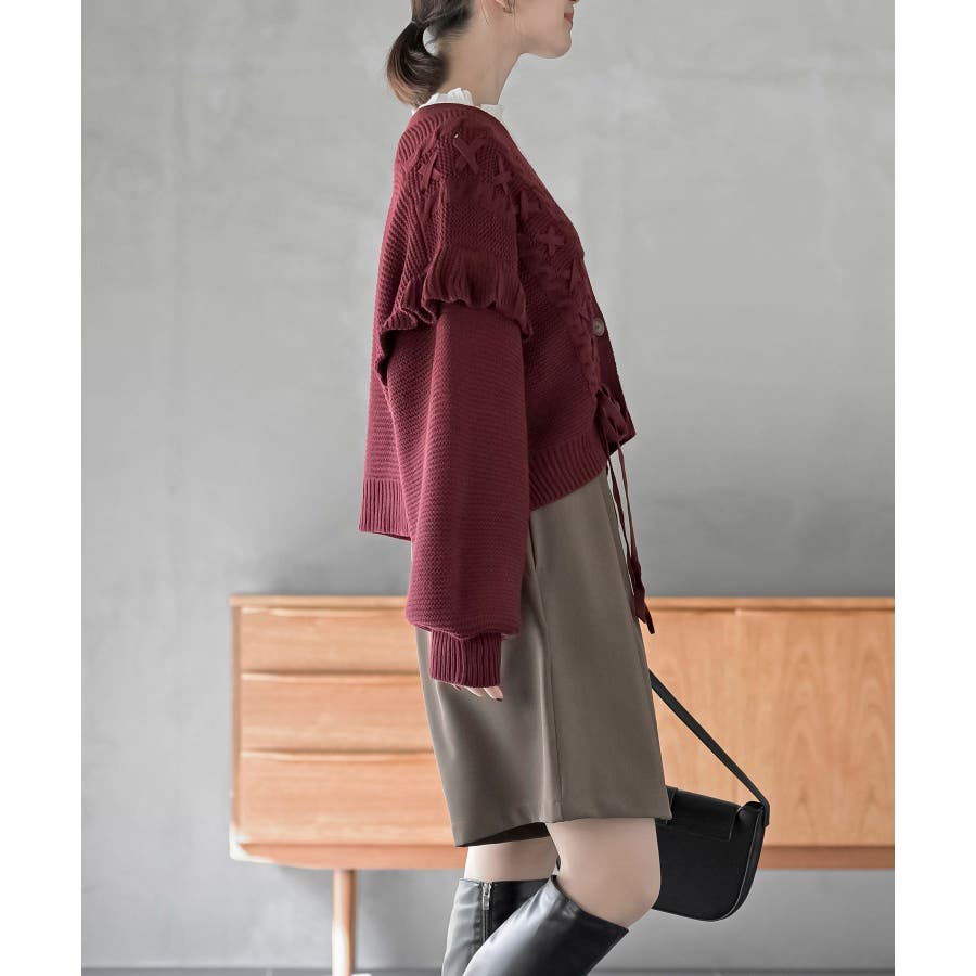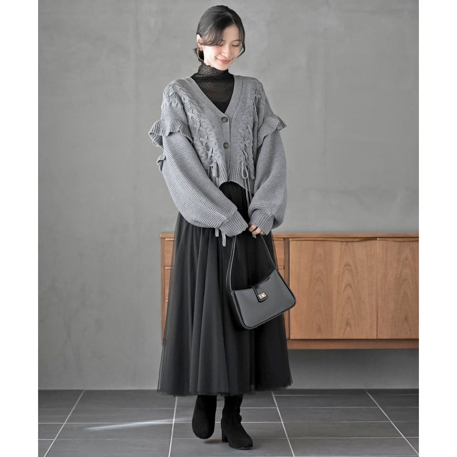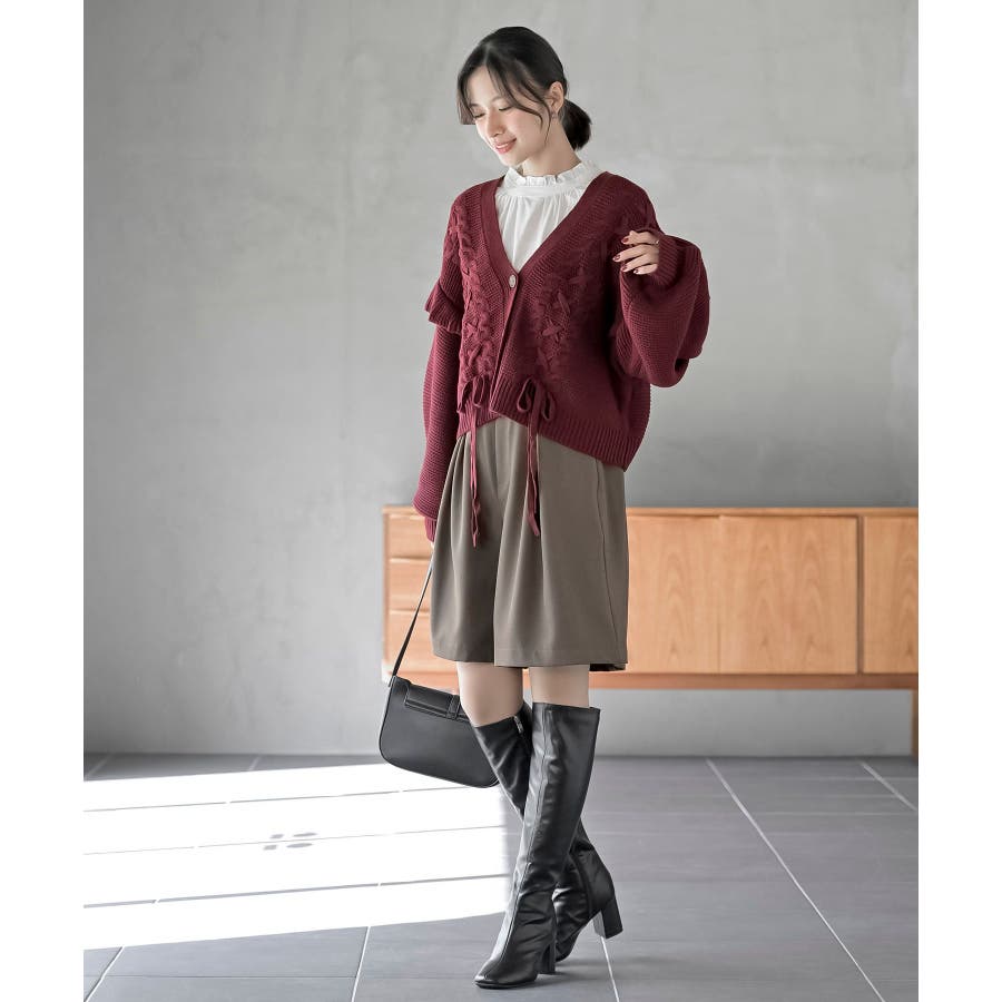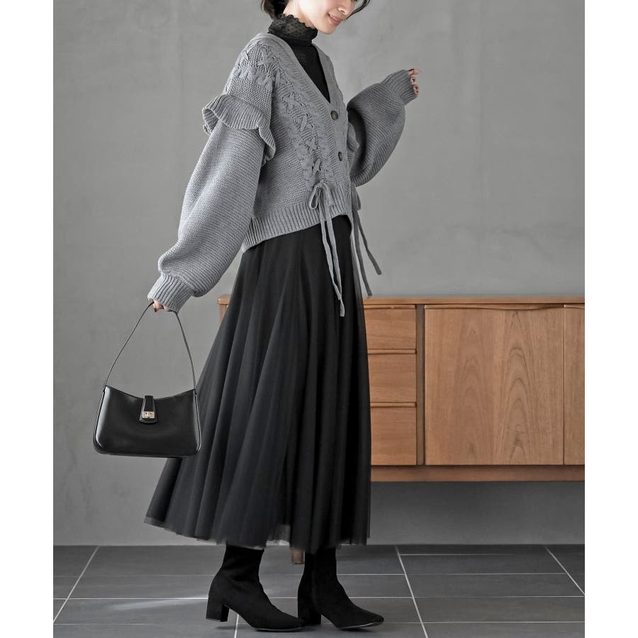 サイドレースアップケーブルフリルニットカーディガン