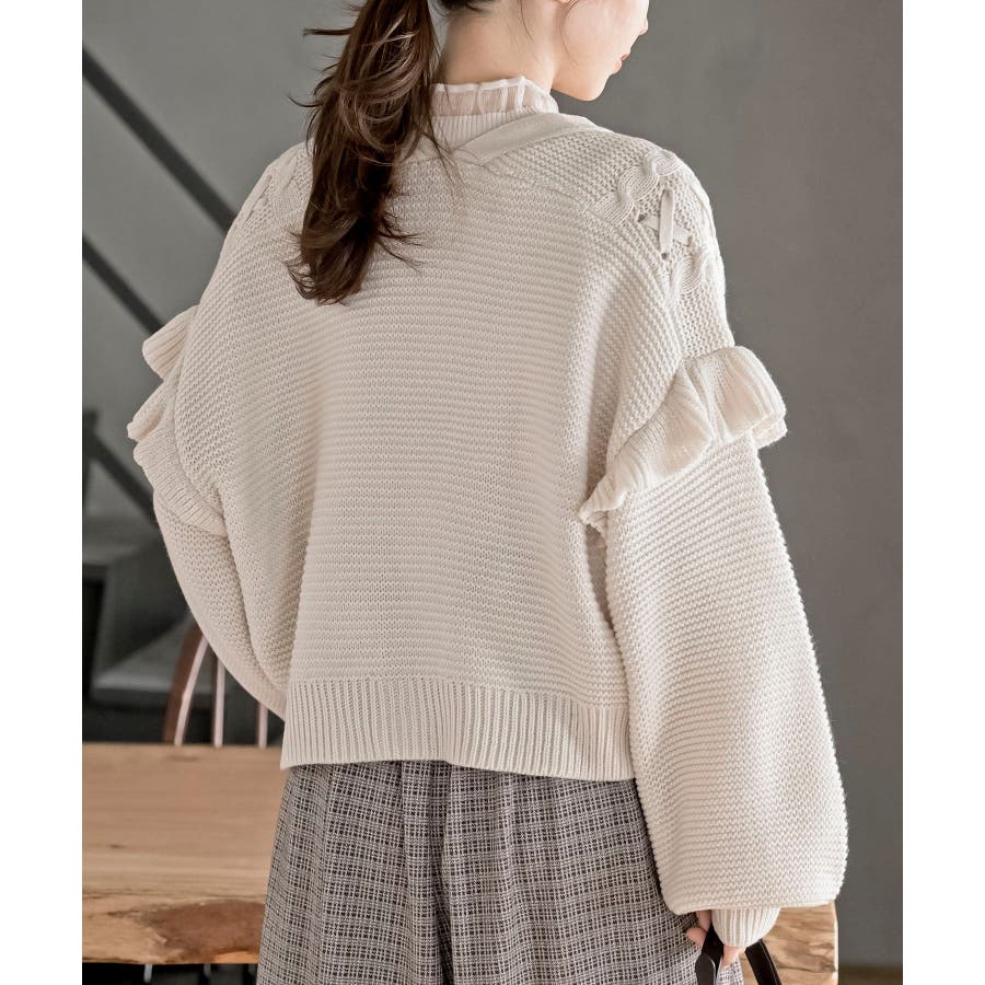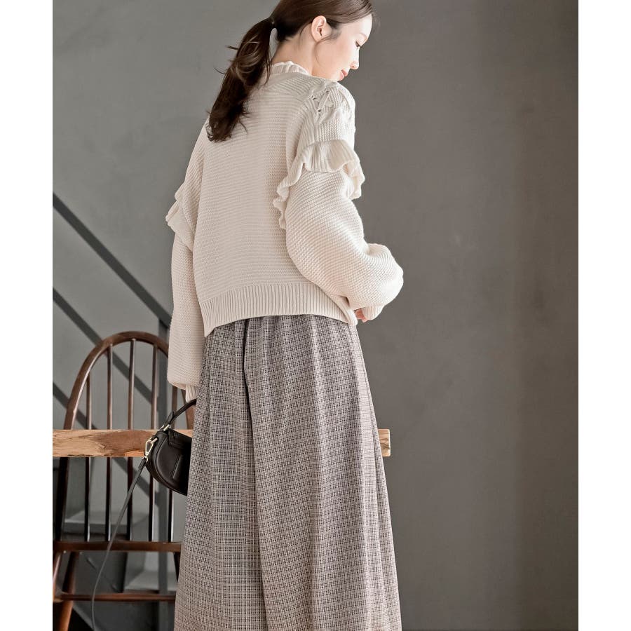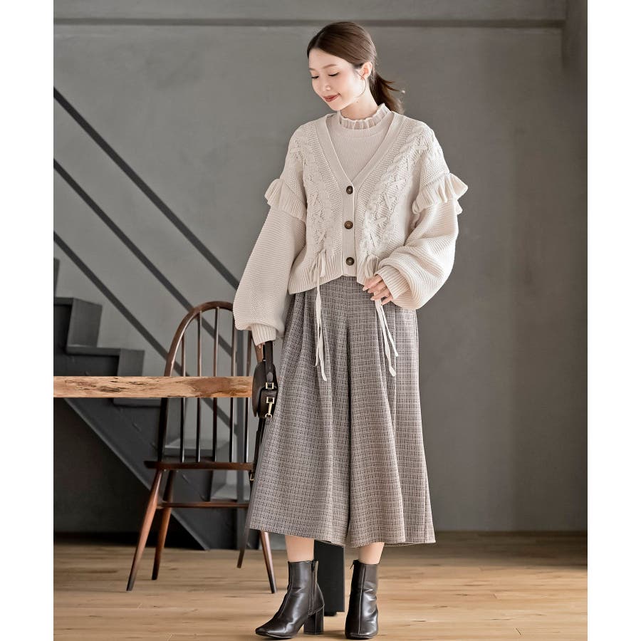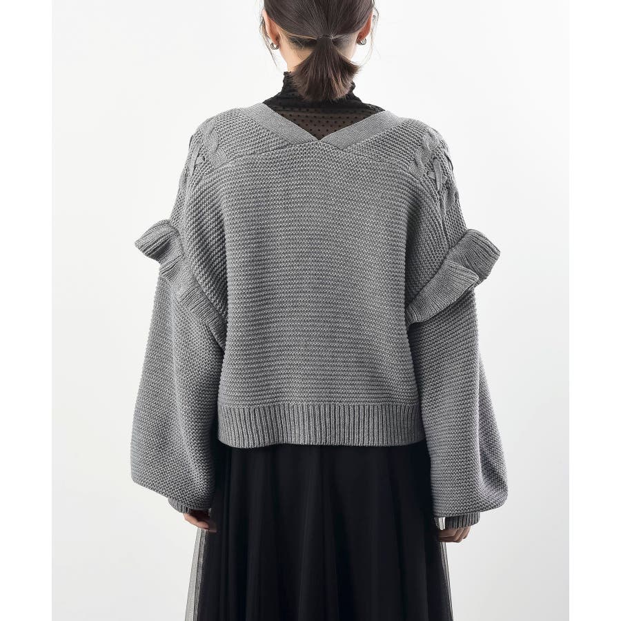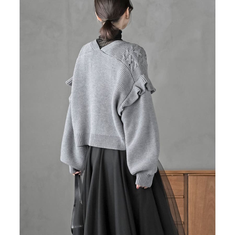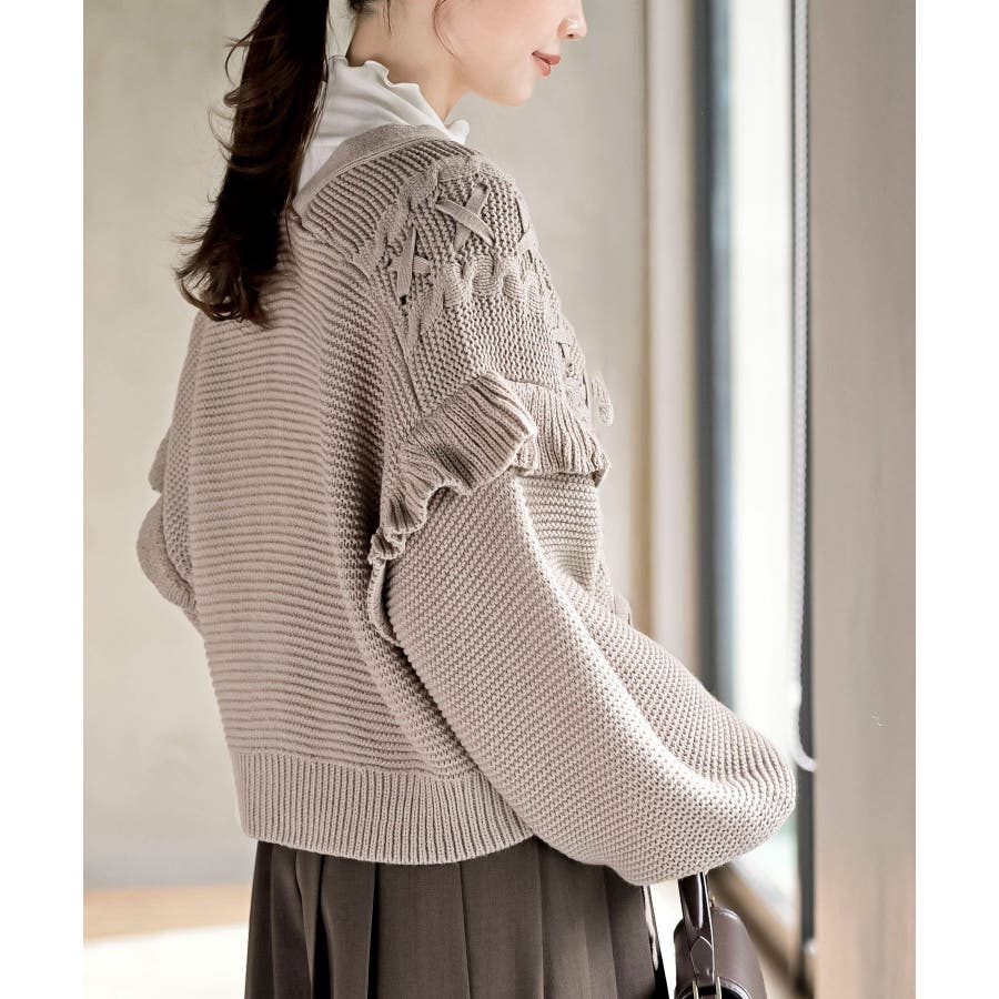 サイドレースアップケーブルフリルニットカーディガン