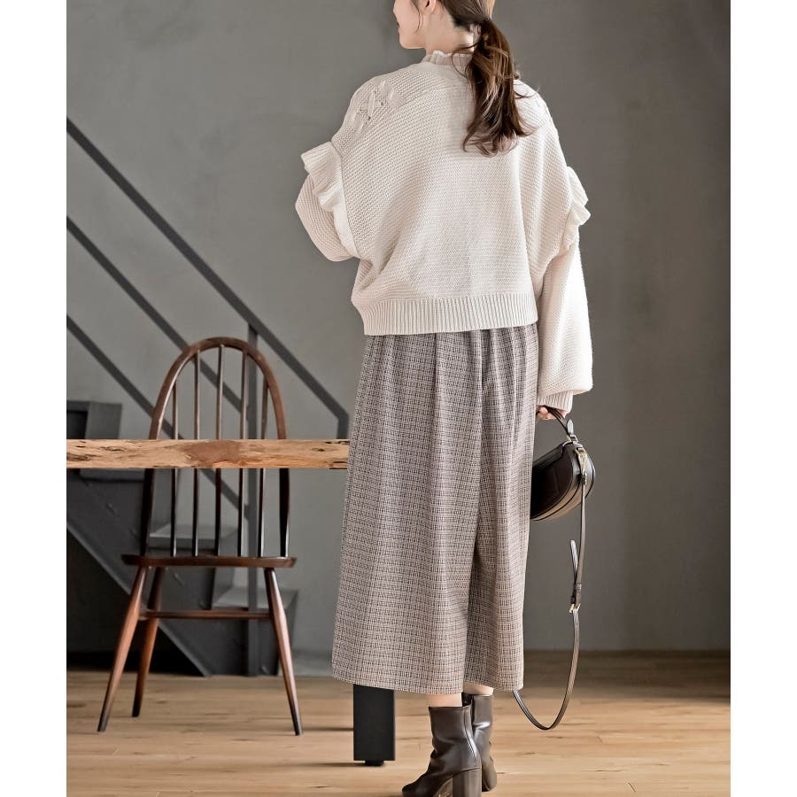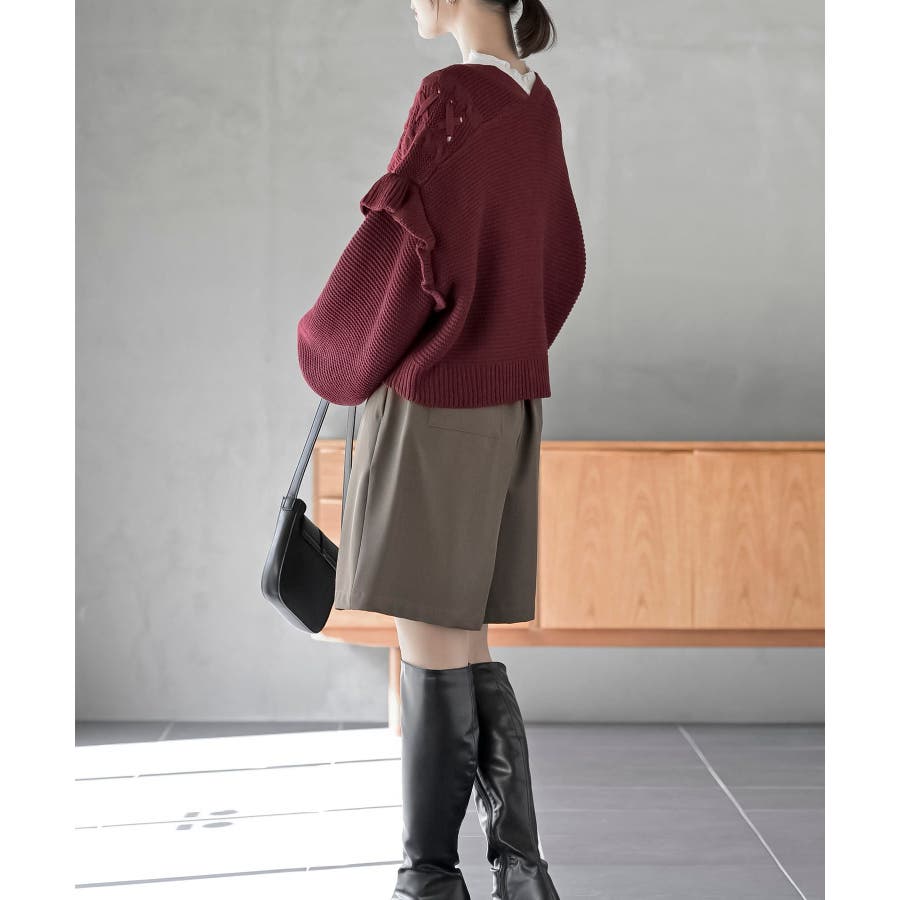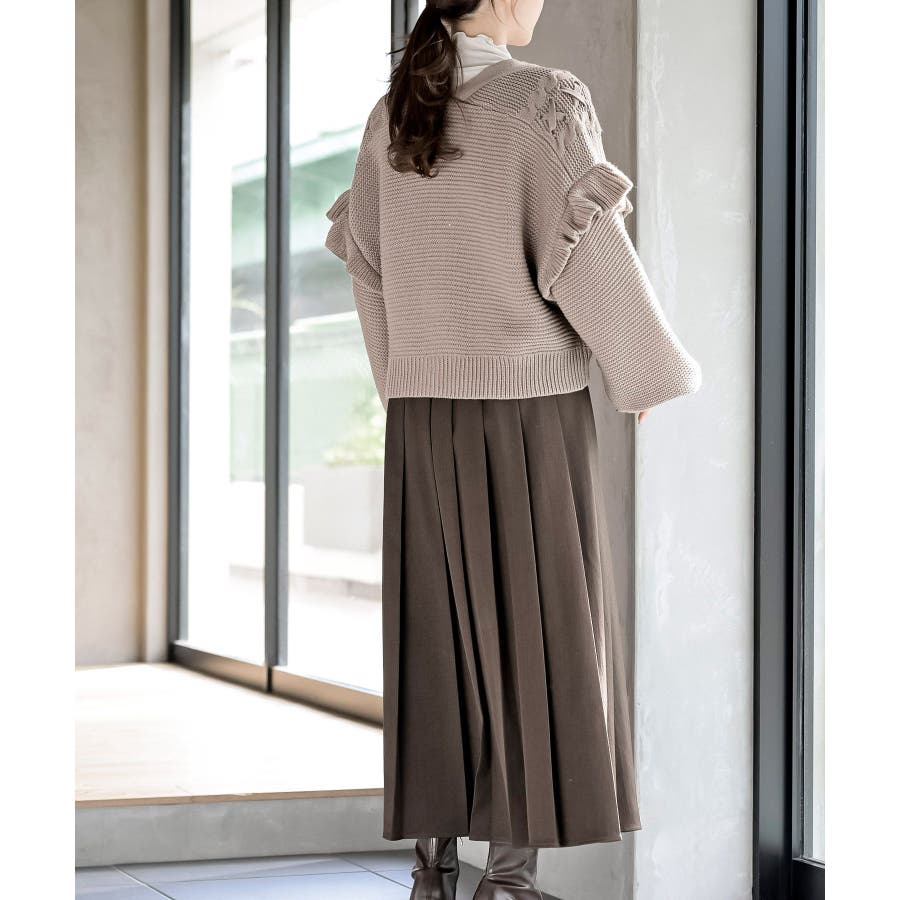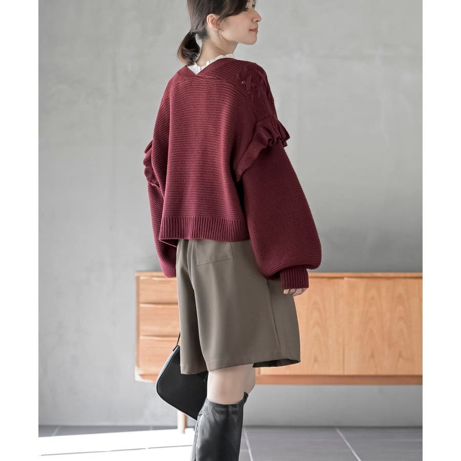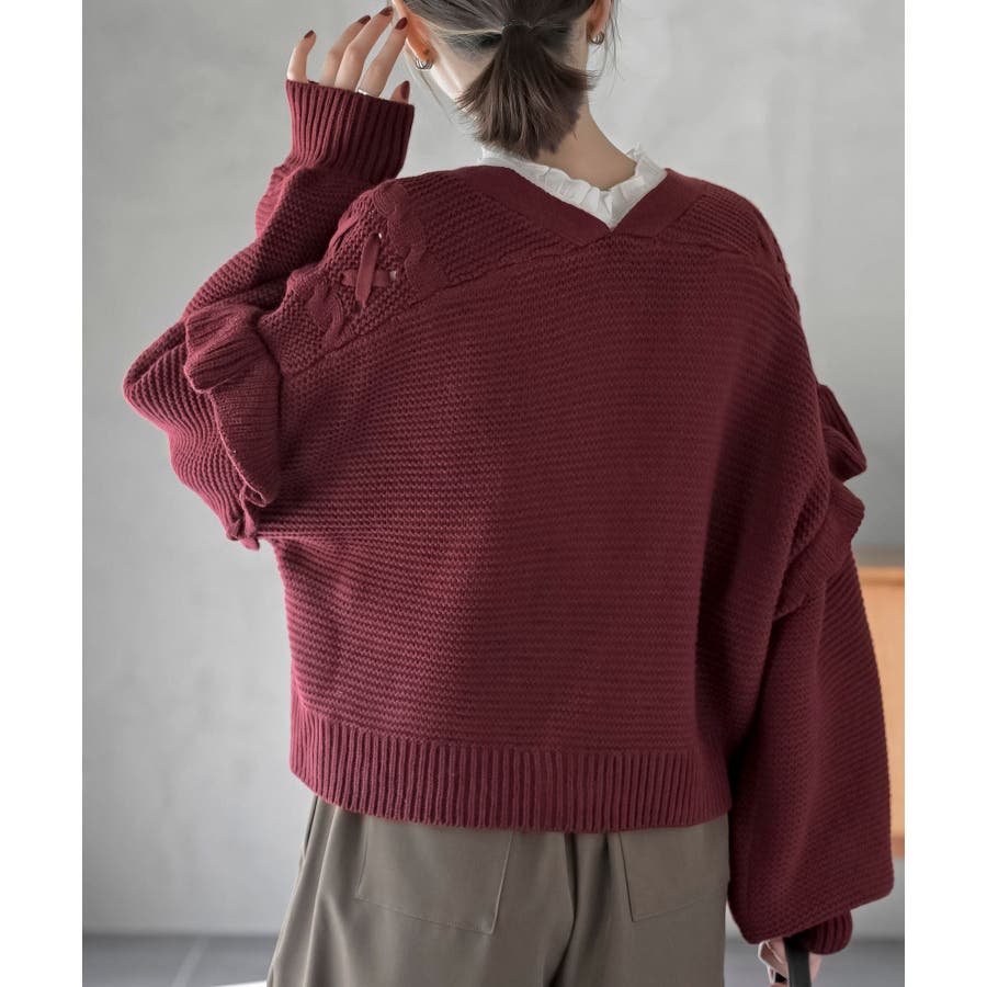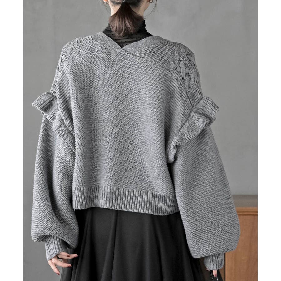 サイドレースアップケーブルフリルニットカーディガン