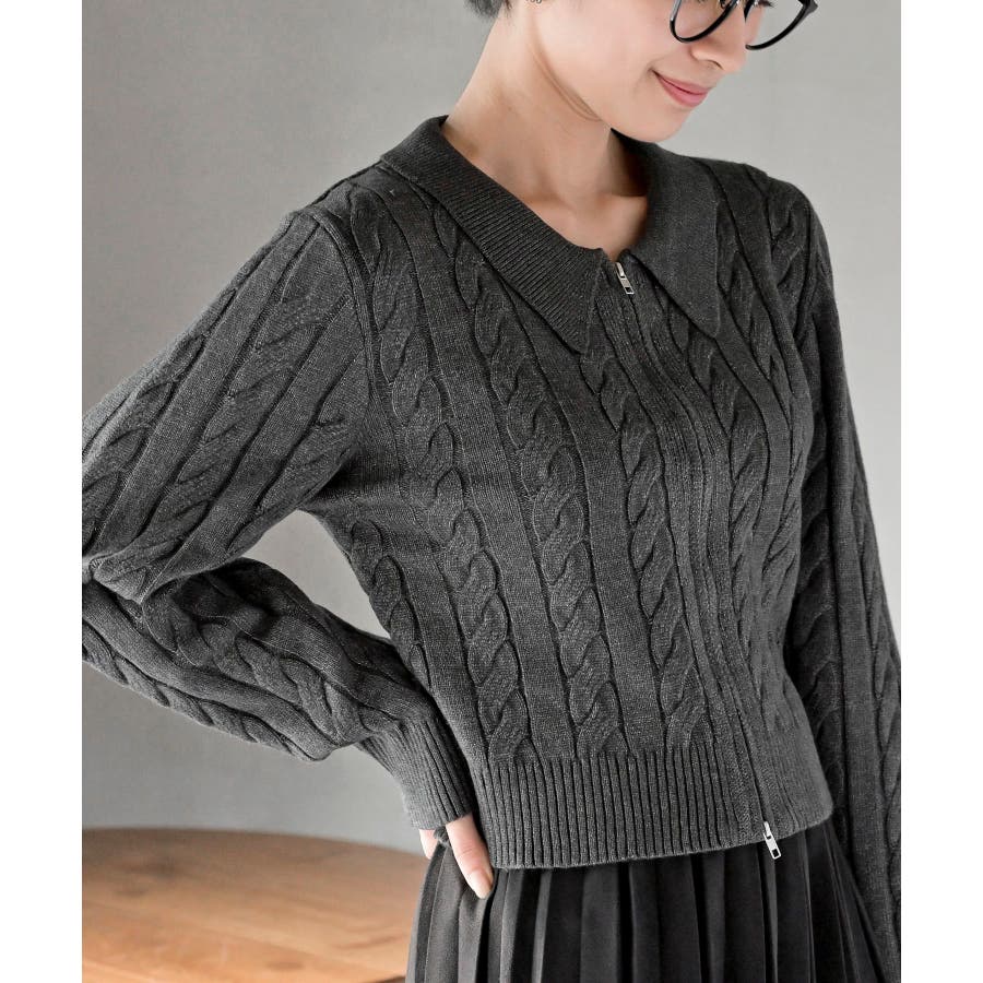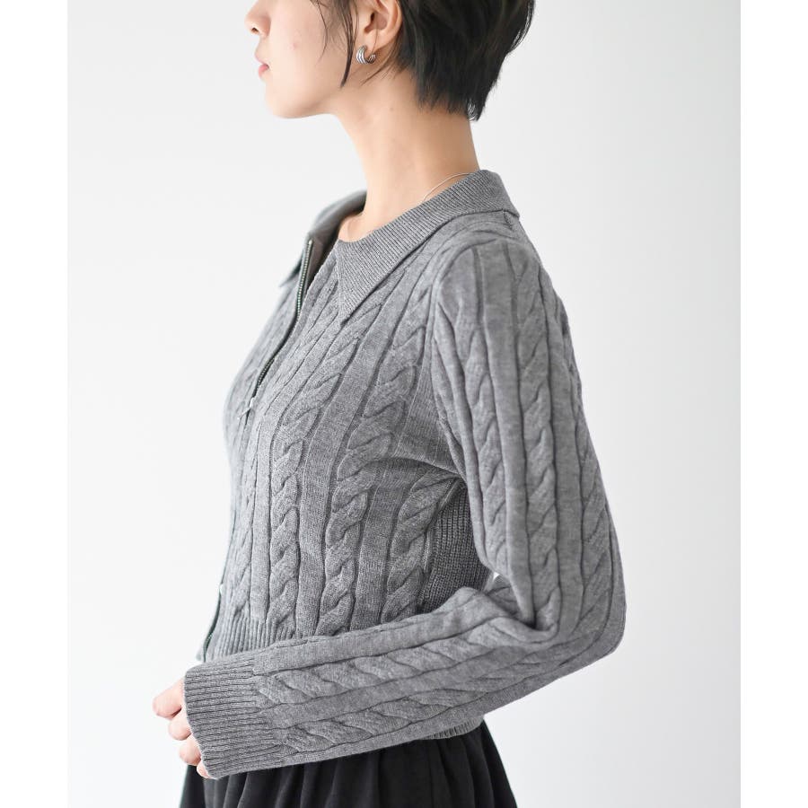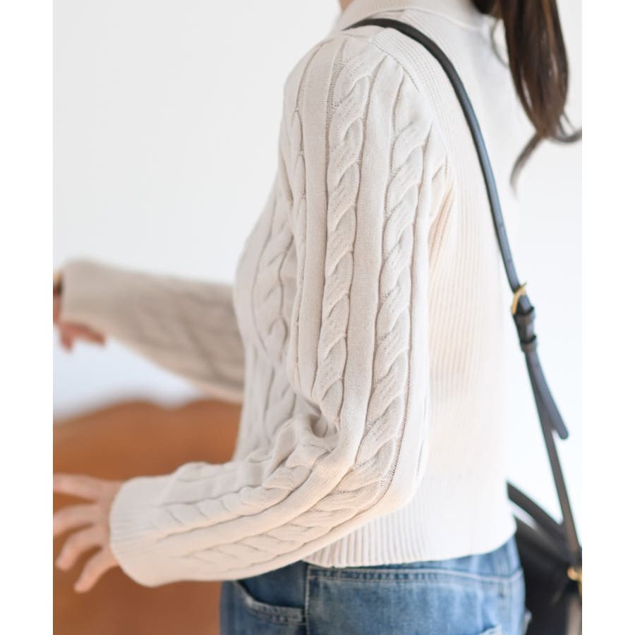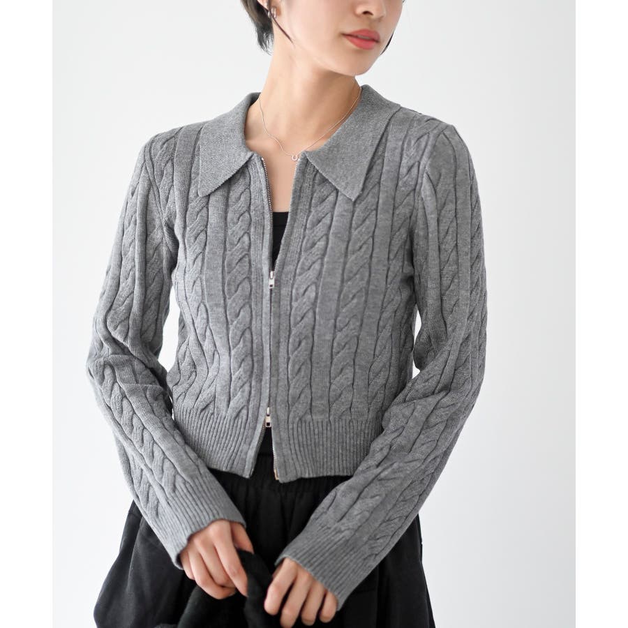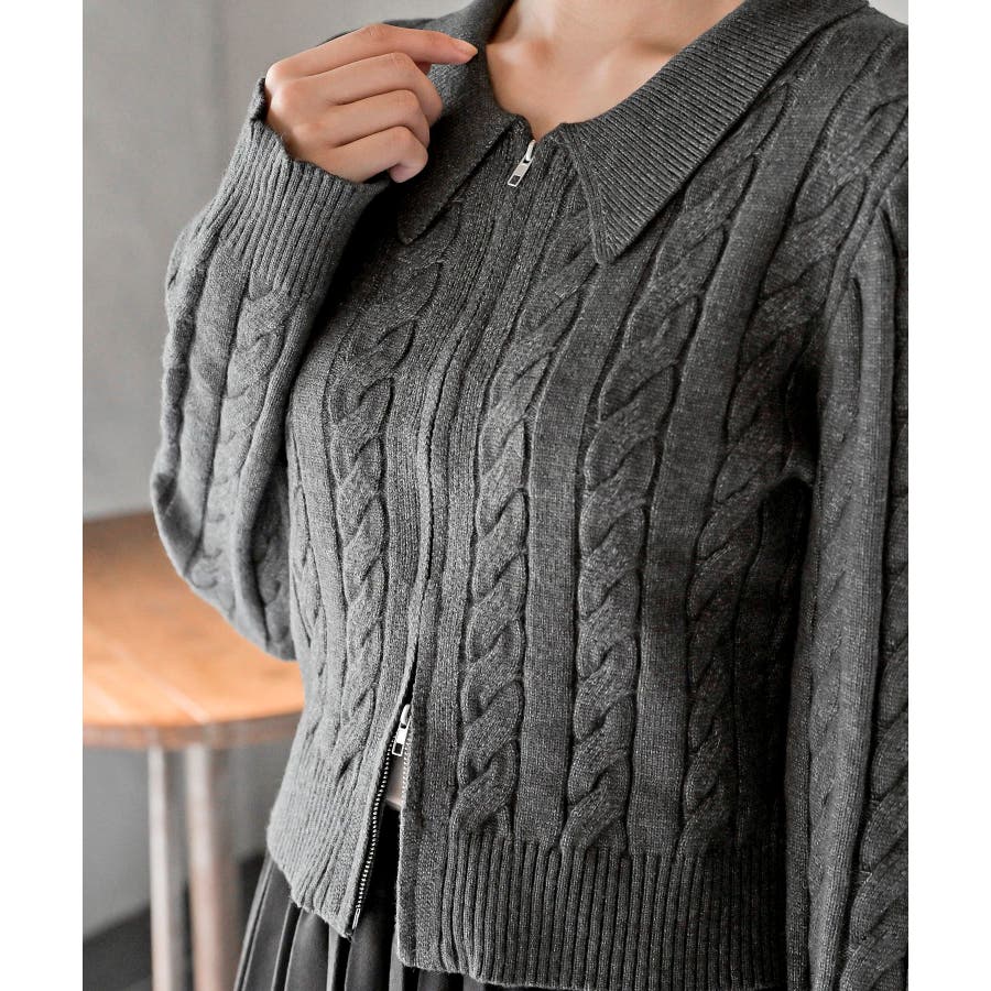 ダブルZIPショート丈ケーブルニットプルオーバー