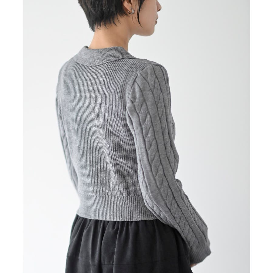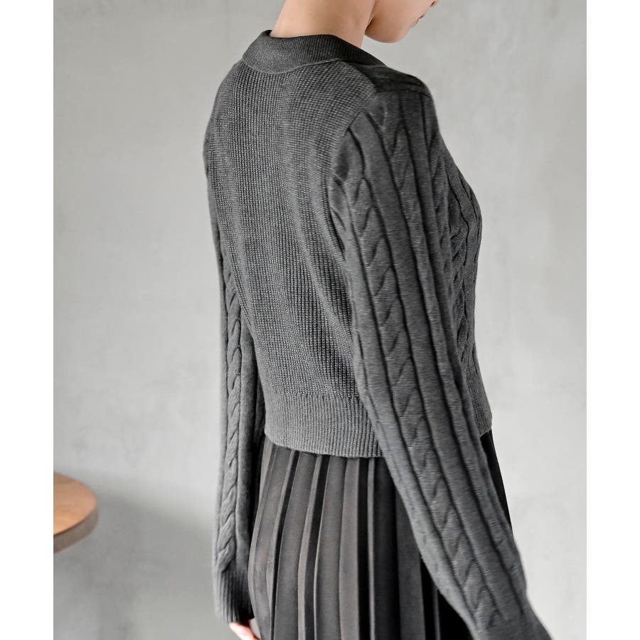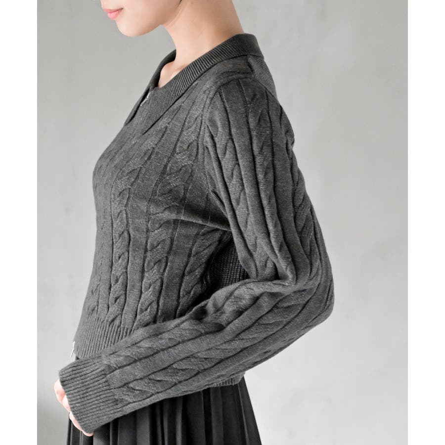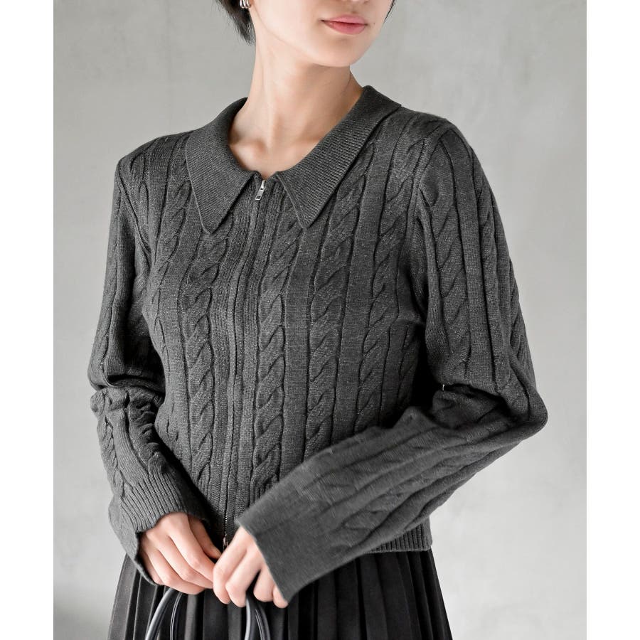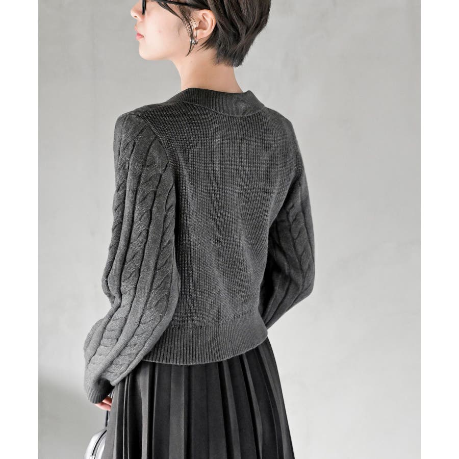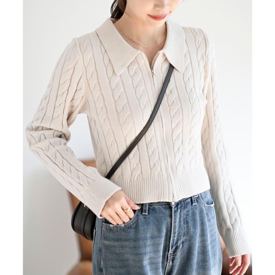 ダブルZIPショート丈ケーブルニットプルオーバー