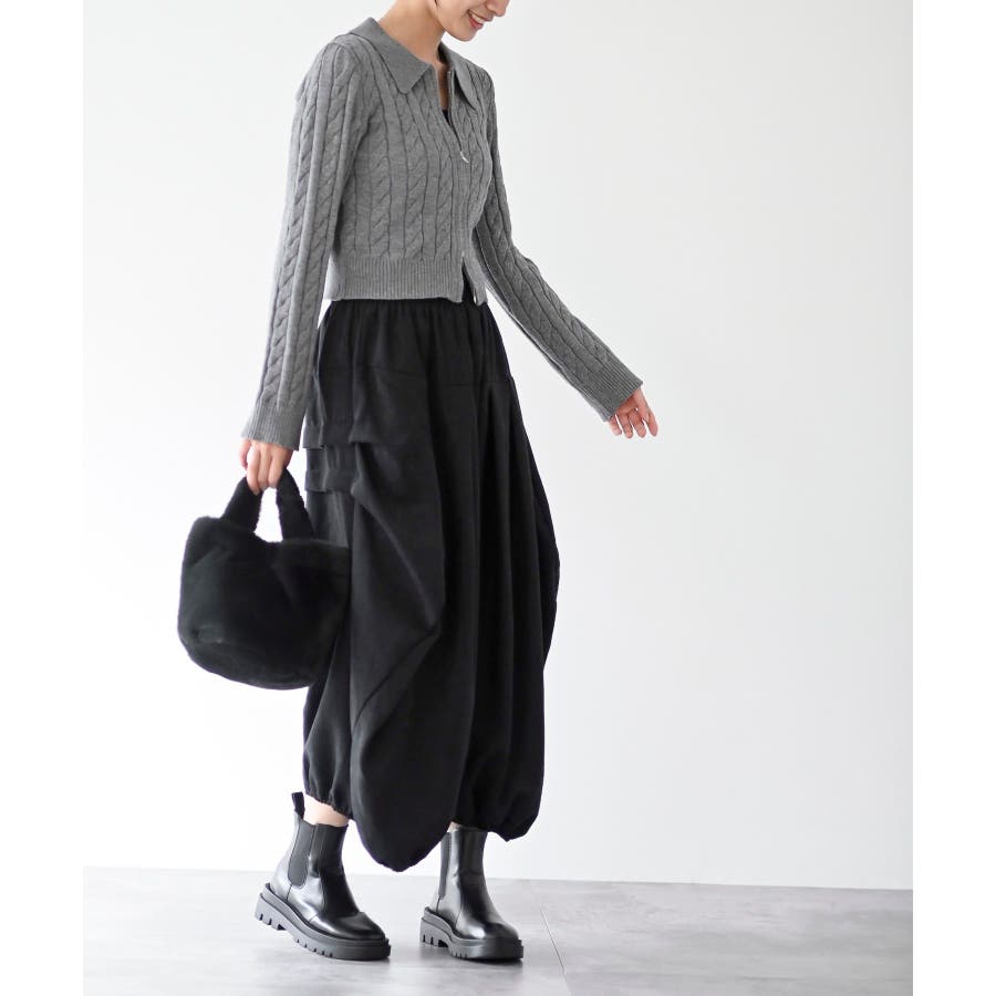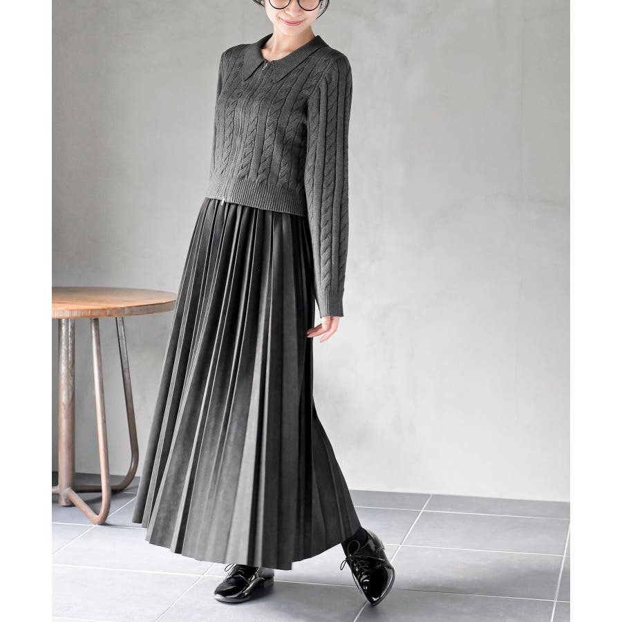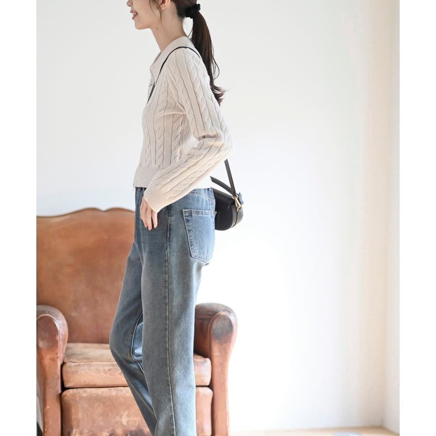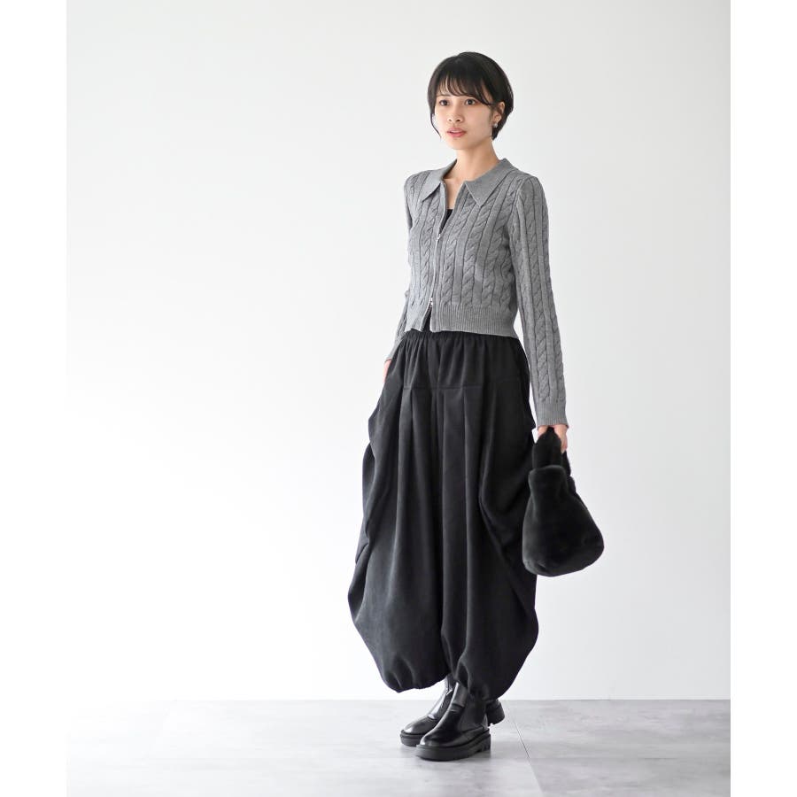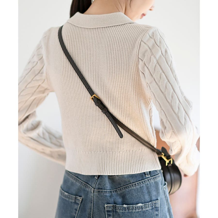 ダブルZIPショート丈ケーブルニットプルオーバー