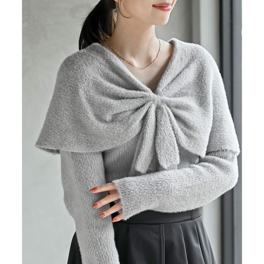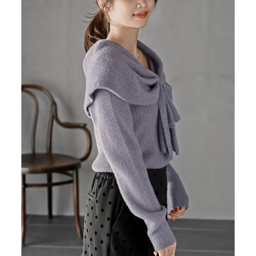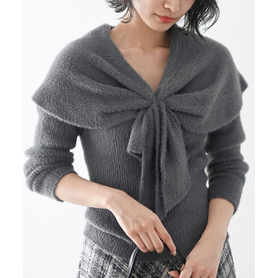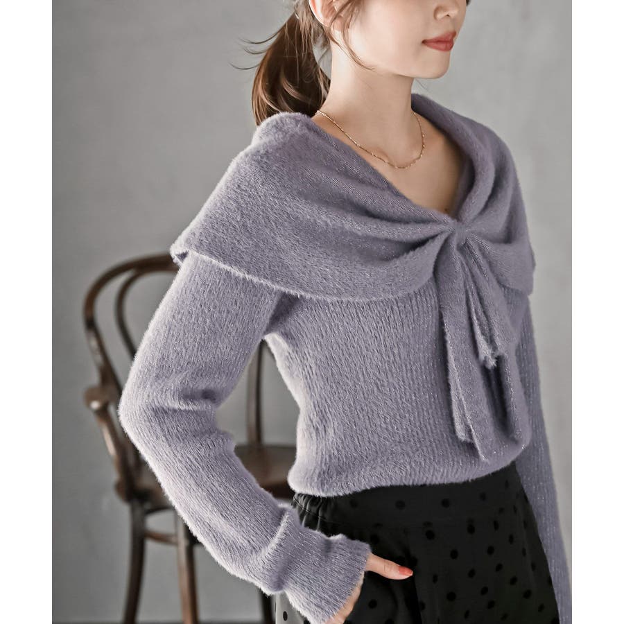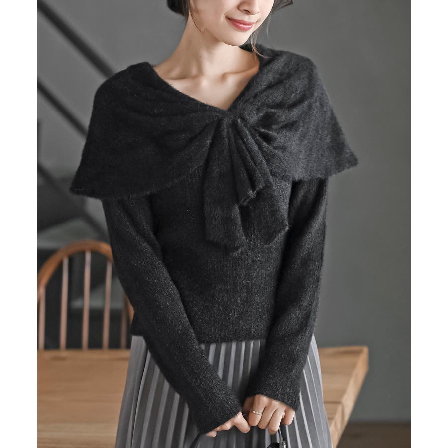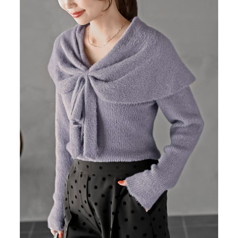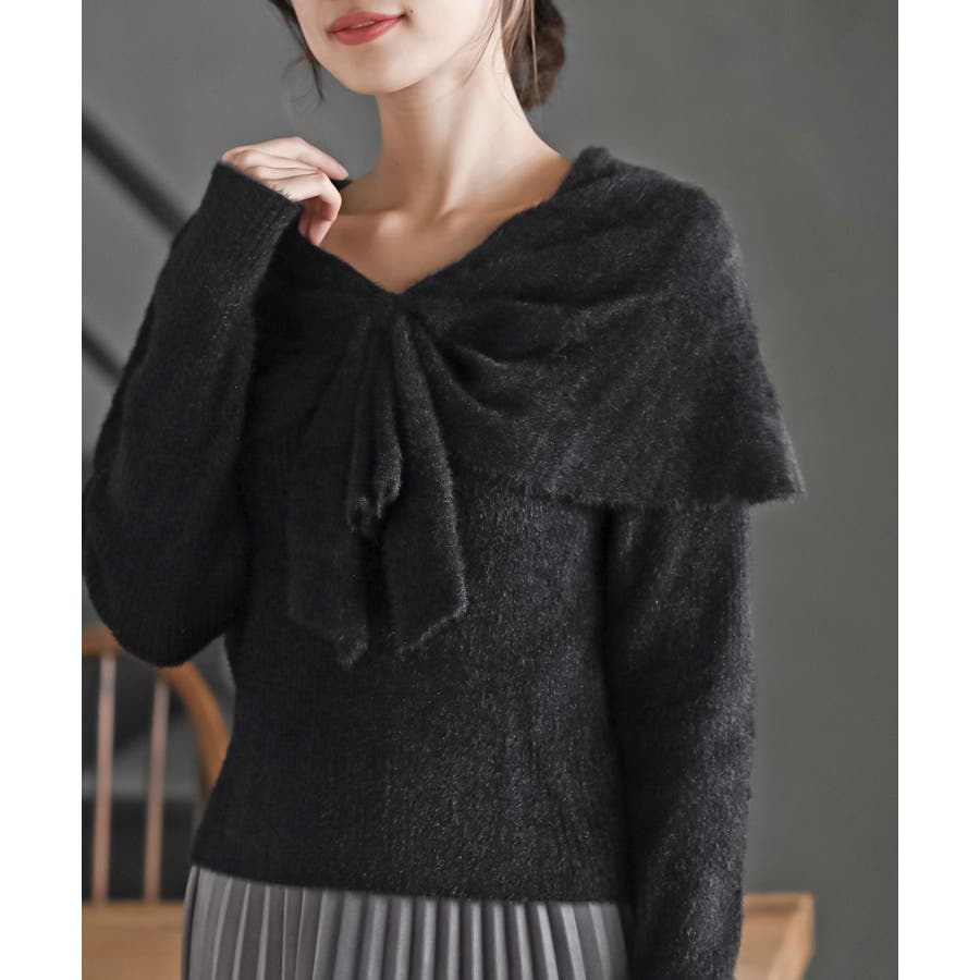 リボンモチーフラメフェザーニットプルオーバー