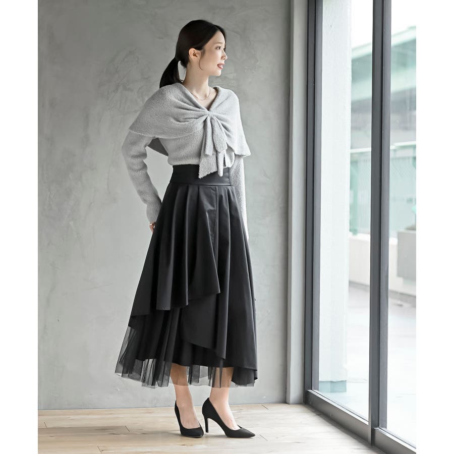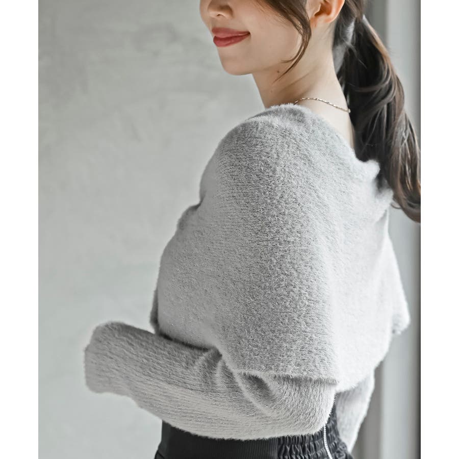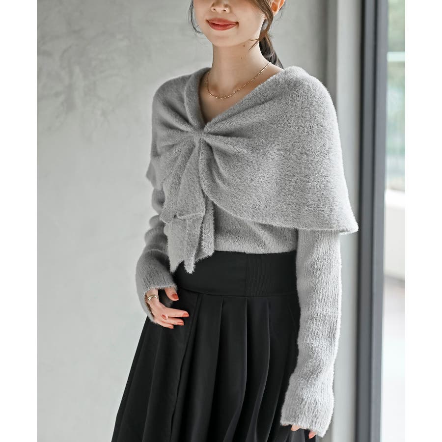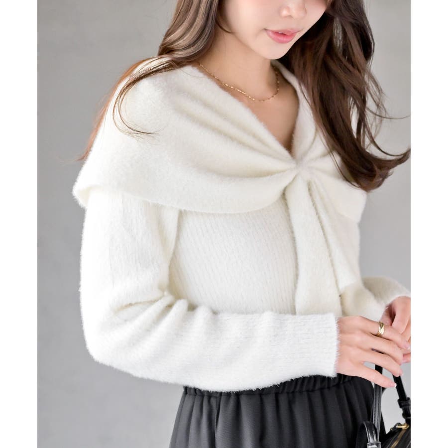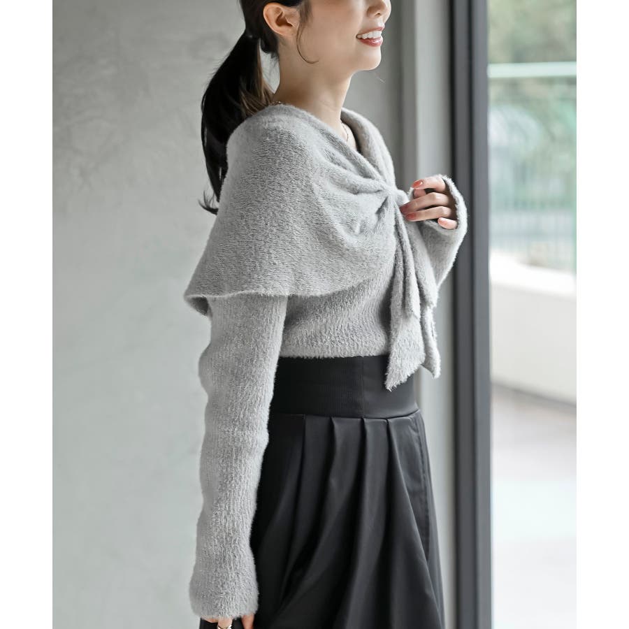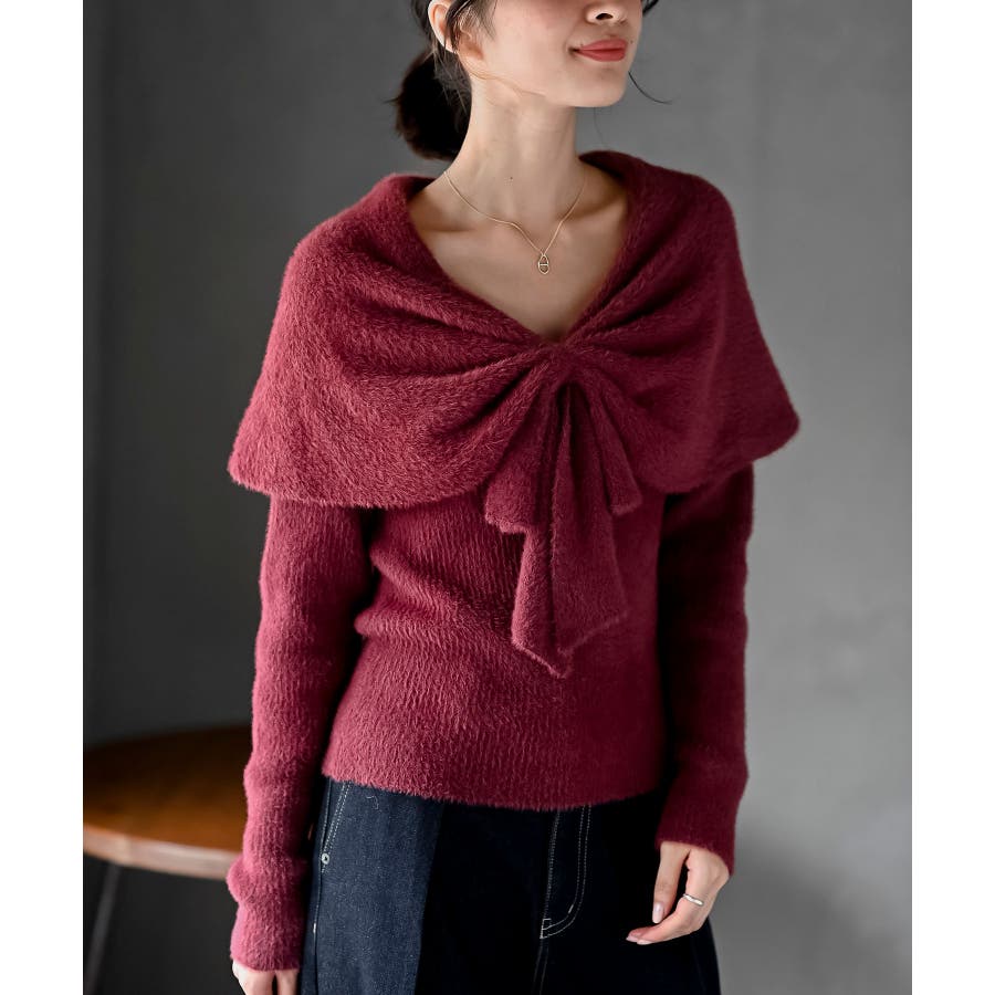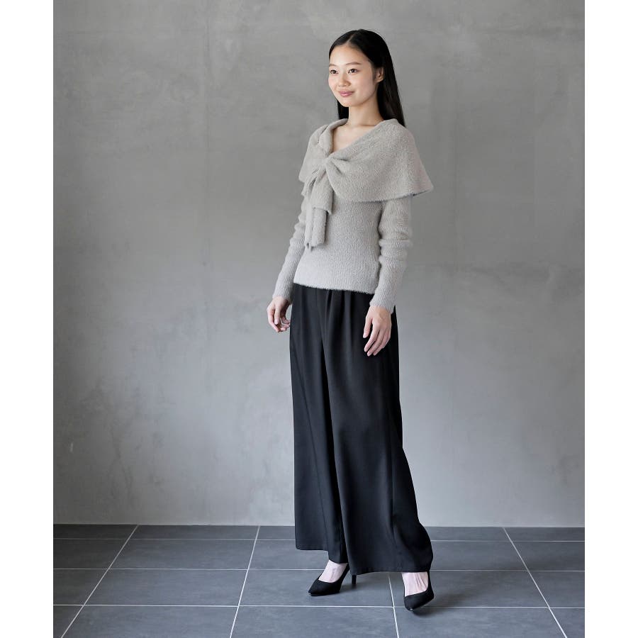 リボンモチーフラメフェザーニットプルオーバー