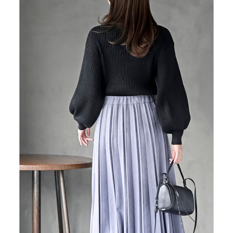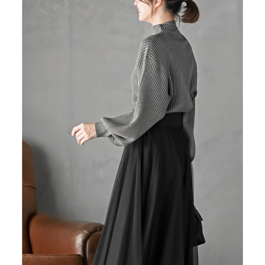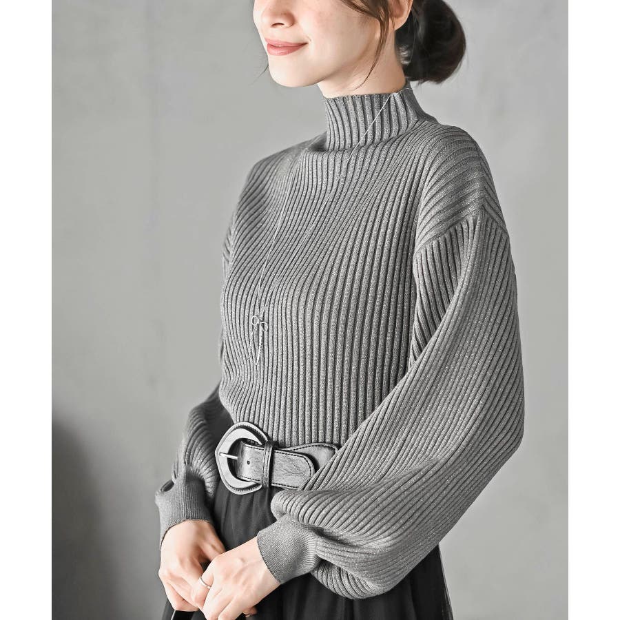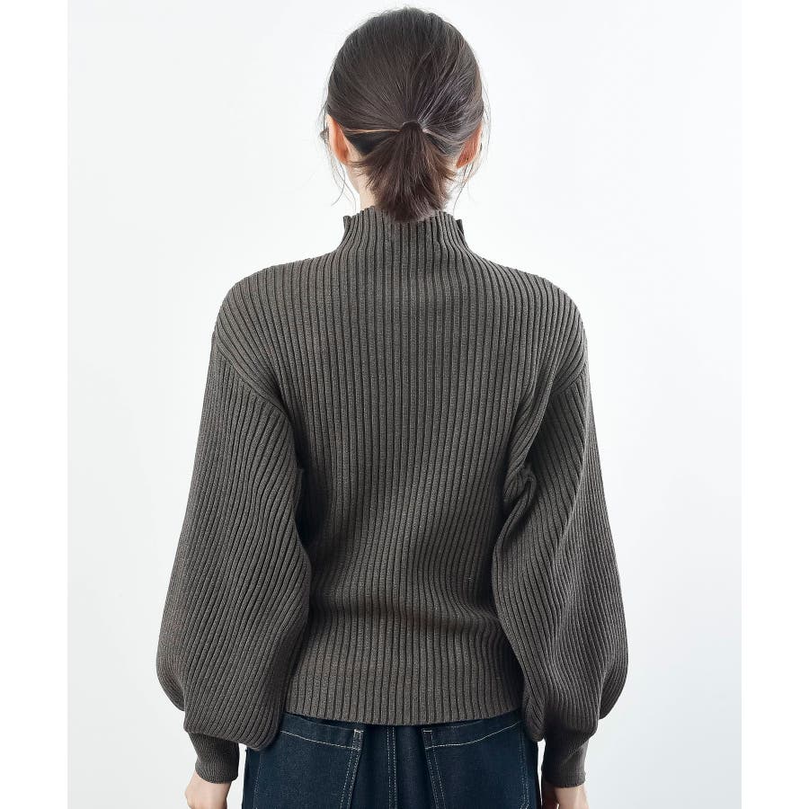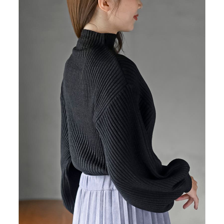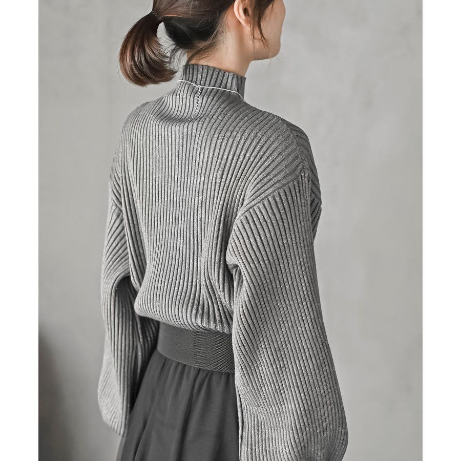 ボリューム袖ボトルネックラメリブニットプルオーバー