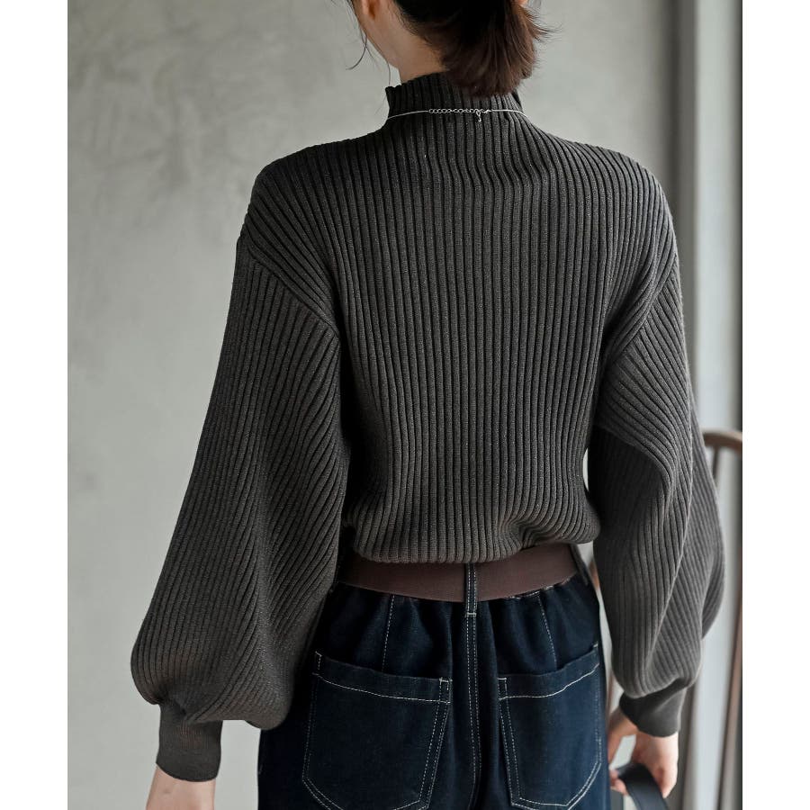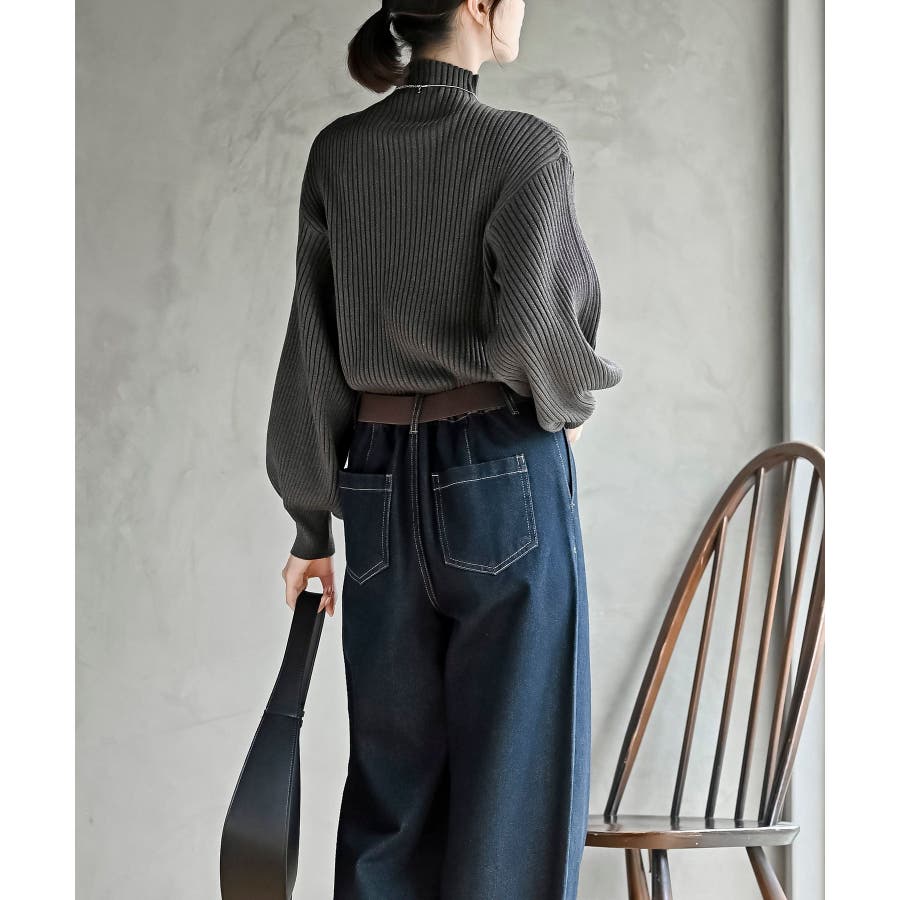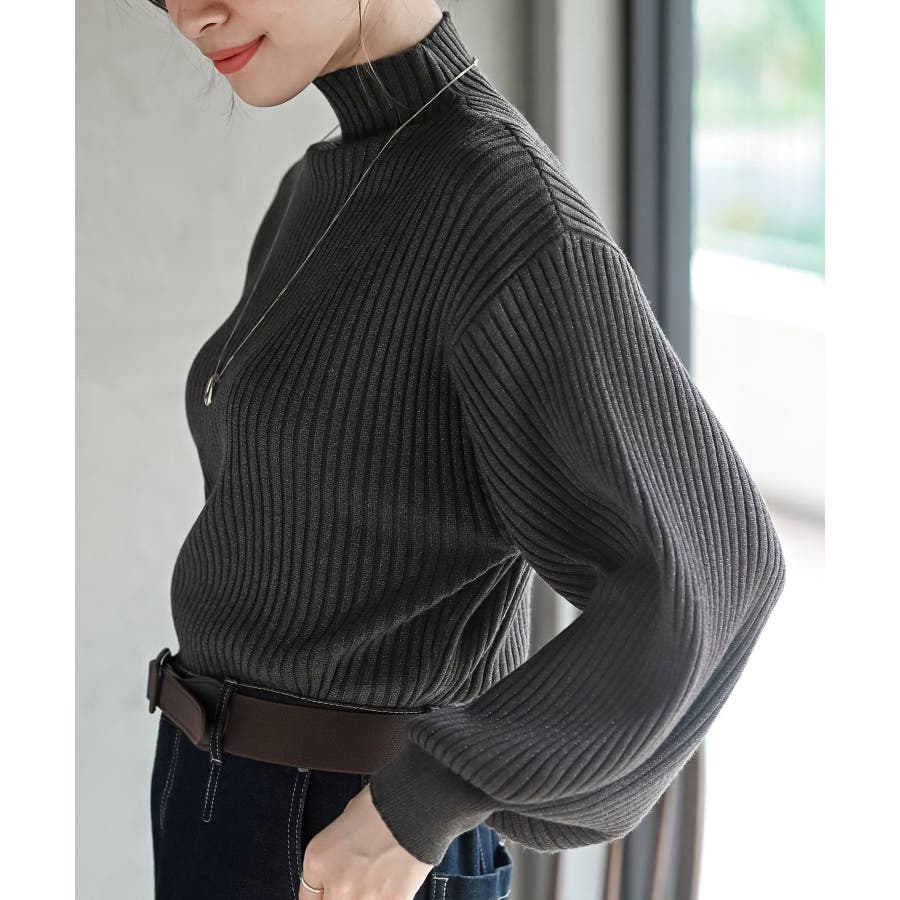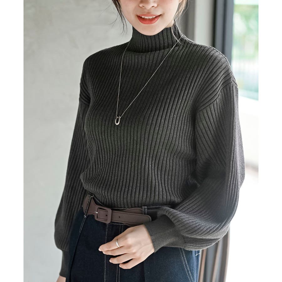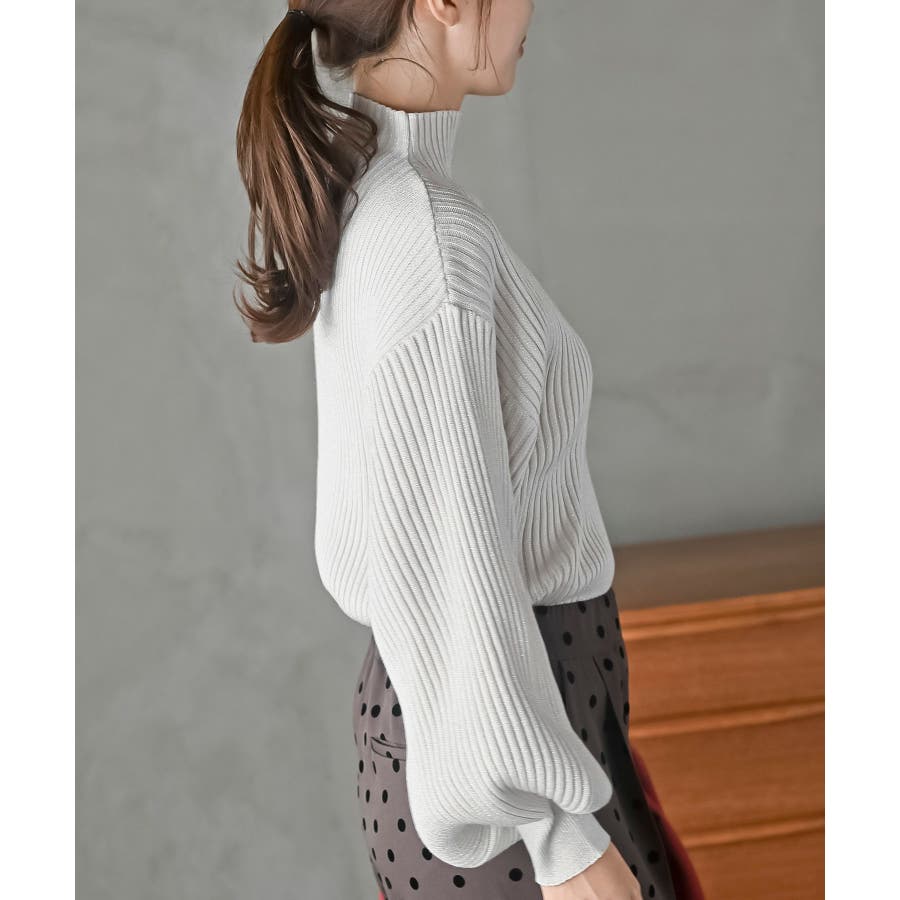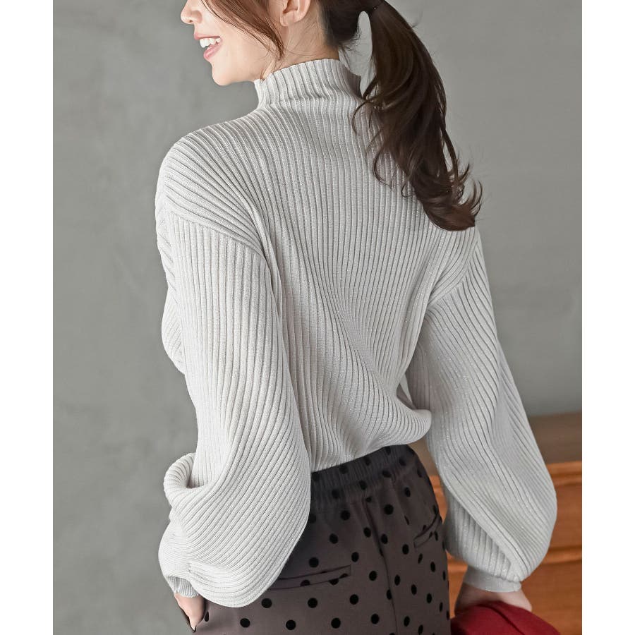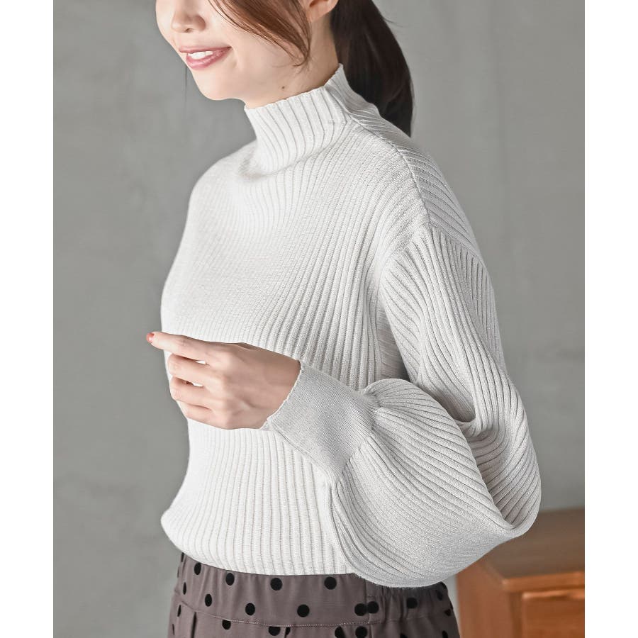 ボリューム袖ボトルネックラメリブニットプルオーバー