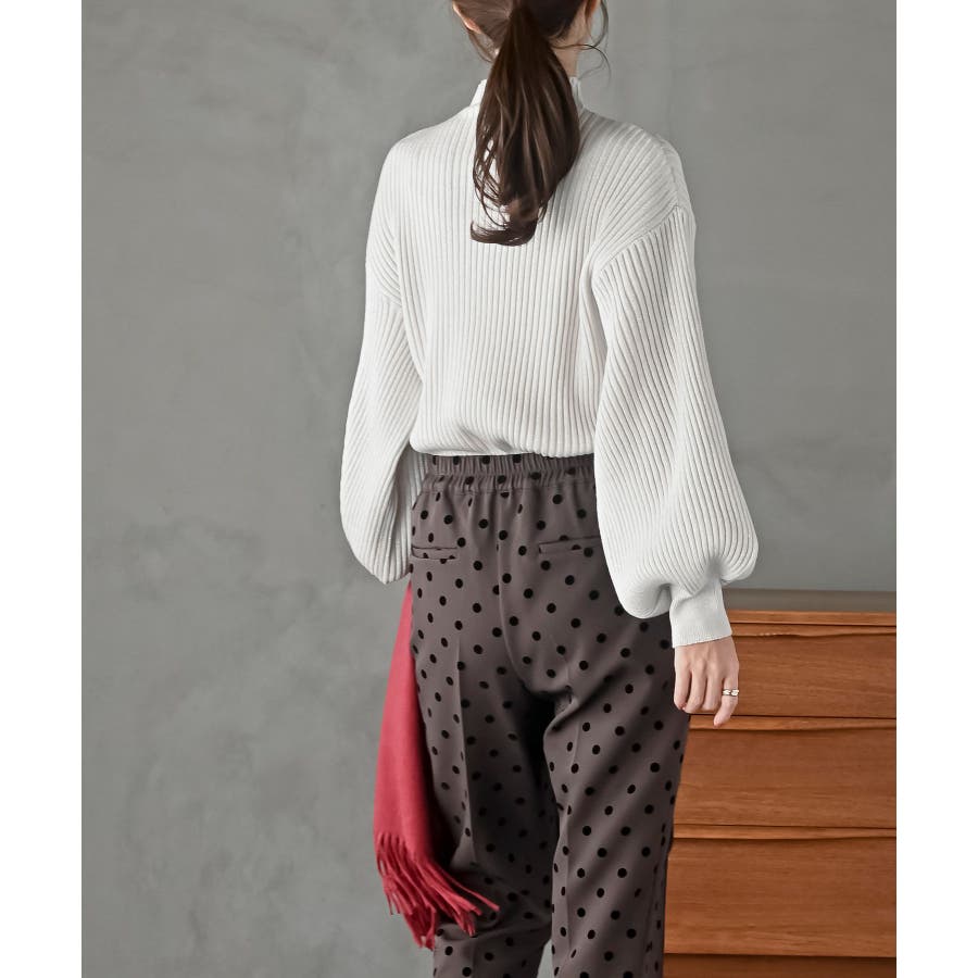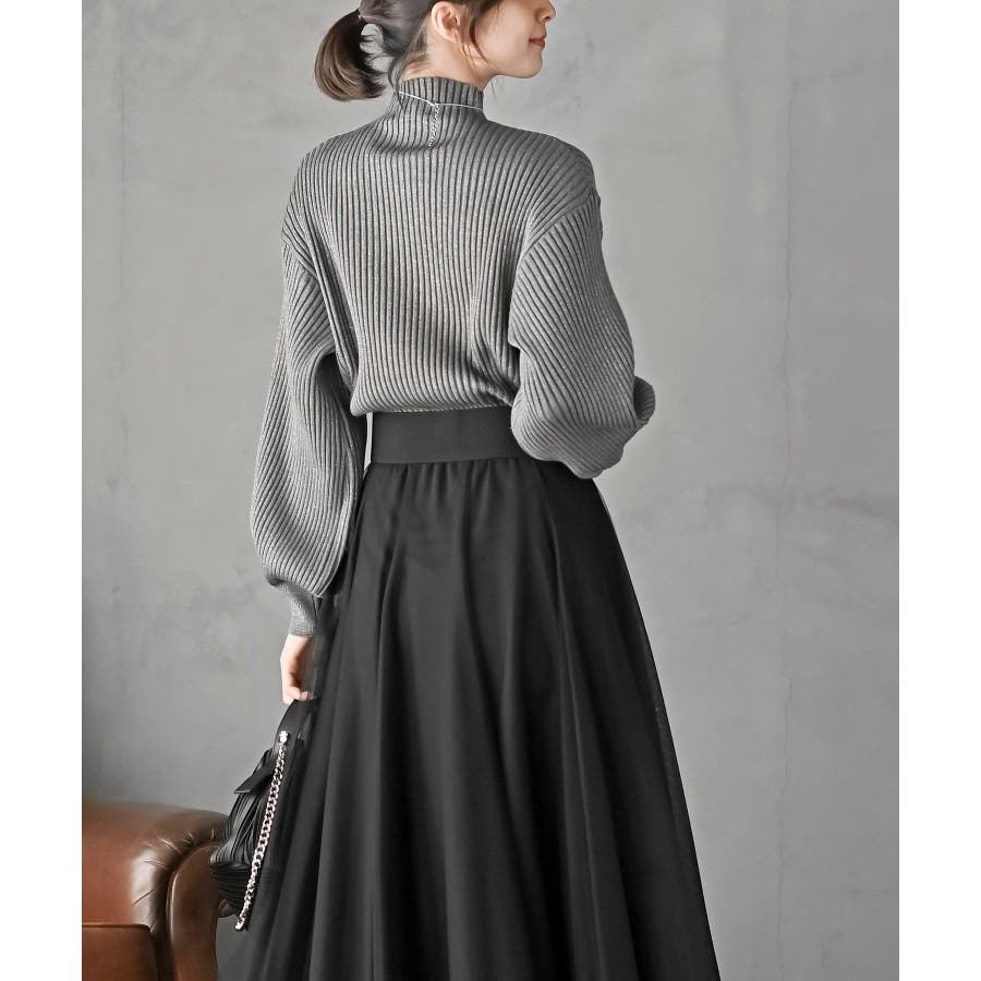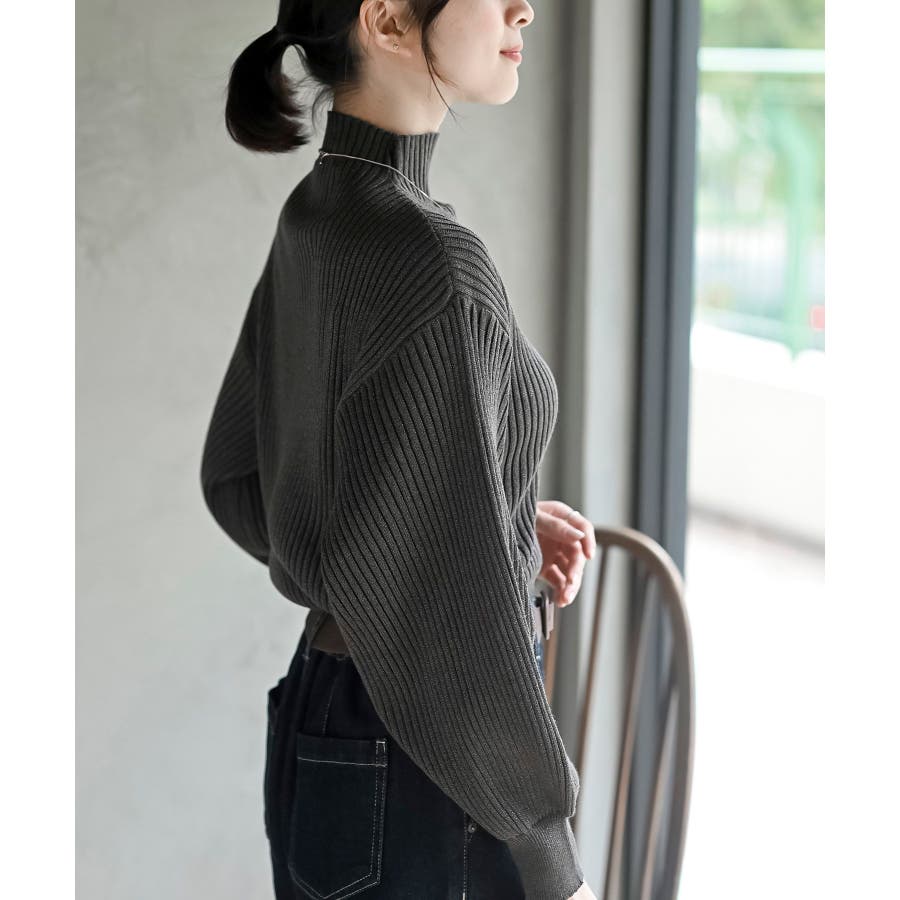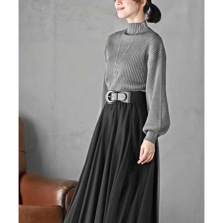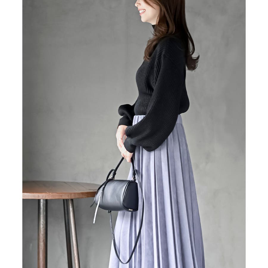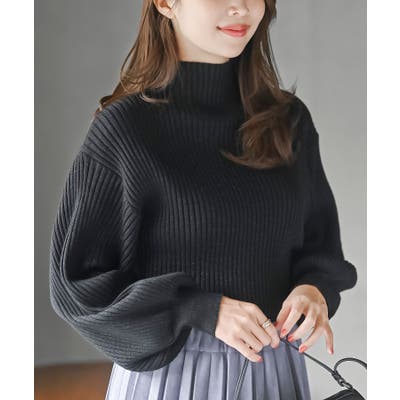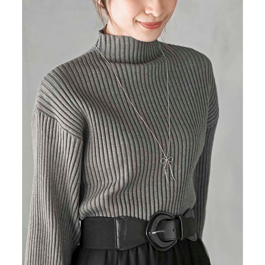 ボリューム袖ボトルネックラメリブニットプルオーバー