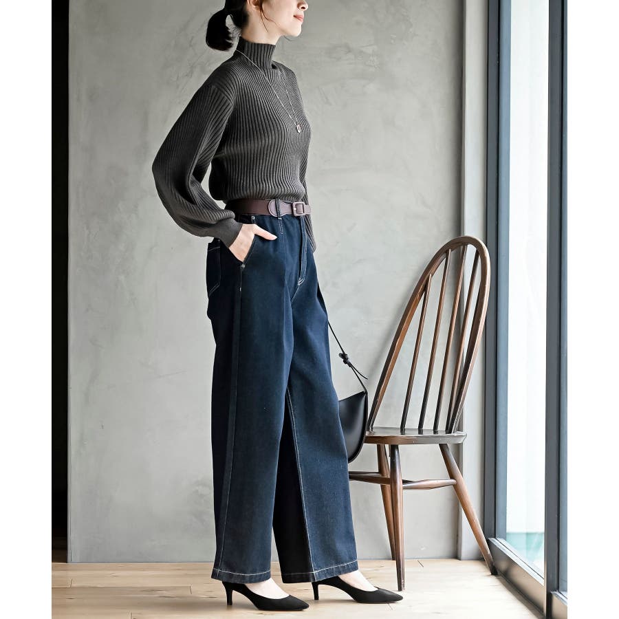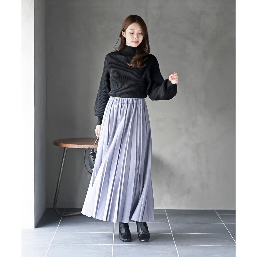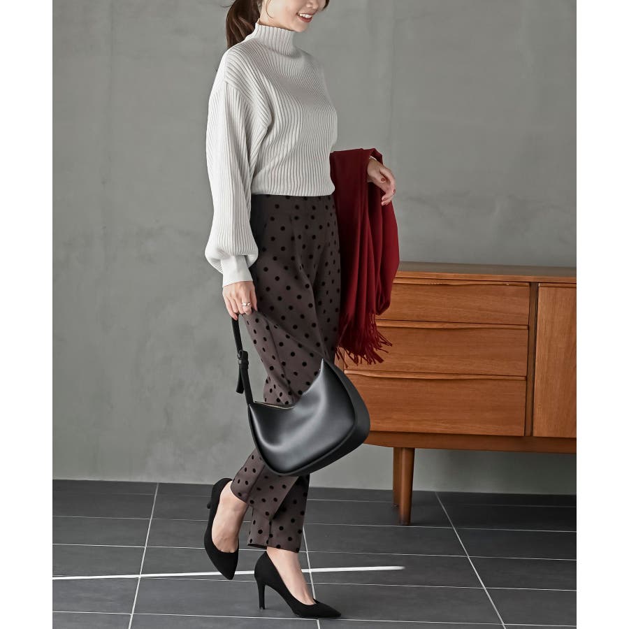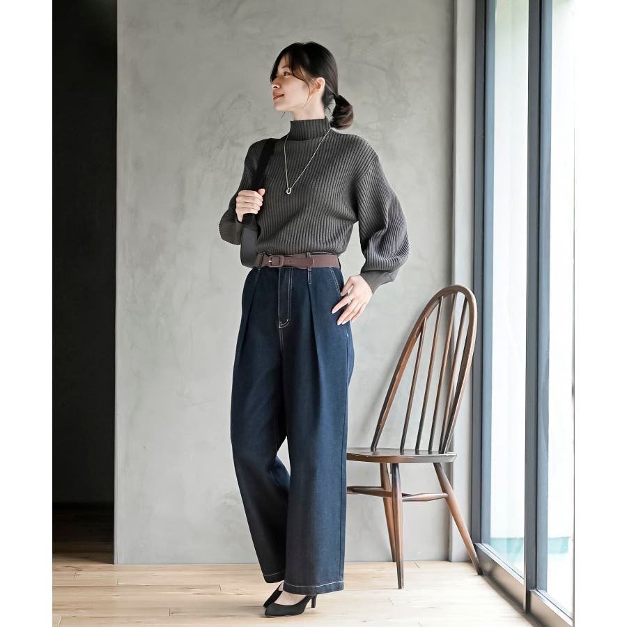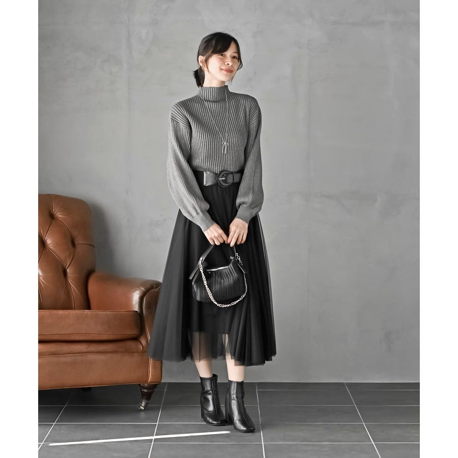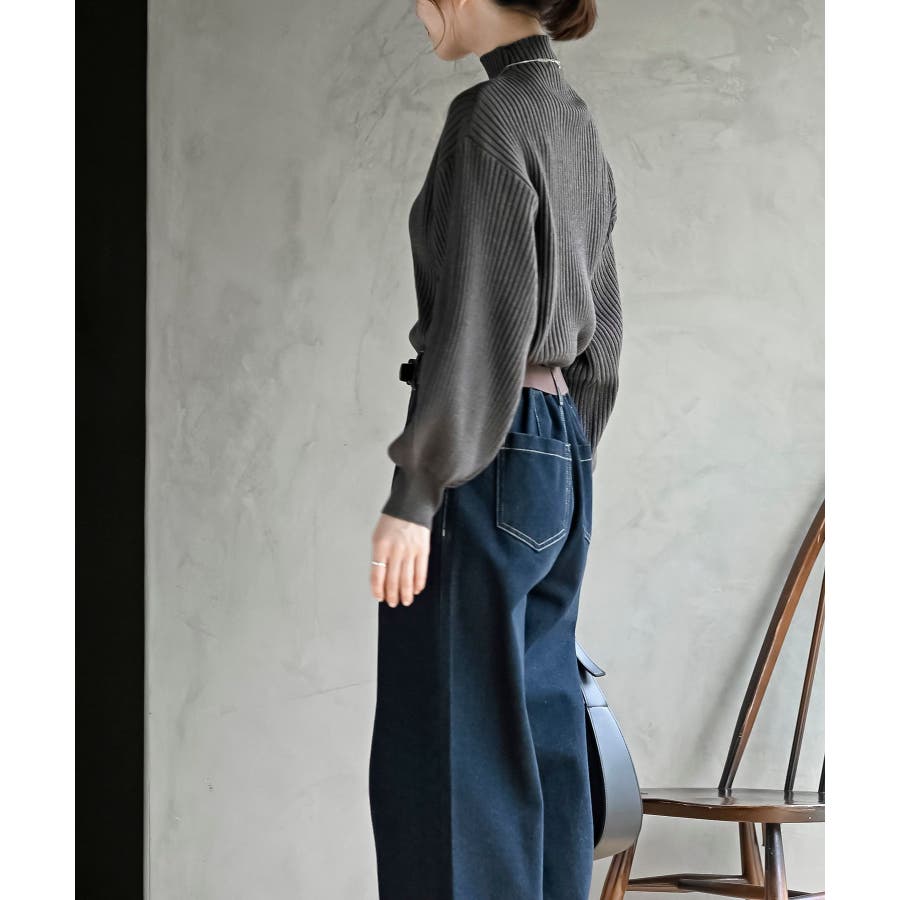ボリューム袖ボトルネックラメリブニットプルオーバー