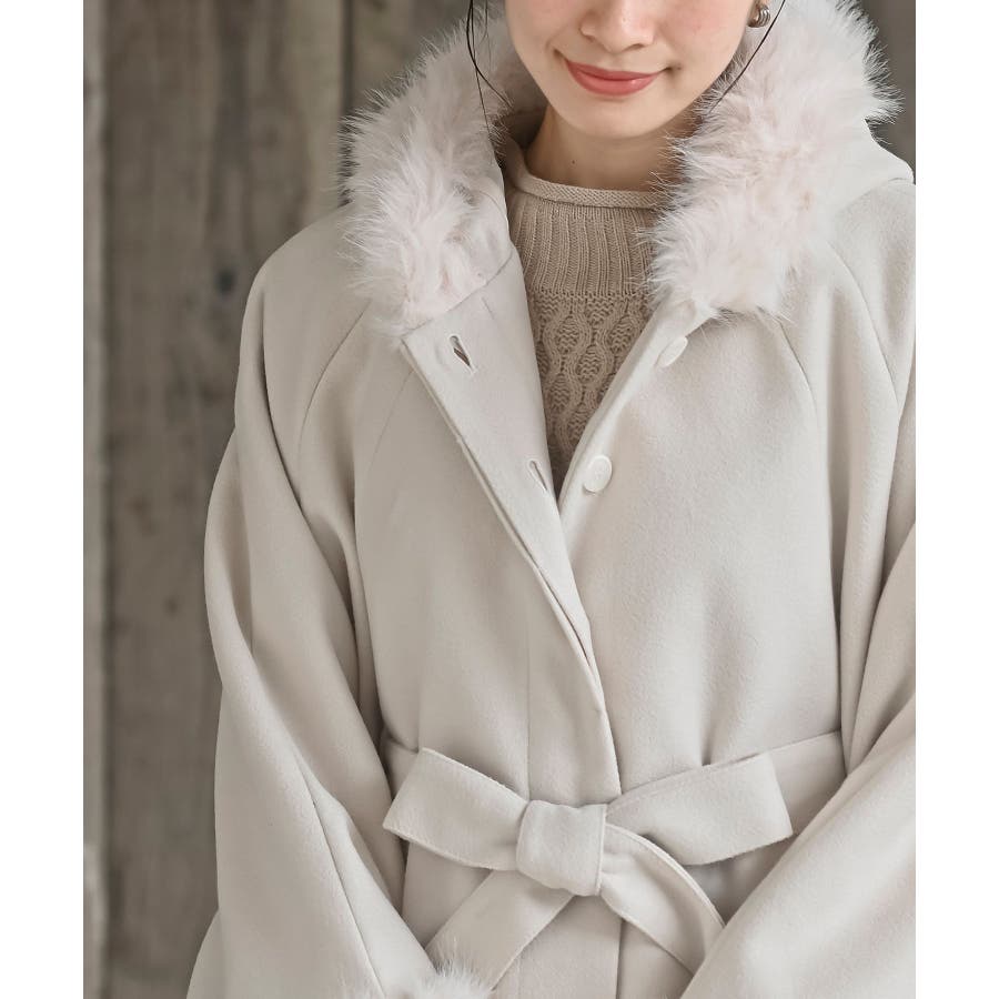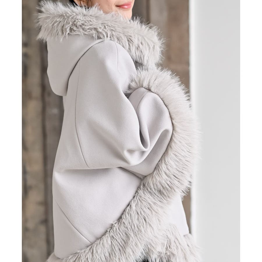フード付きフェイクファーコート