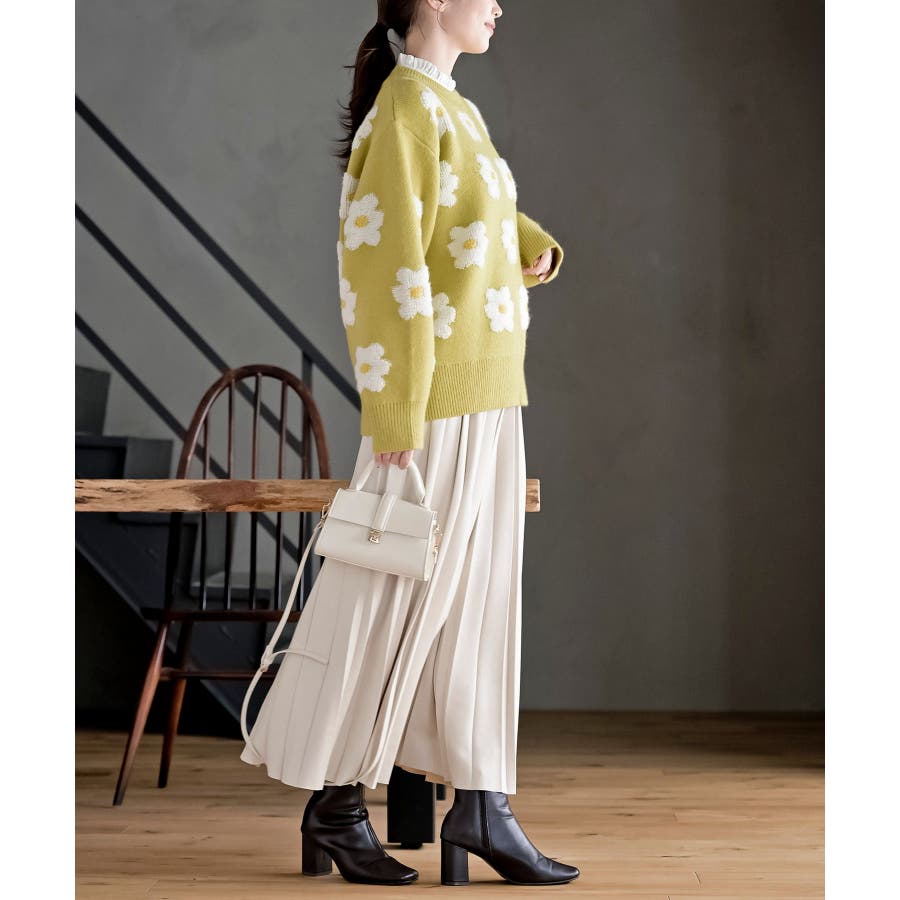 春っぽくて可愛いです。セーターの生地も思ったより厚くて柔らかそうで着心地が良さそうだと感じました。丈感も気に入りました。