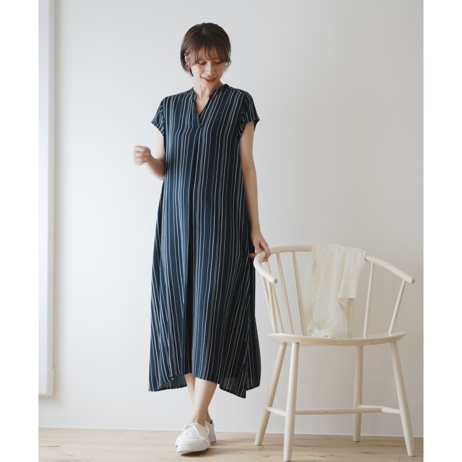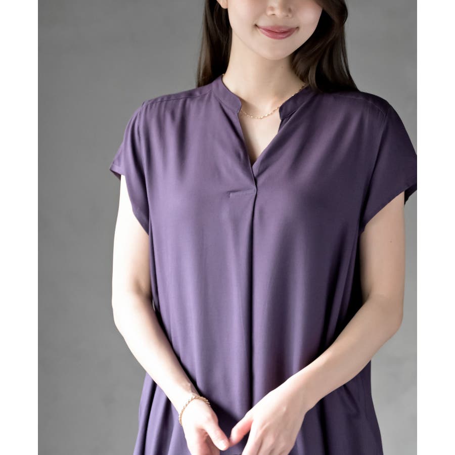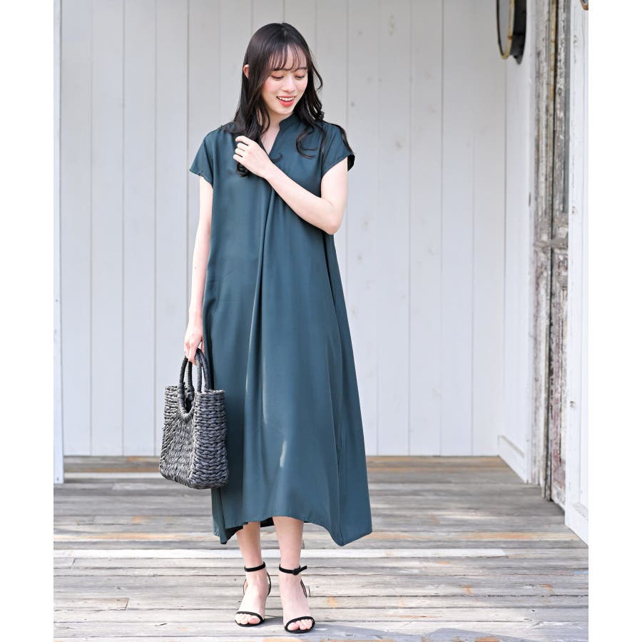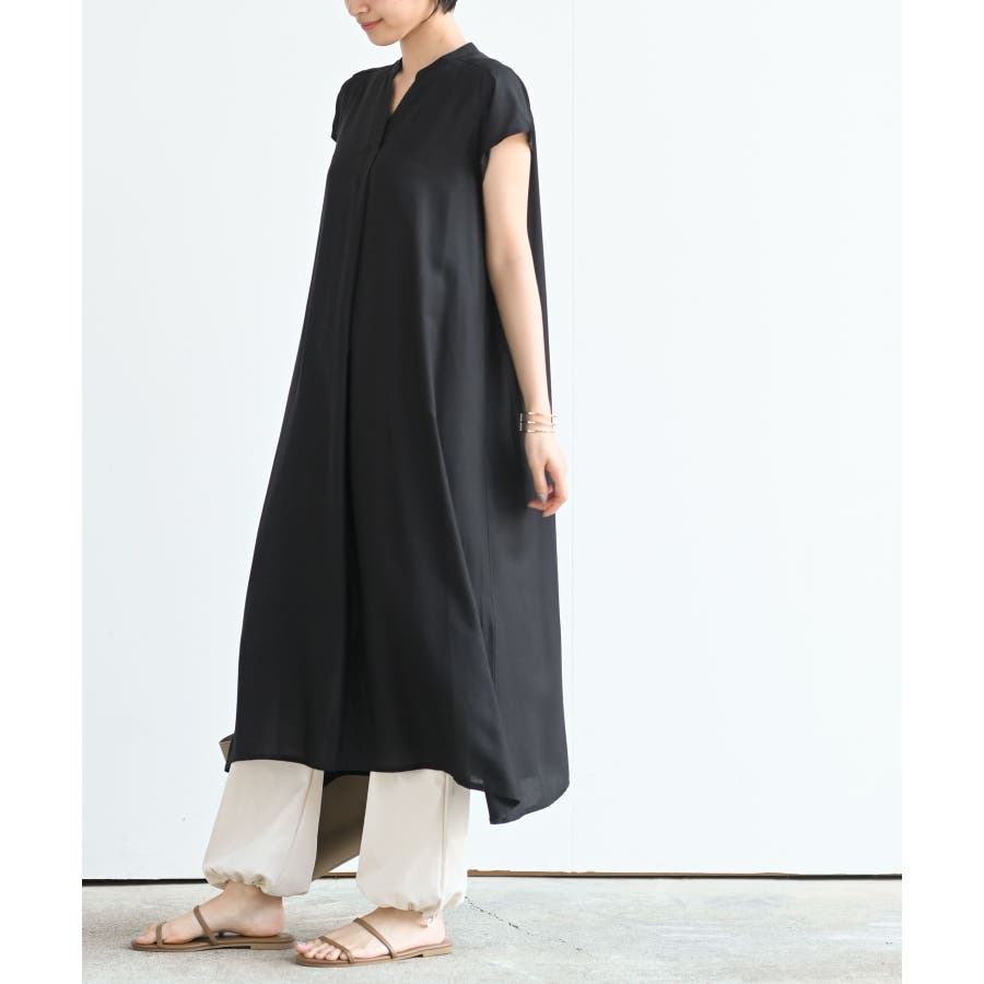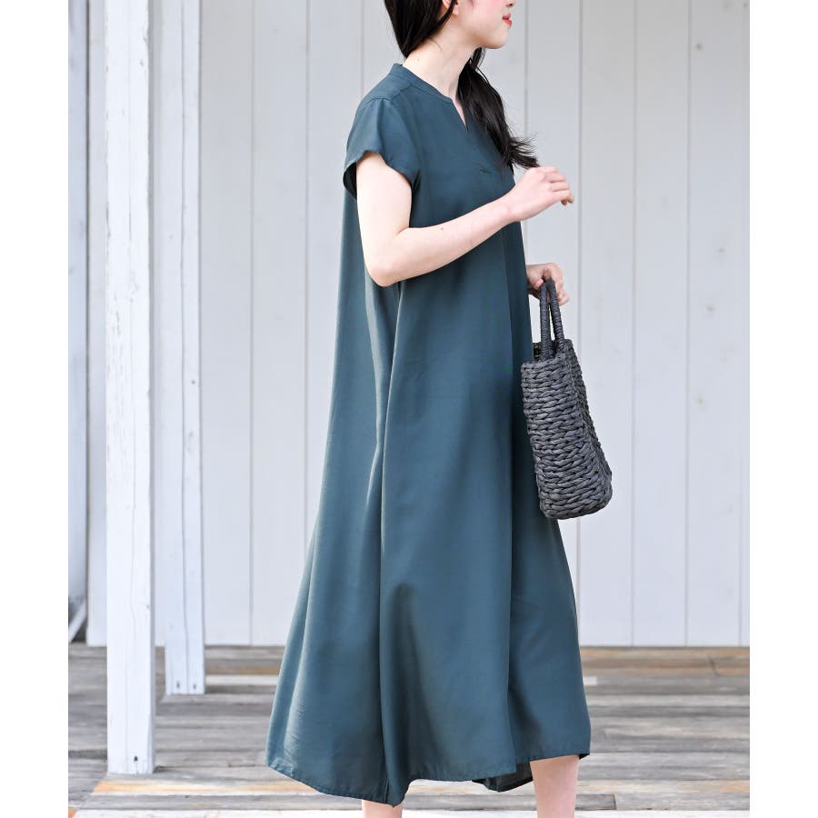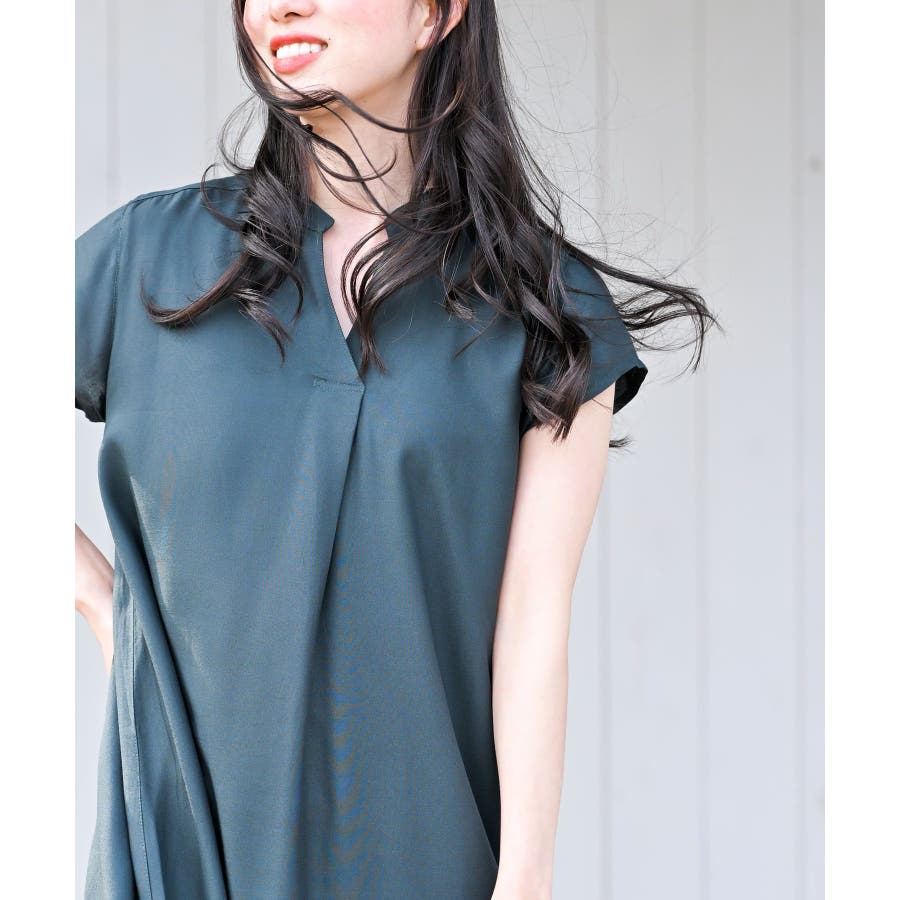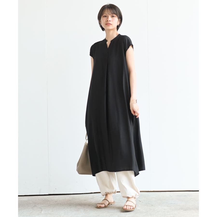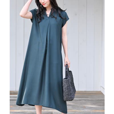 レーヨンノーカラースキッパーワンピース