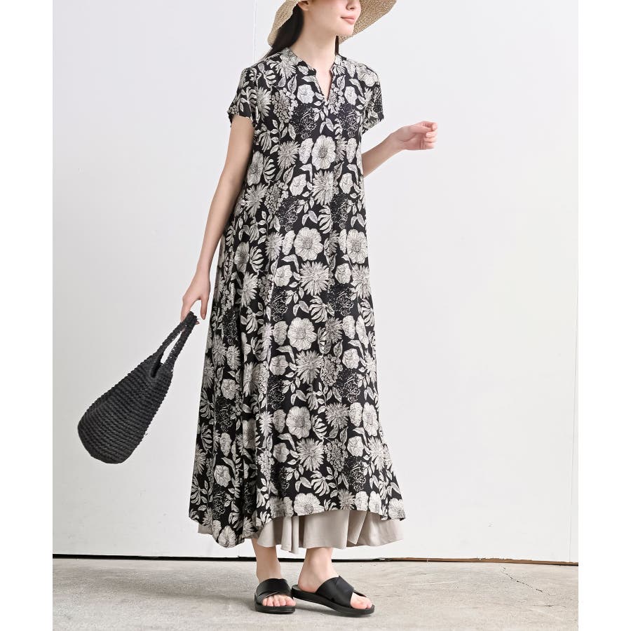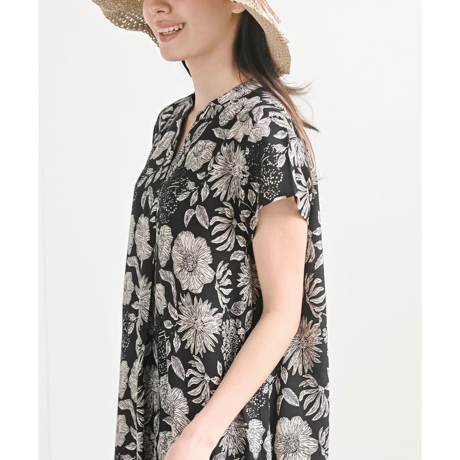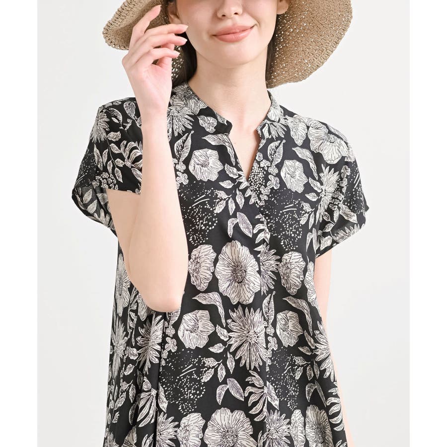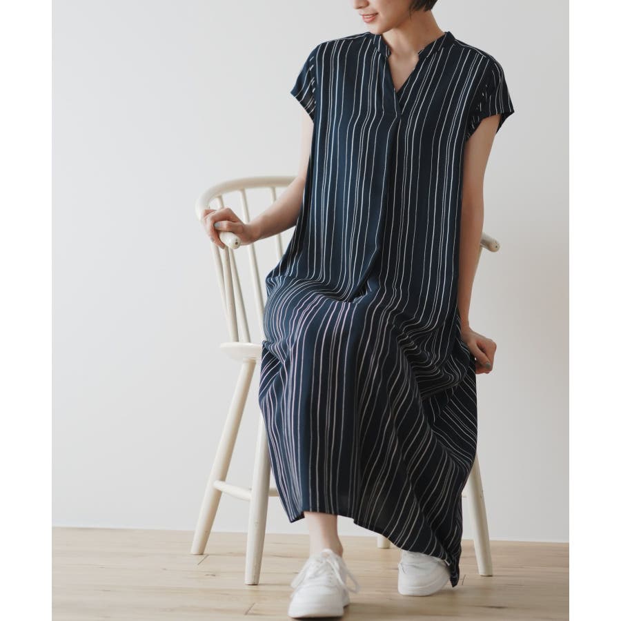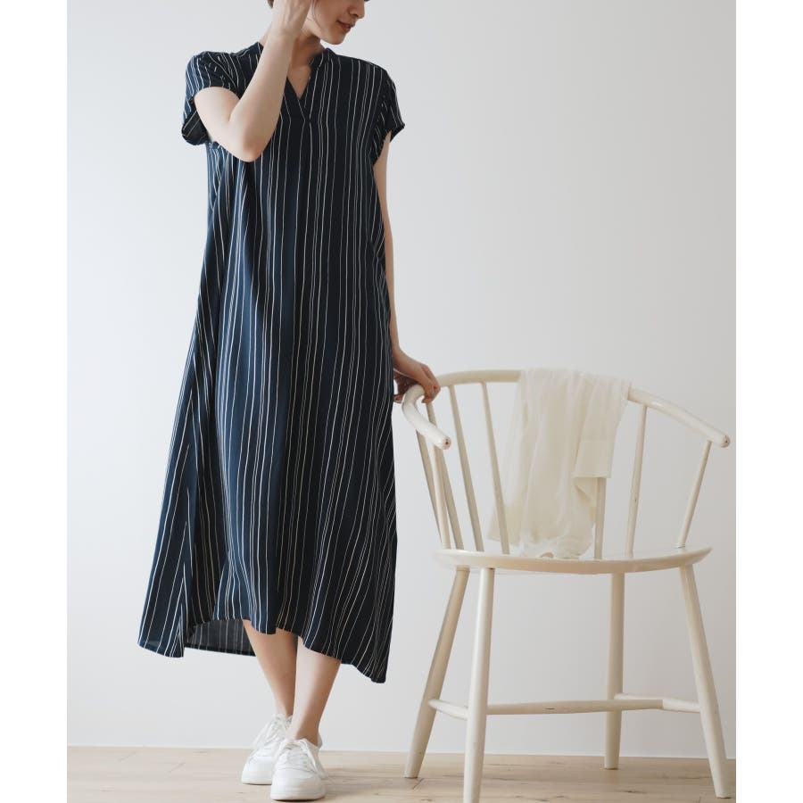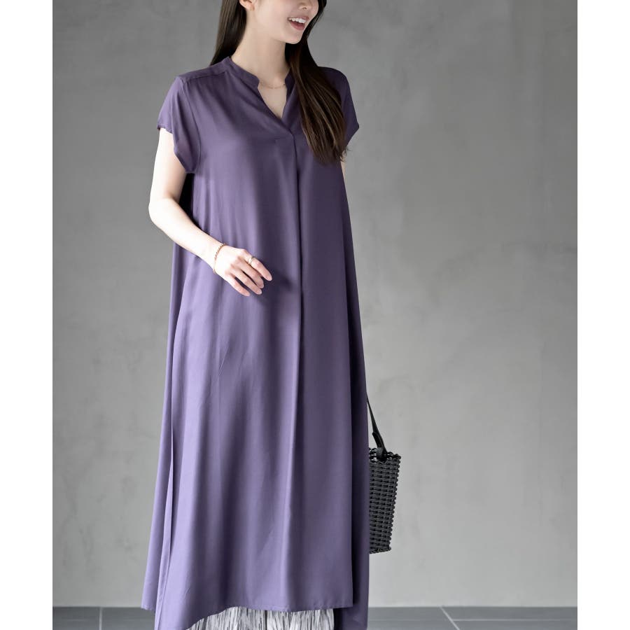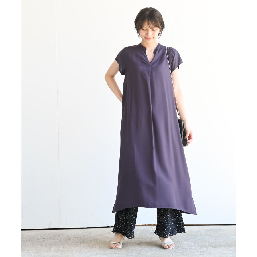 レーヨンノーカラースキッパーワンピース