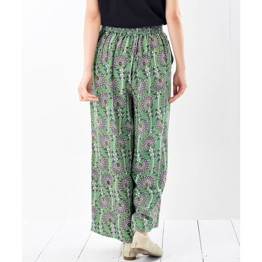 花柄が気に入って探してこちらにたどり着きました、デザイン的にはゆったりとした感じで履きやすいです、ウエストはゴムですが履く時にやや伸びない印象、骨盤広めさんやぽっちゃりした方は履く時だけきつめかもしれません、とにかく柄が気に入っているので購入出来て良かったです