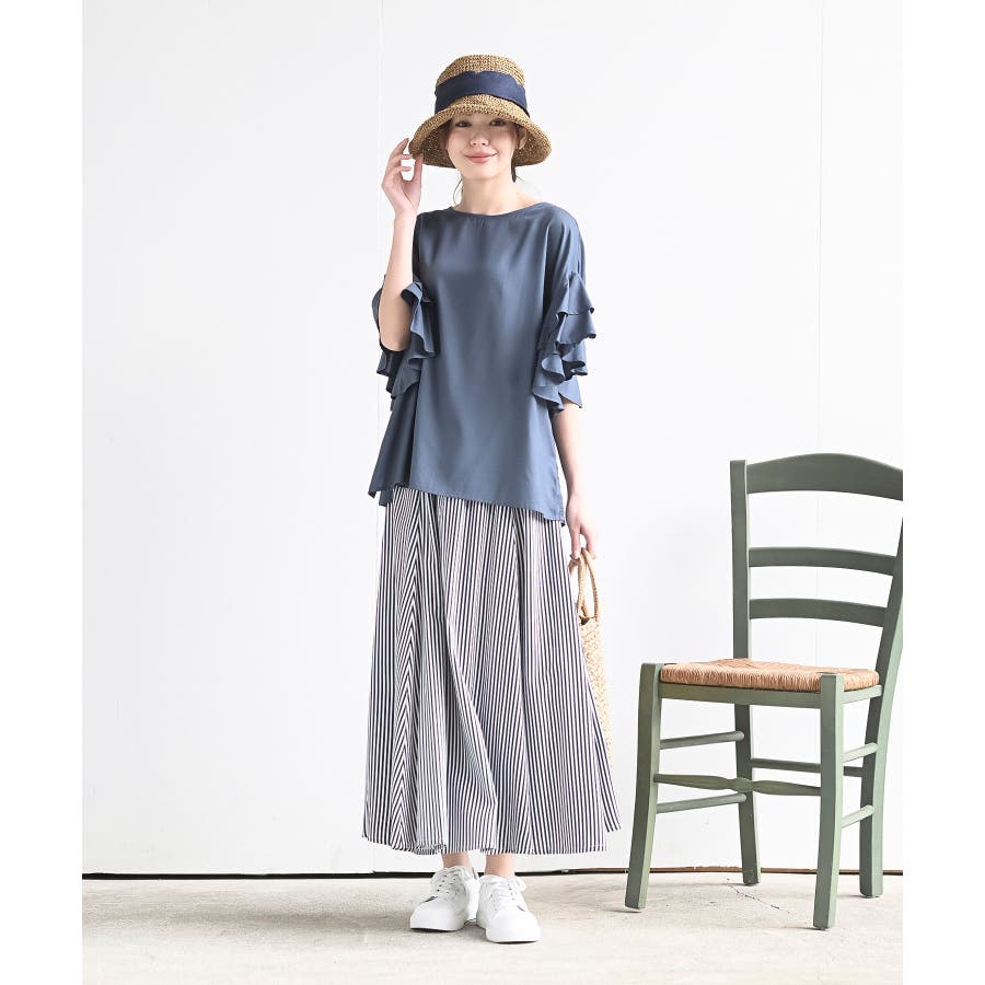 夏に爽やかに着たい商品。さん (50代以上 / 女性 / 身長160~165cm / 体重50~54kg)購入アイテム:カラー ネイビーサイズ フリー(0000000011)いつものボトムスサイズ:Mサイズ感:ぴったり - 生地が薄い