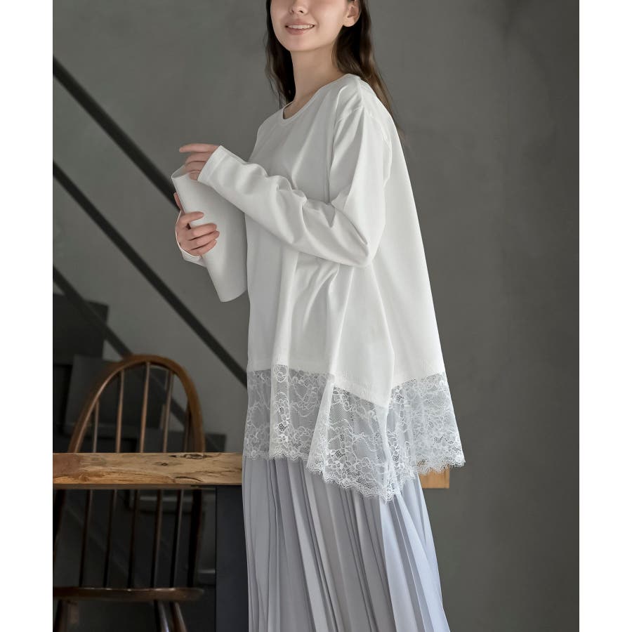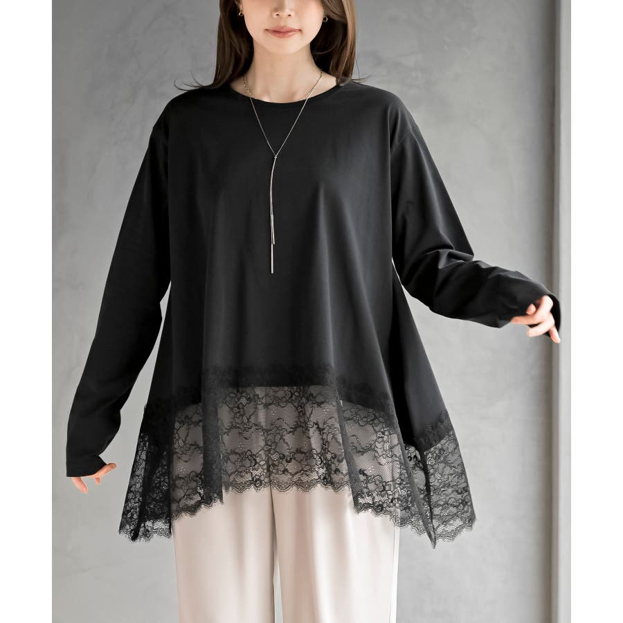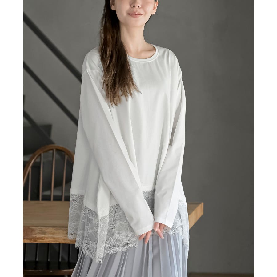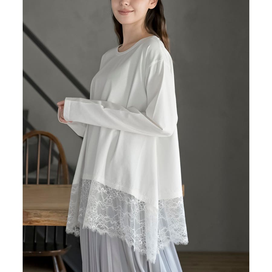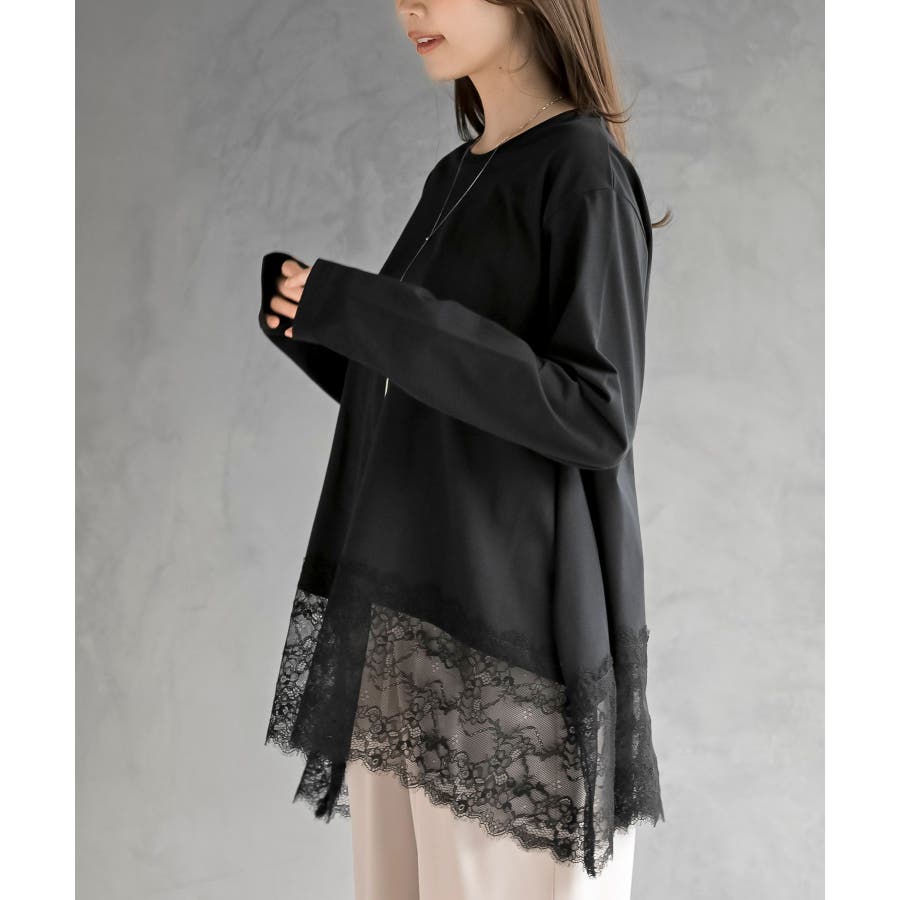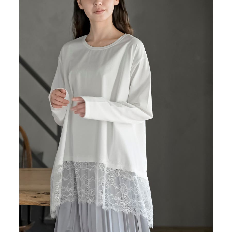 裾レースイレヘムロングスリーブT