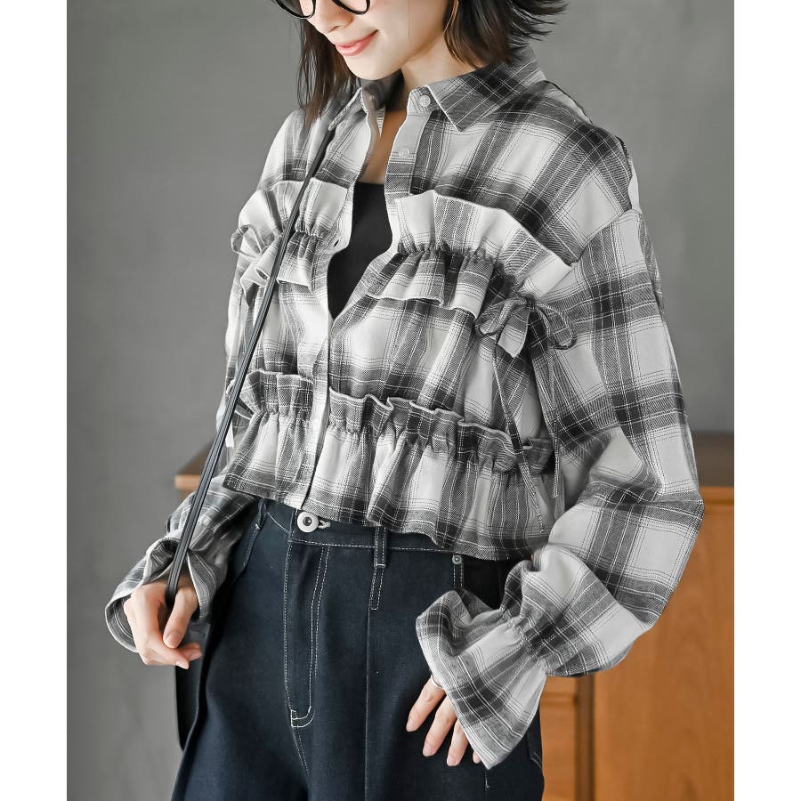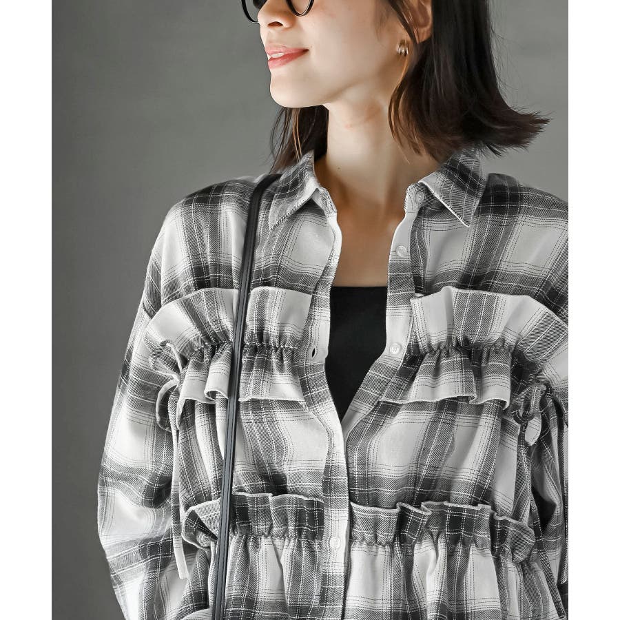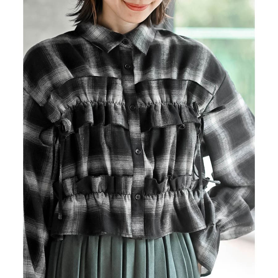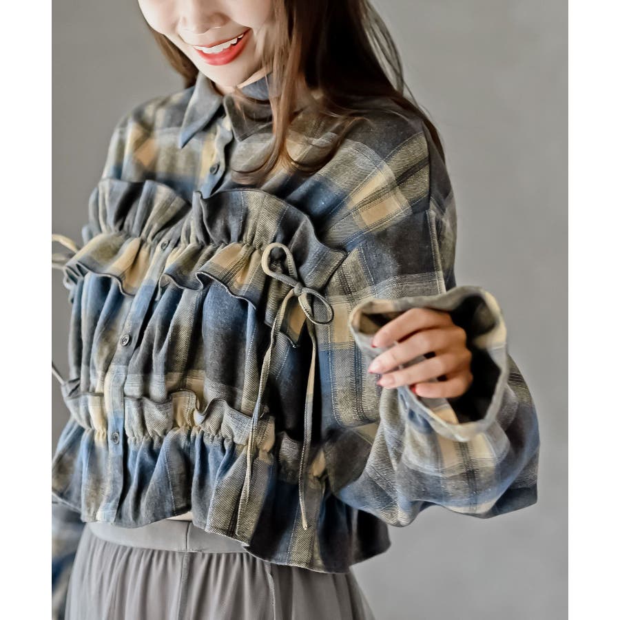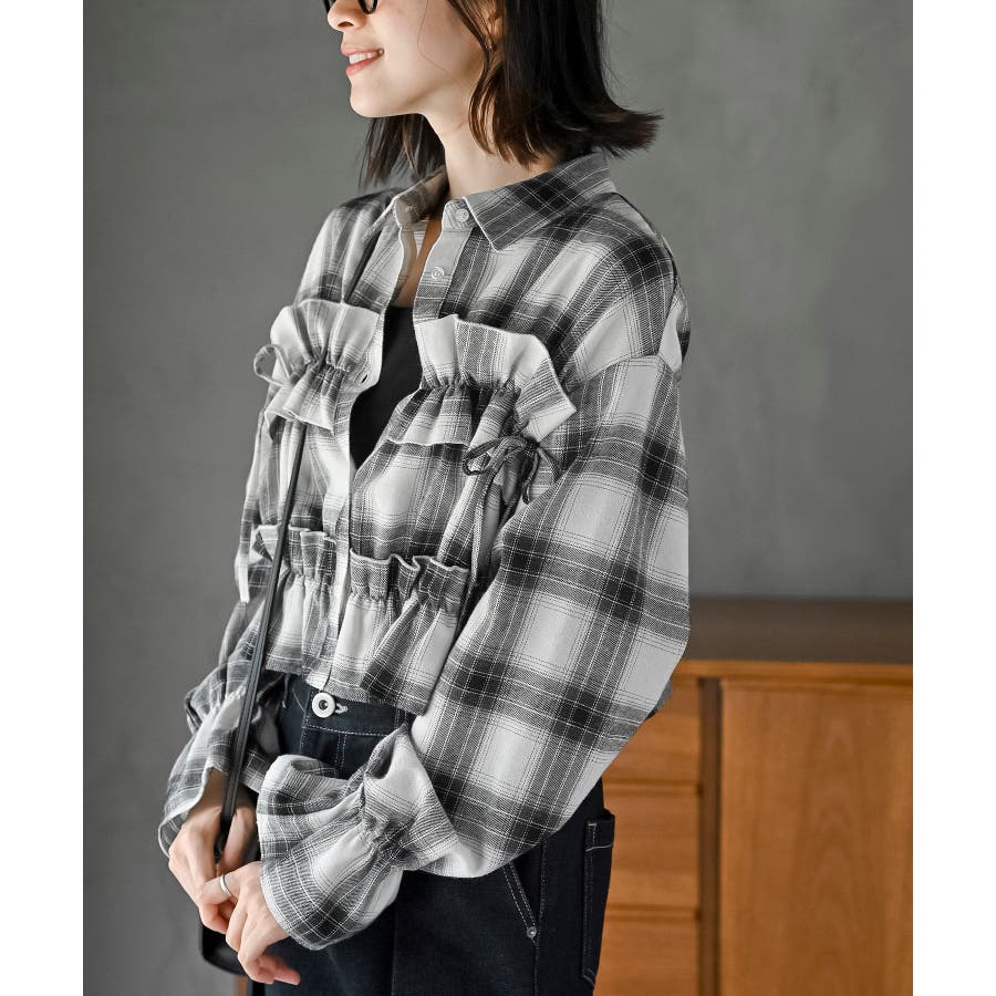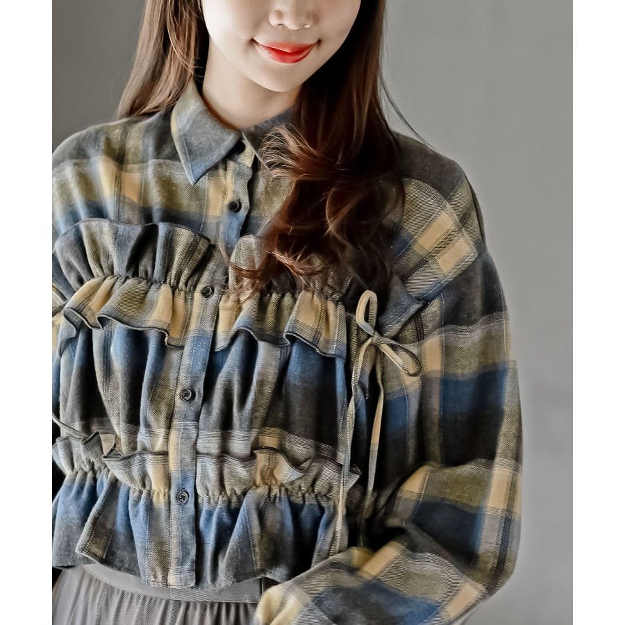 起毛チェックフリルシャツ
