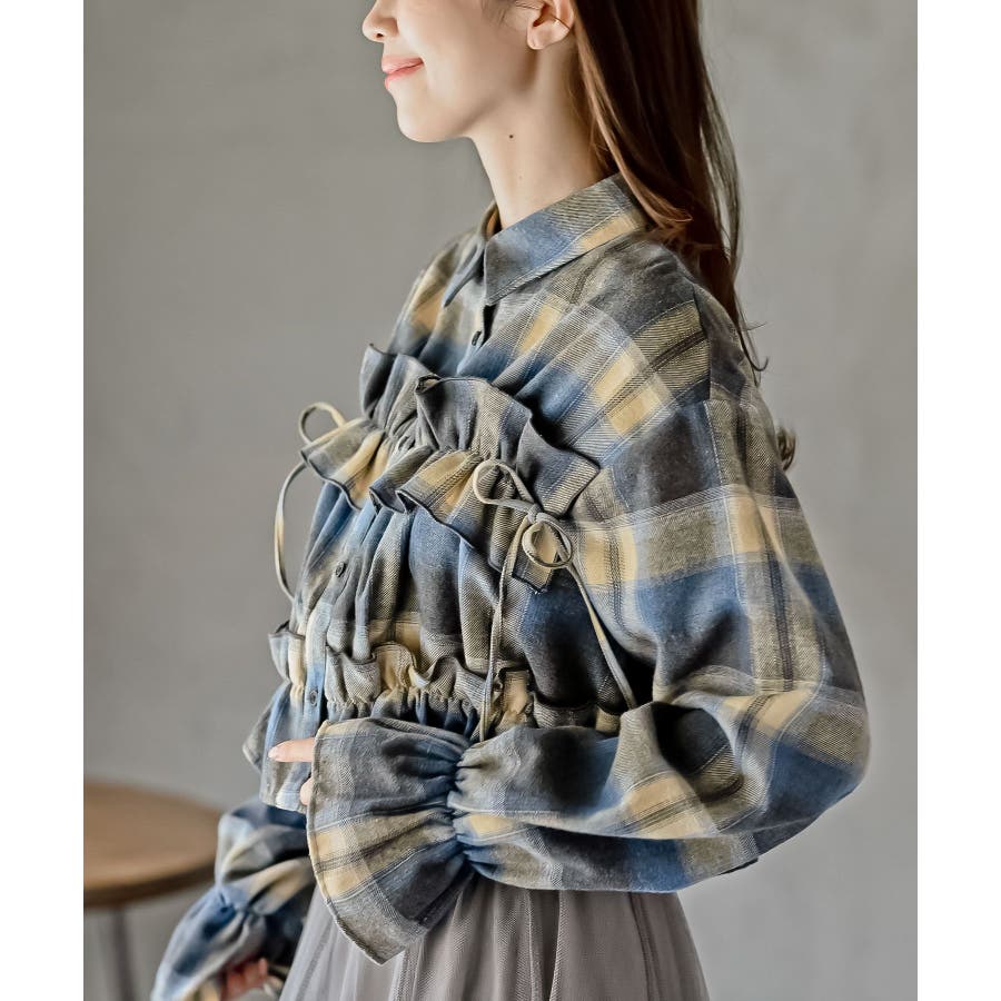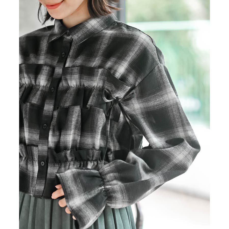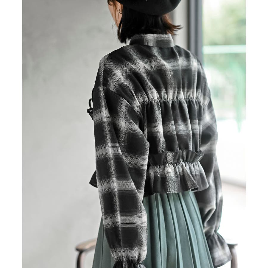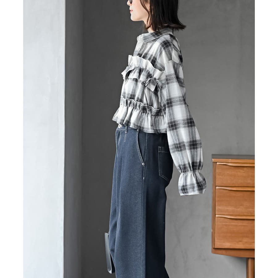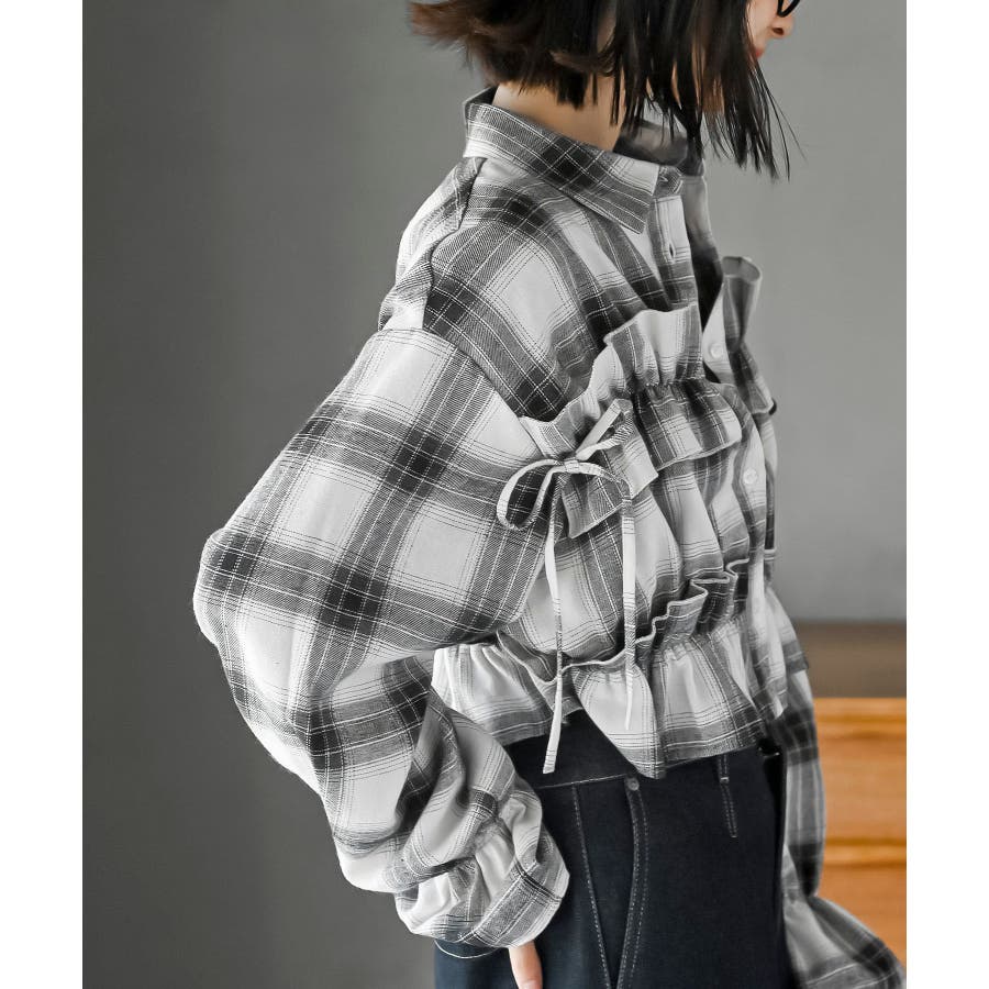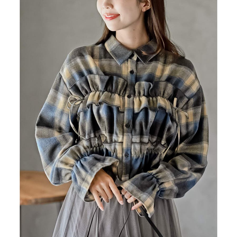 起毛チェックフリルシャツ