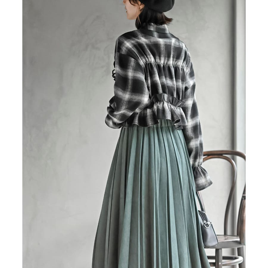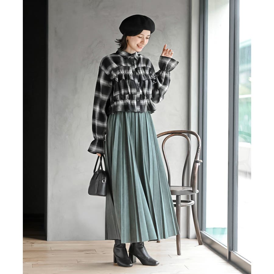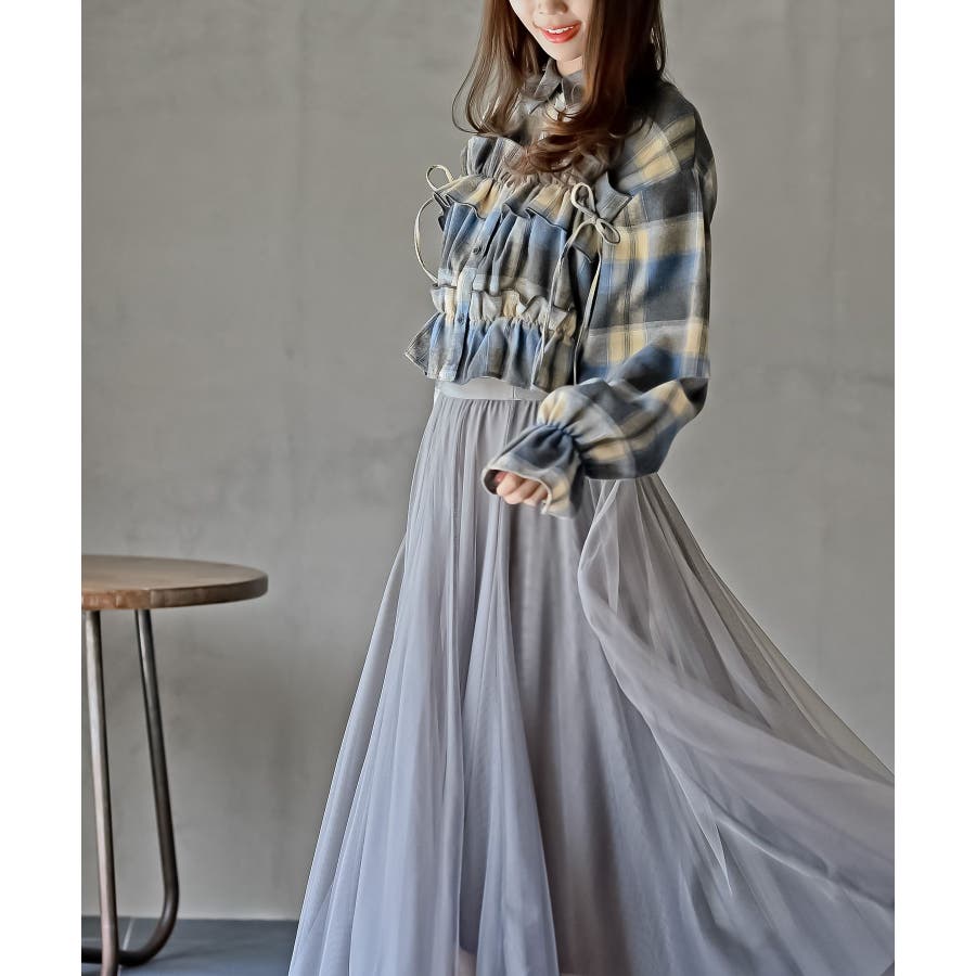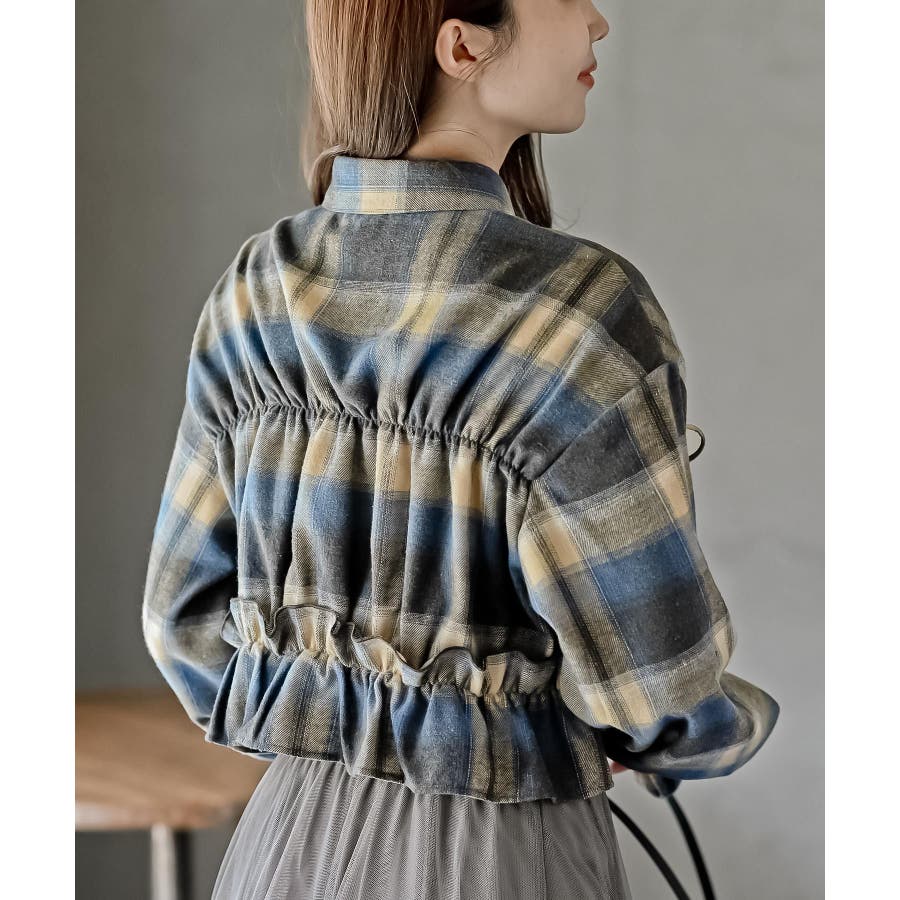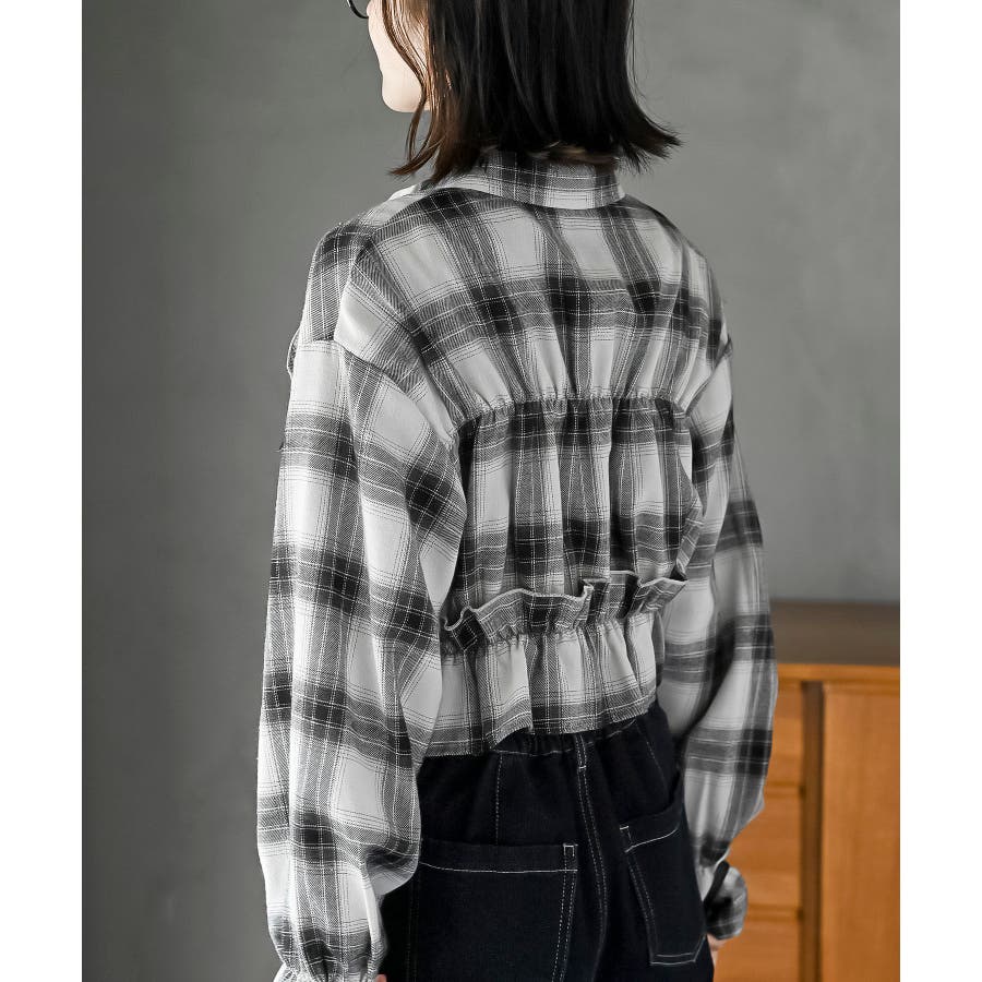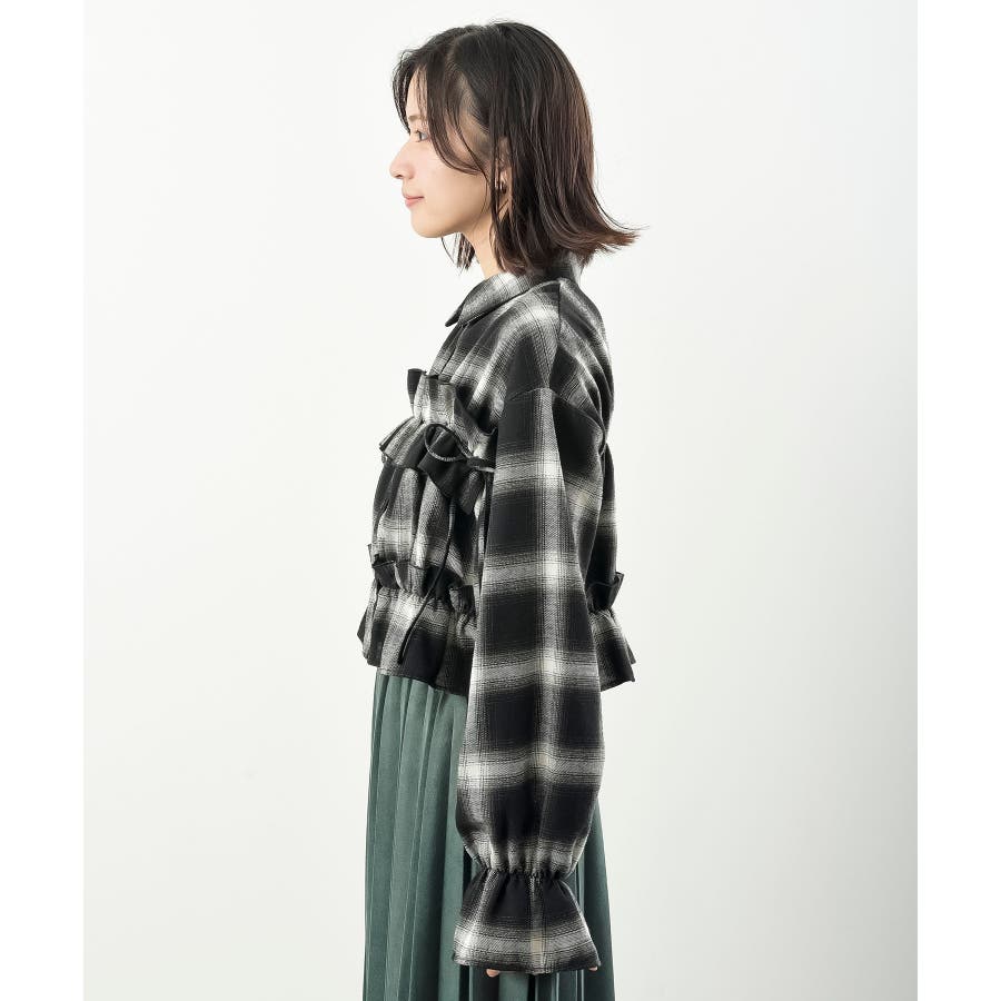起毛チェックフリルシャツ