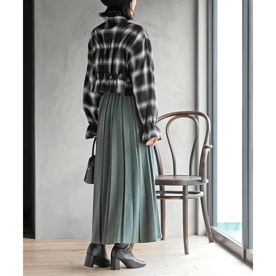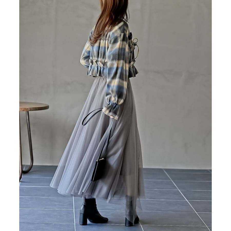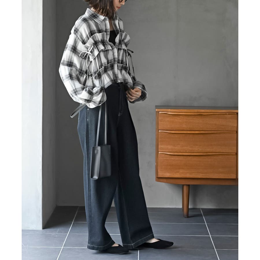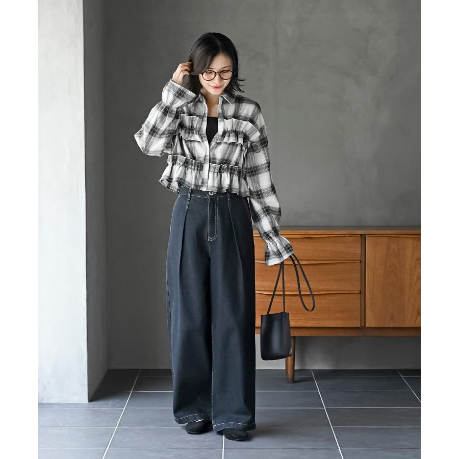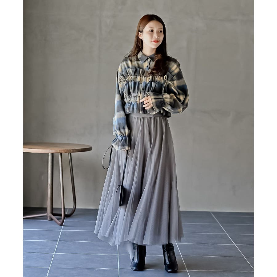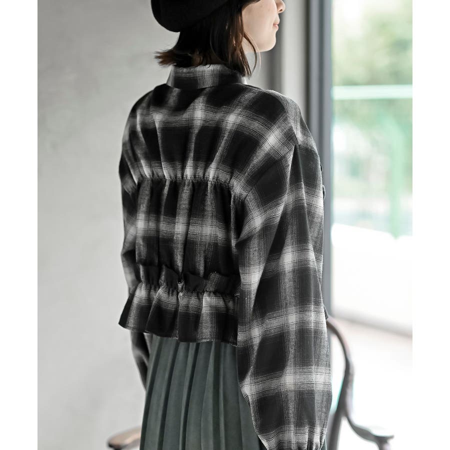 起毛チェックフリルシャツ