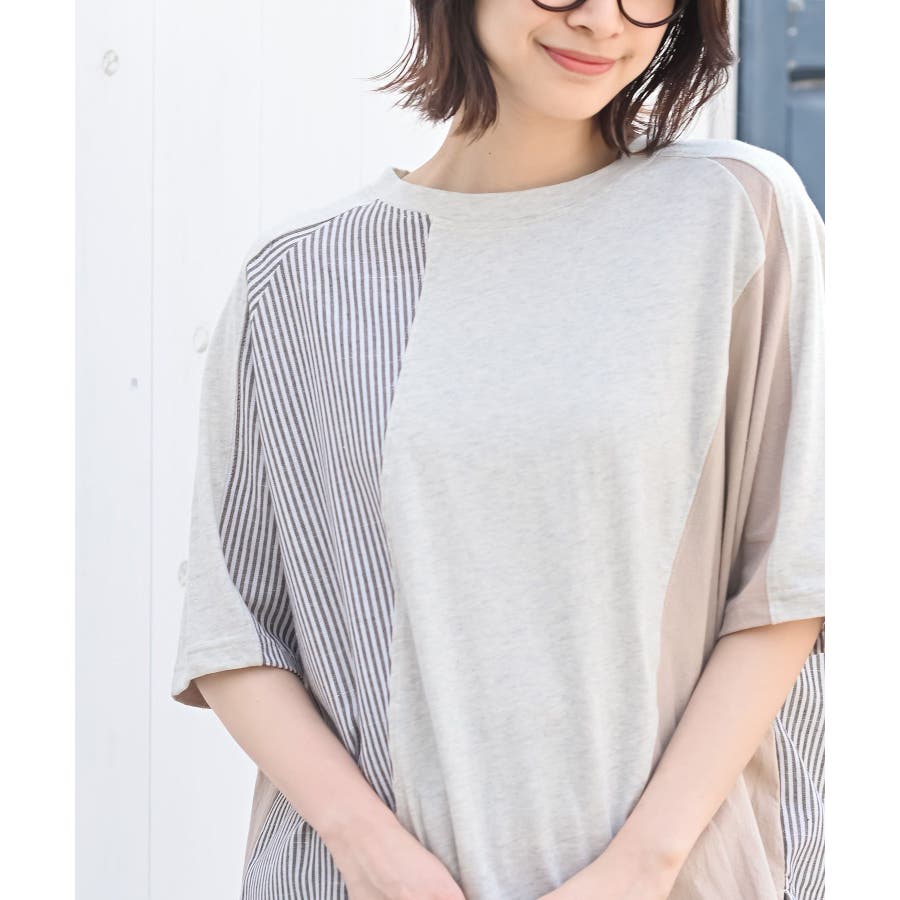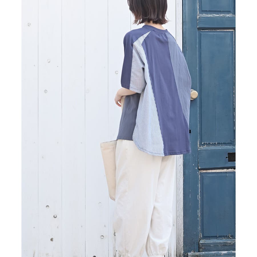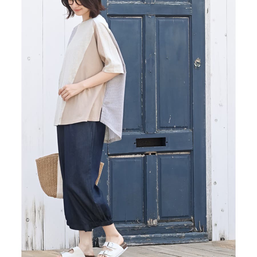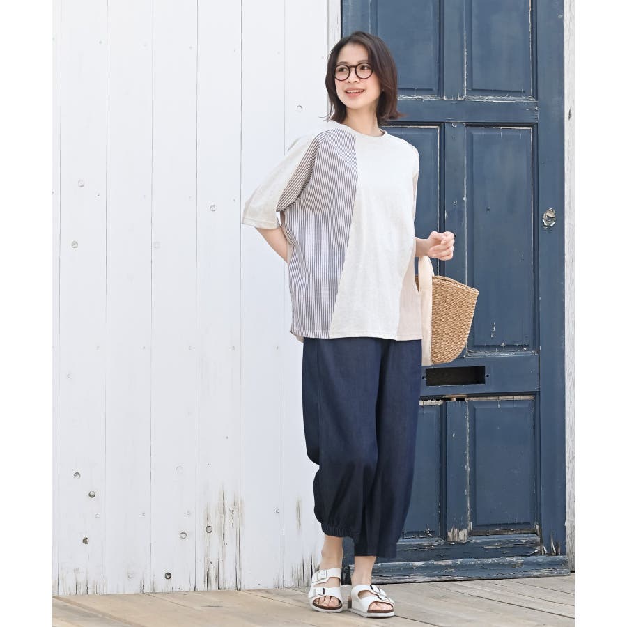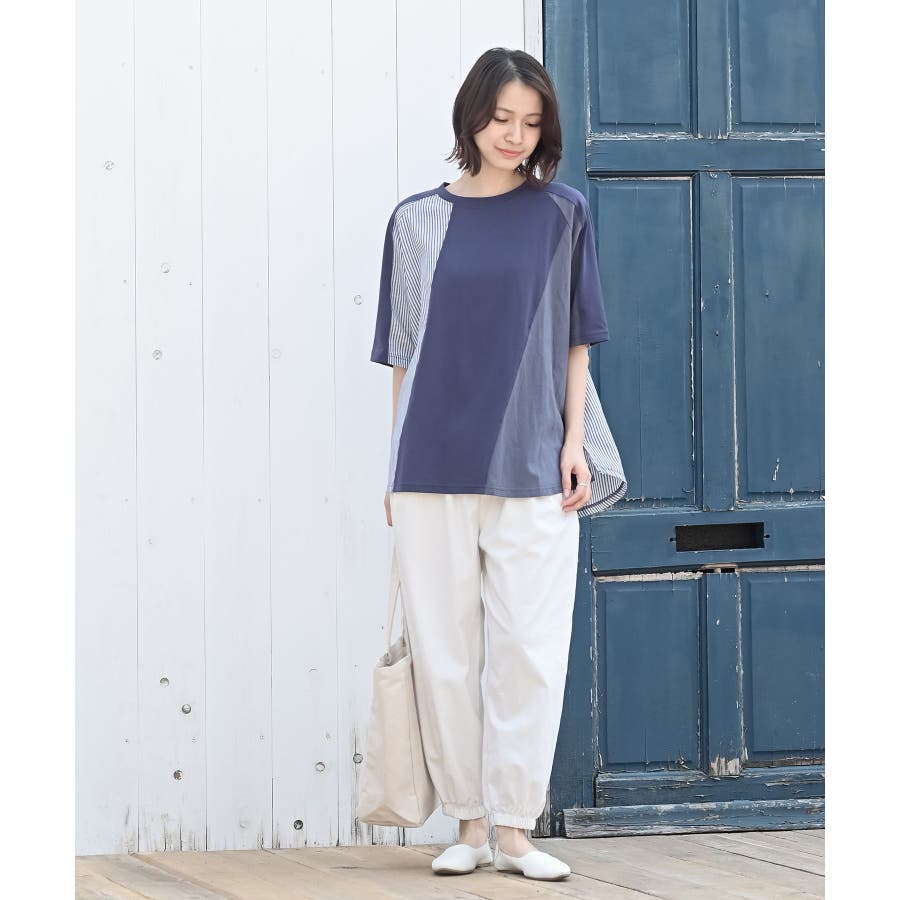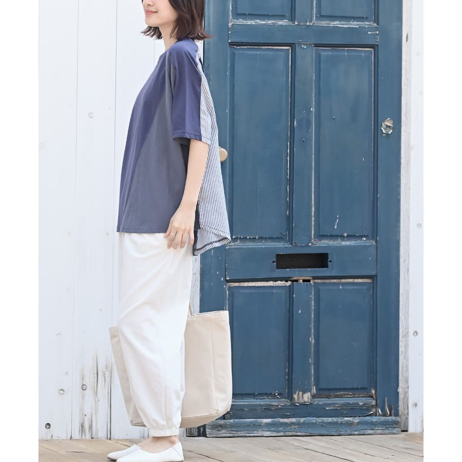 | 素材 | 本体: 綿100%, 別生地ストライプ部分: 綿100%, 別生地無地部分: 綿50%, ポリエステル50% |