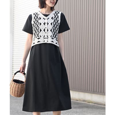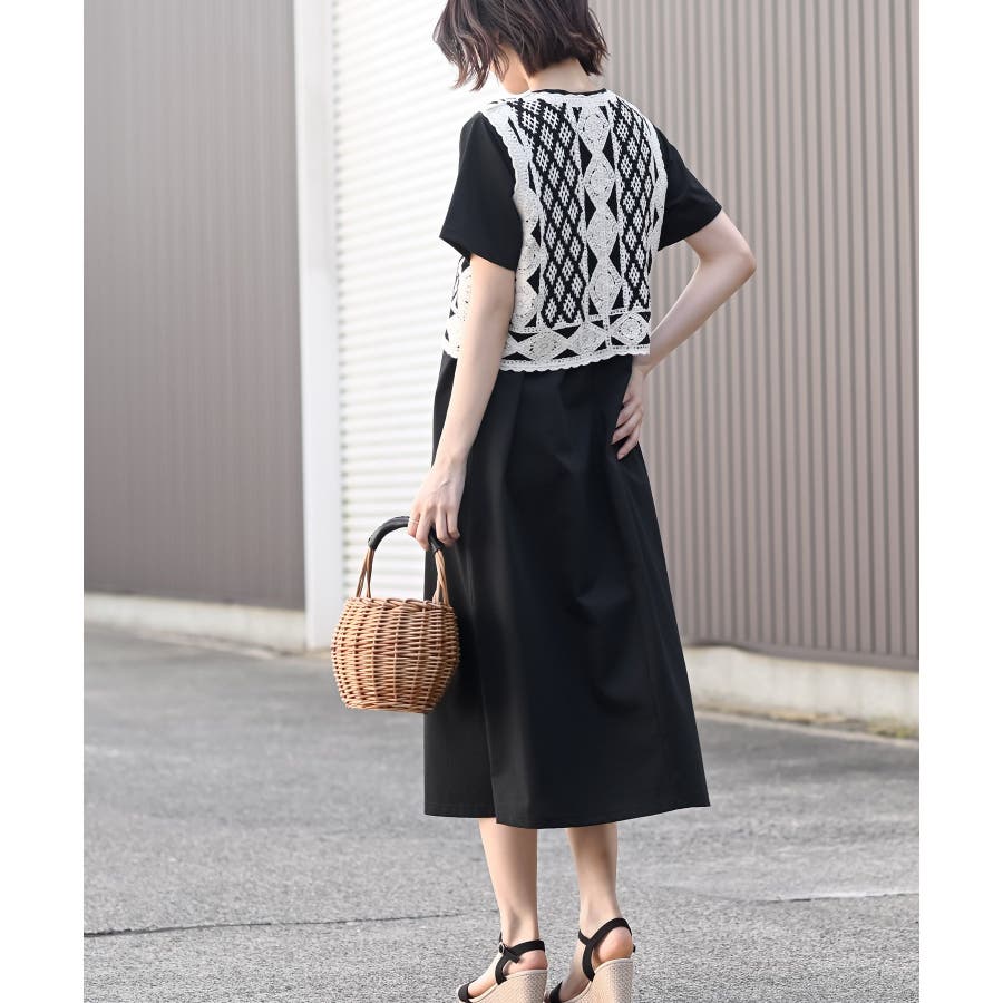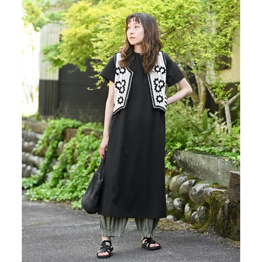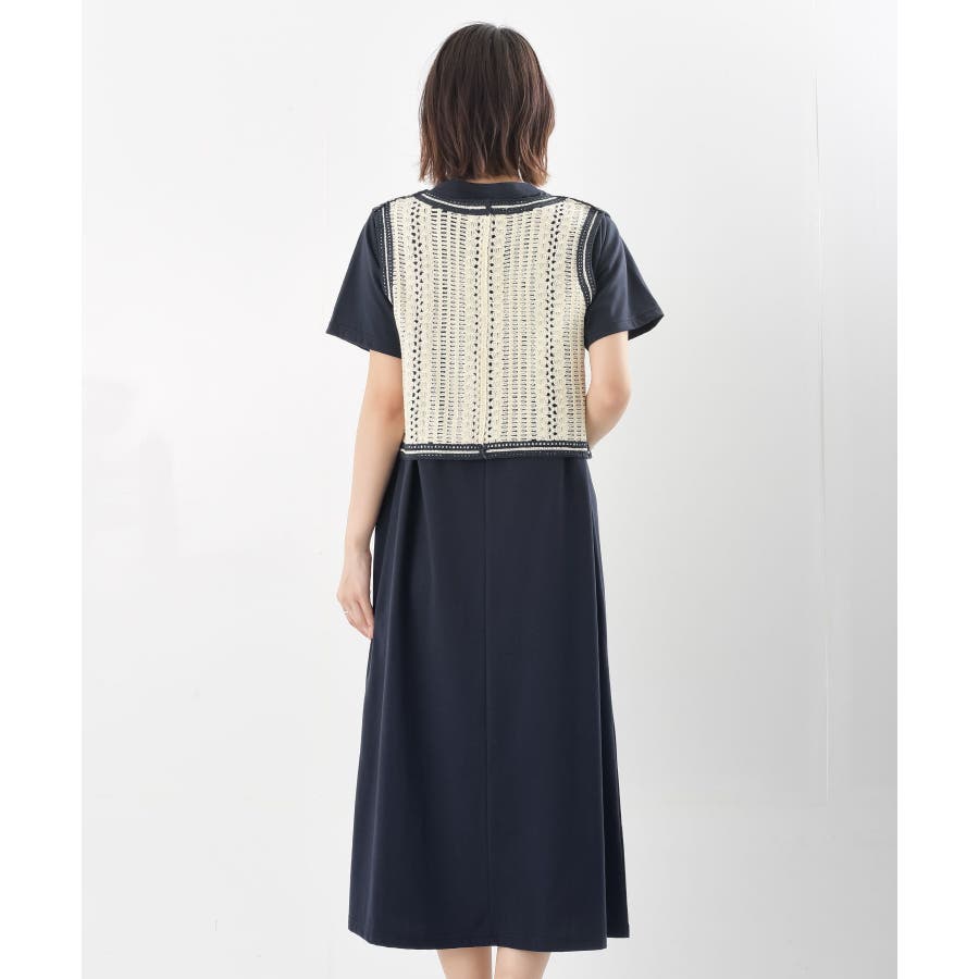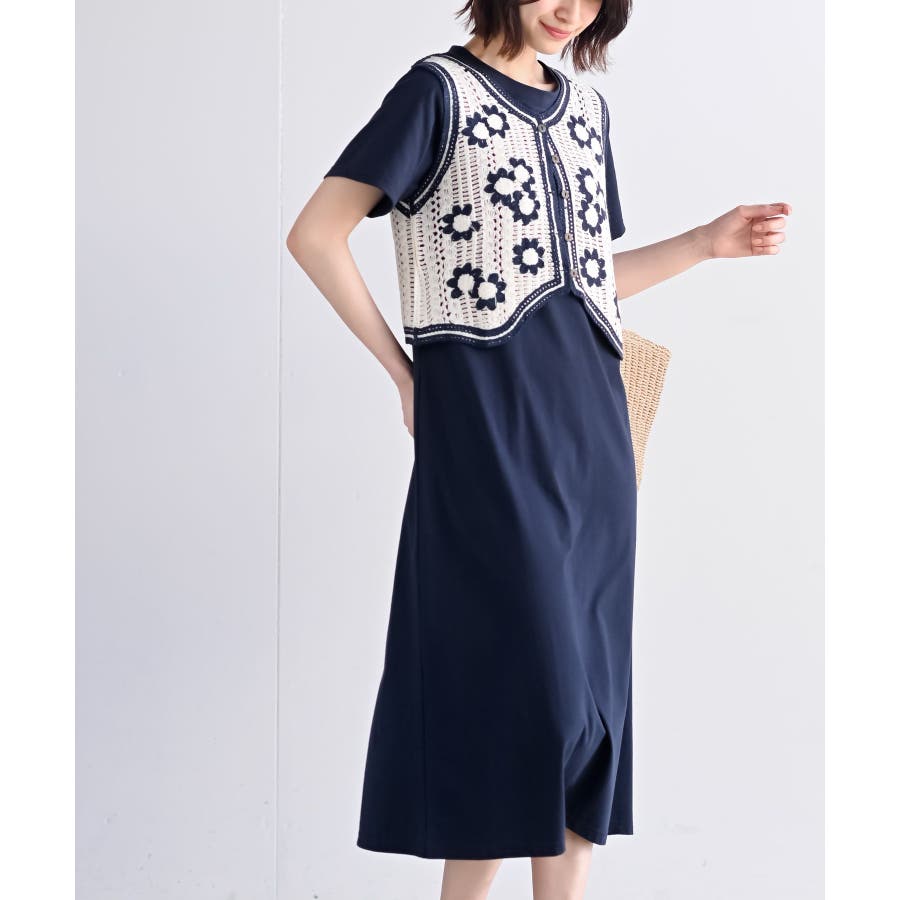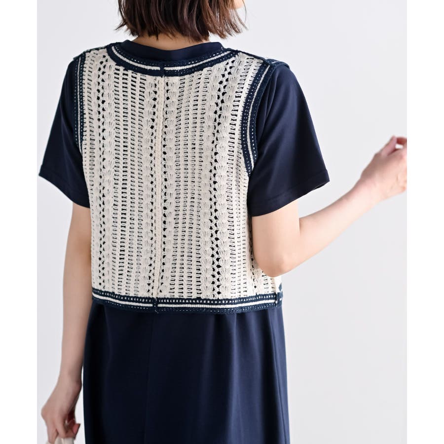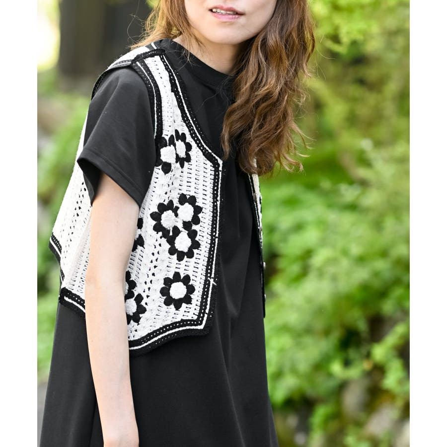 カギ針ベスト×Tシャツワンピースアンサンブル