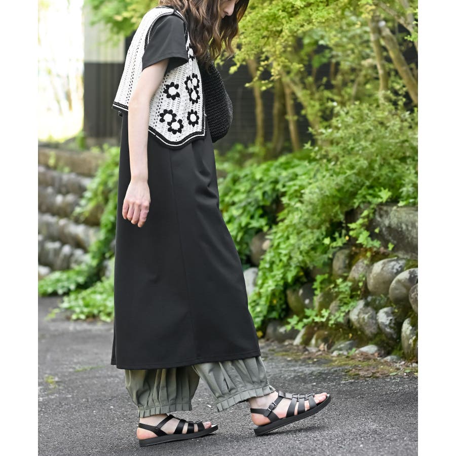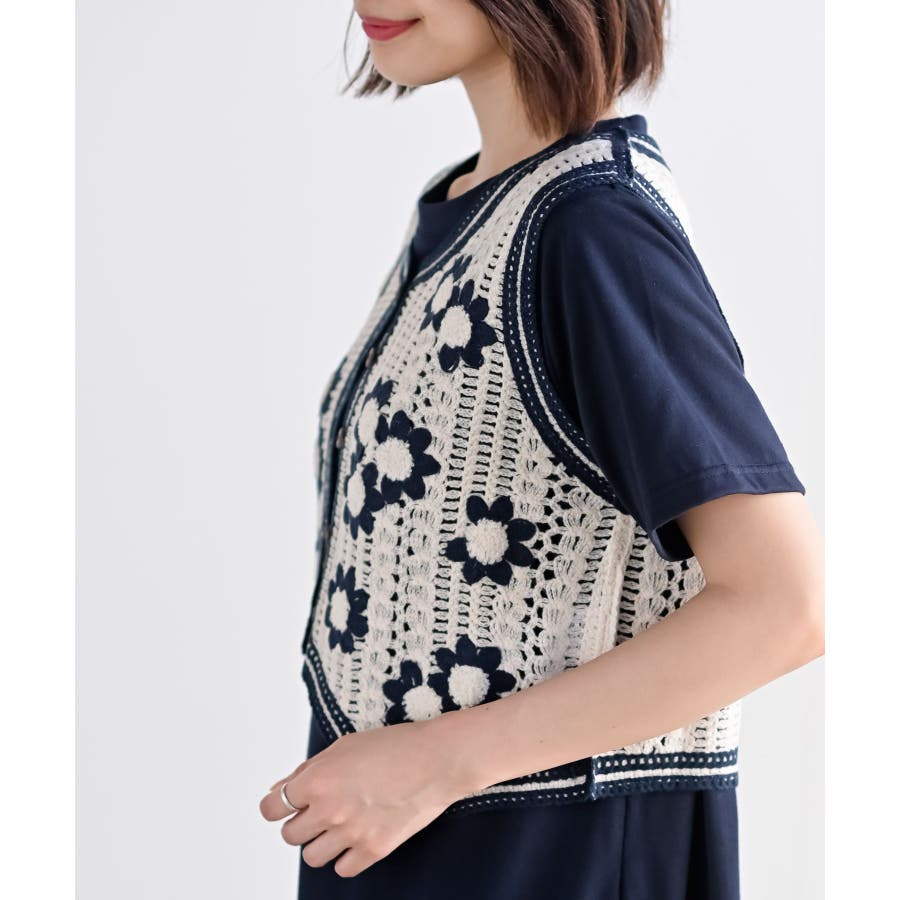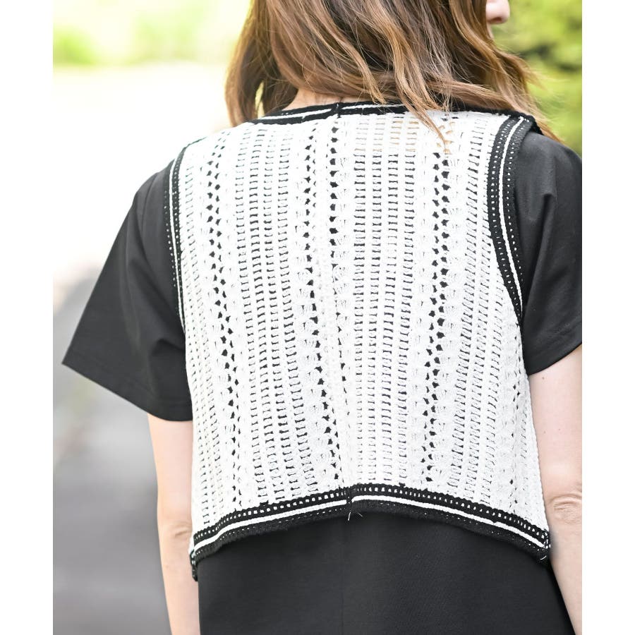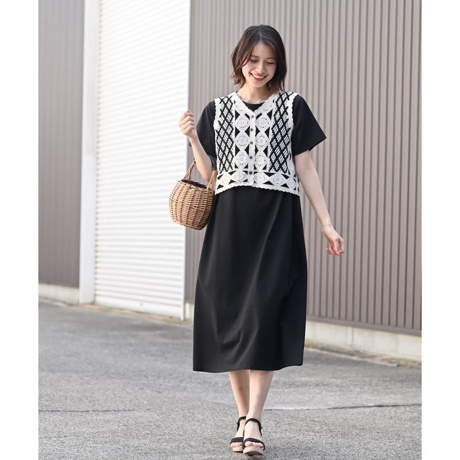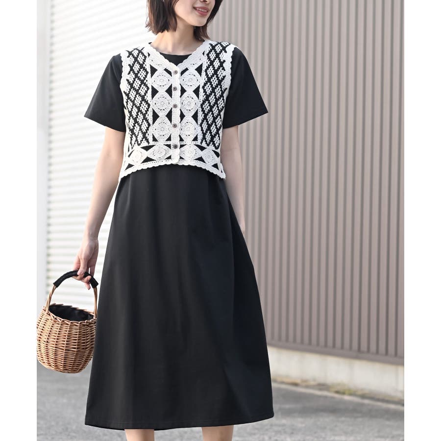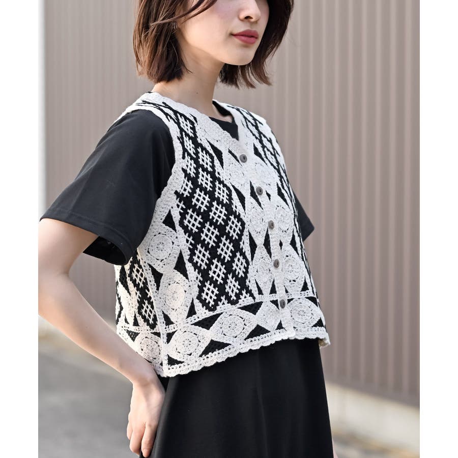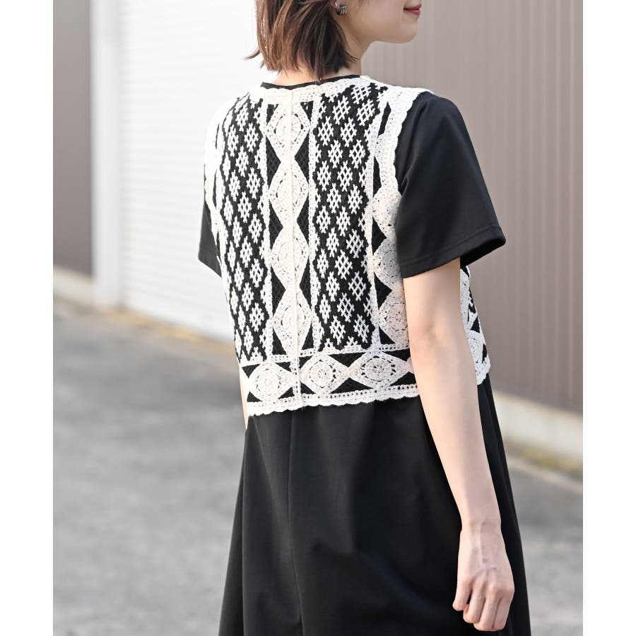 カギ針ベスト×Tシャツワンピースアンサンブル