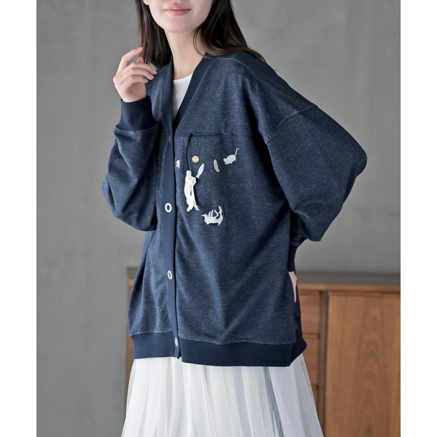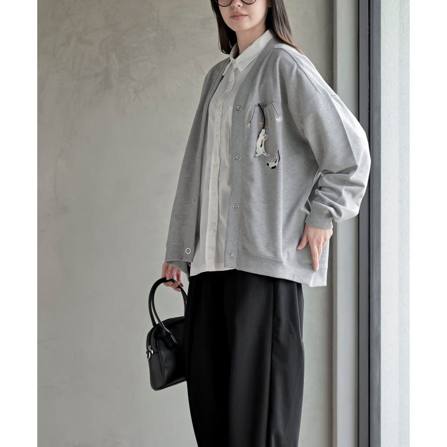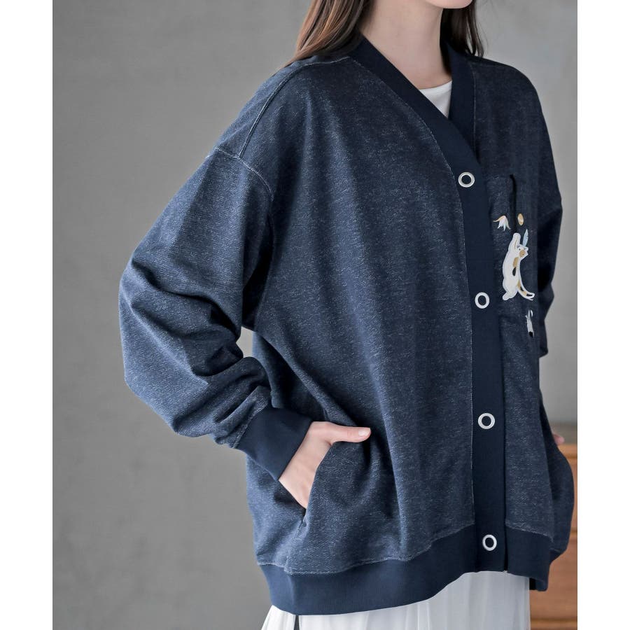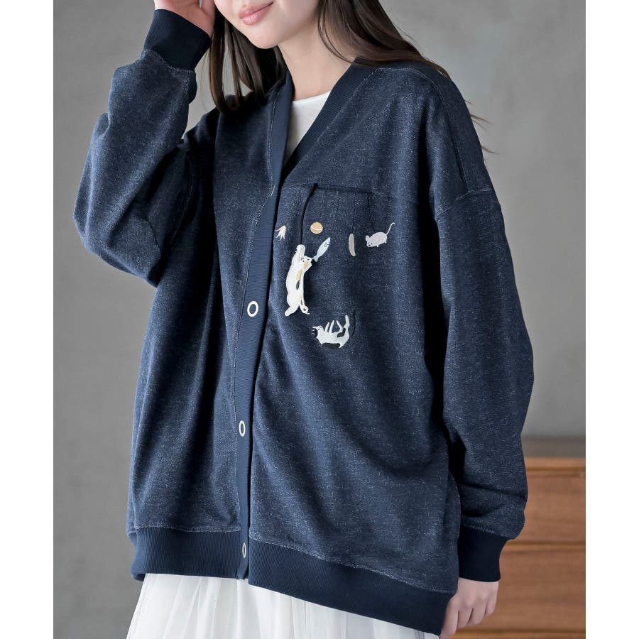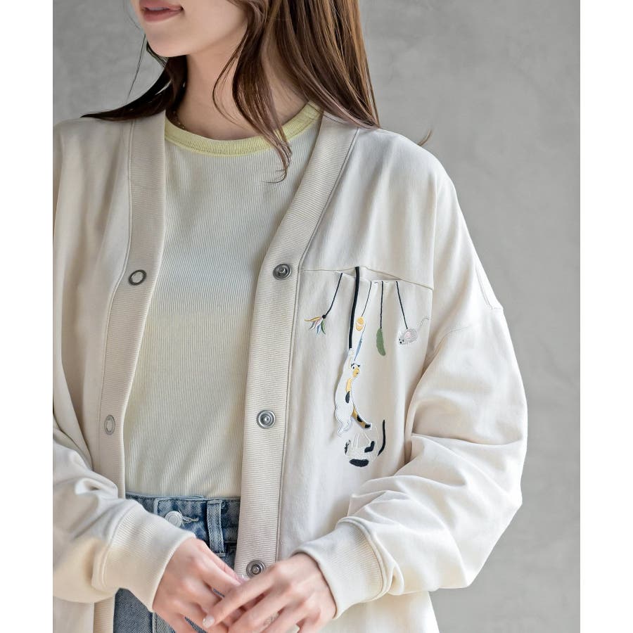 ブラブラキャットミニ裏毛Vネックカーディガン