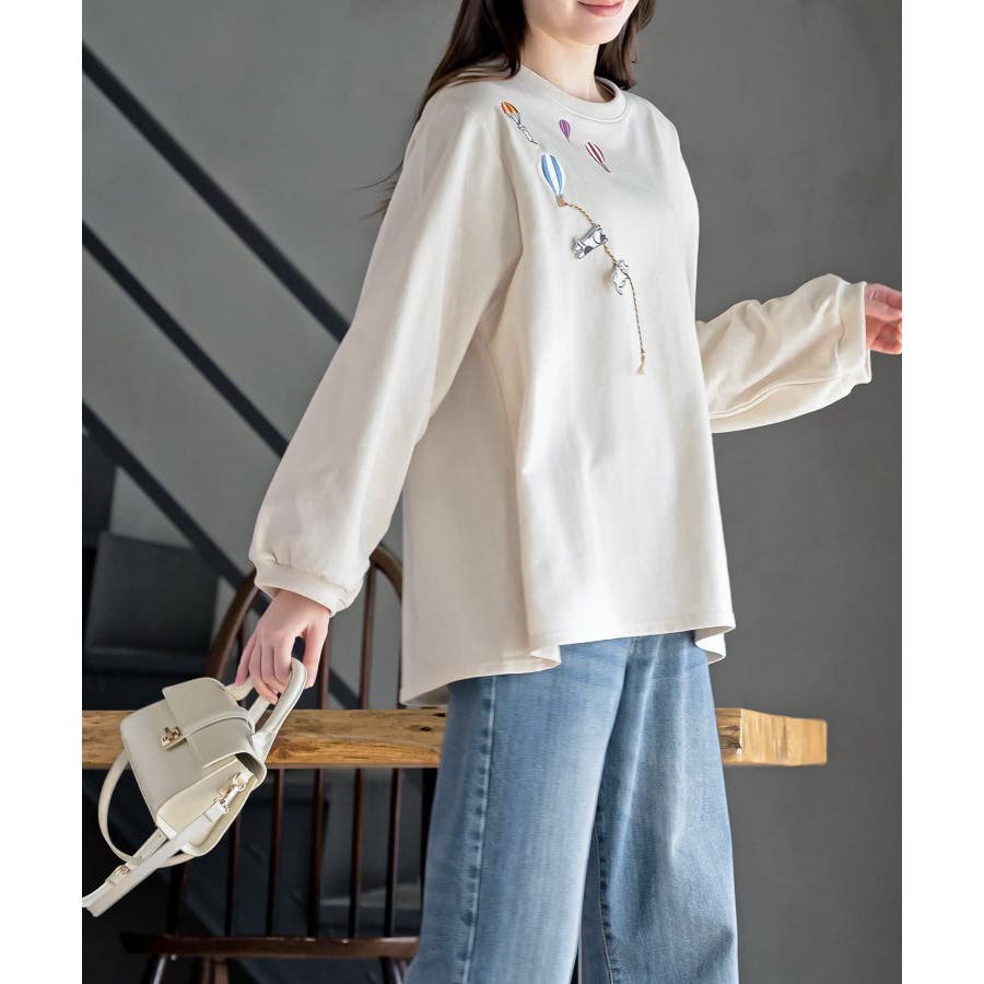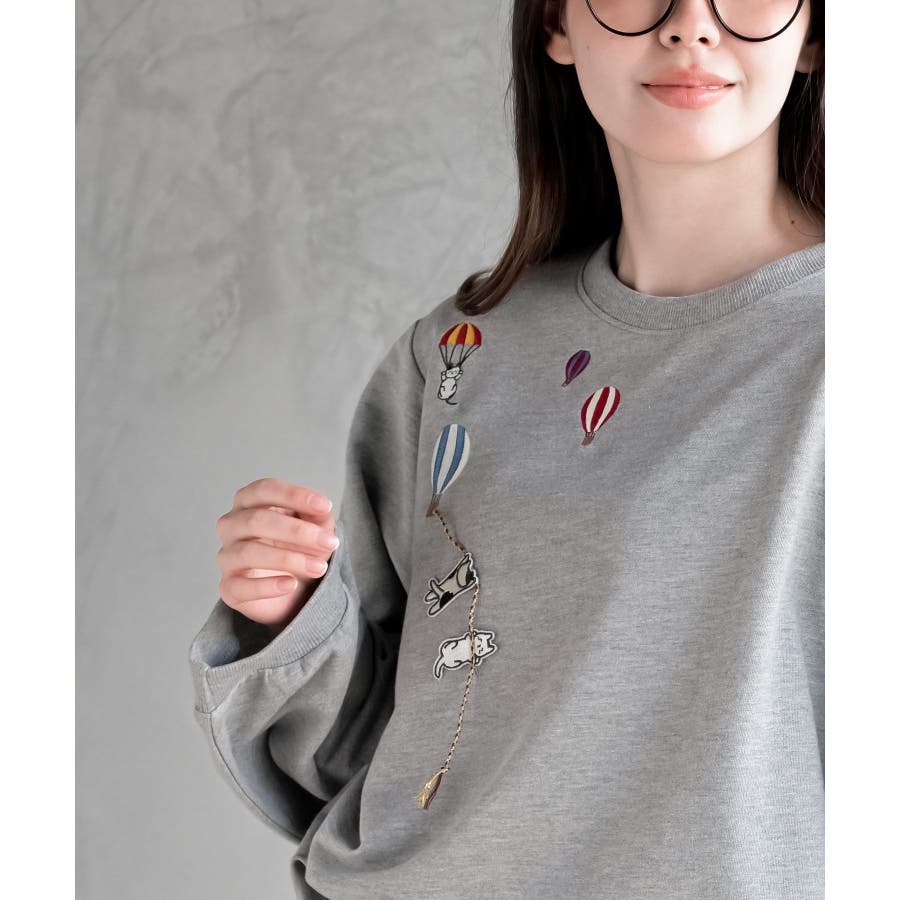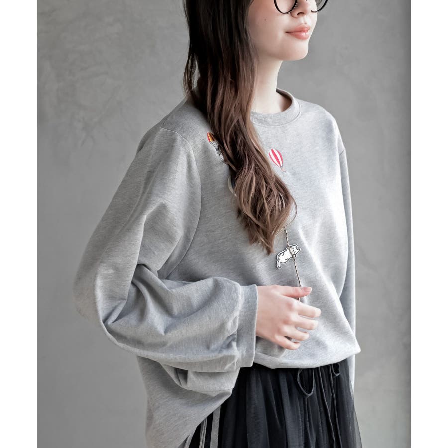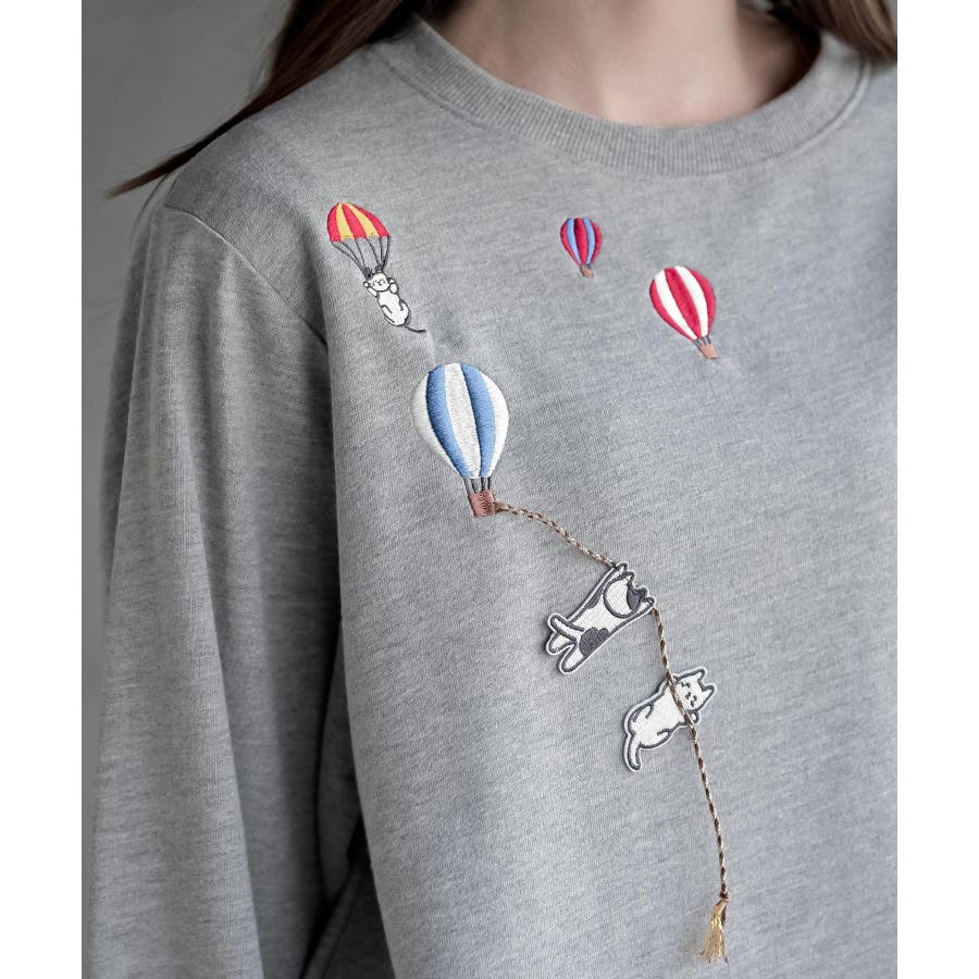 気球キャット刺繍ミニ裏毛プルオーバー
