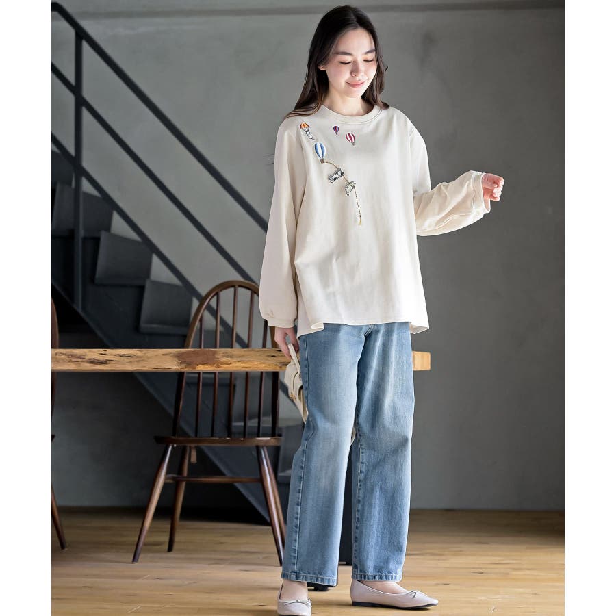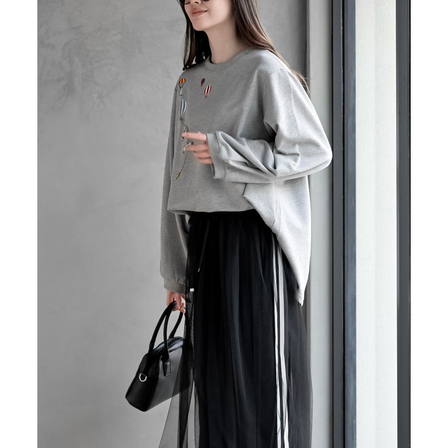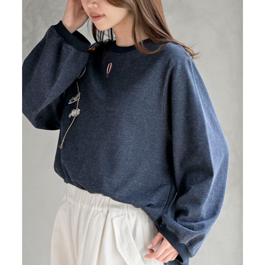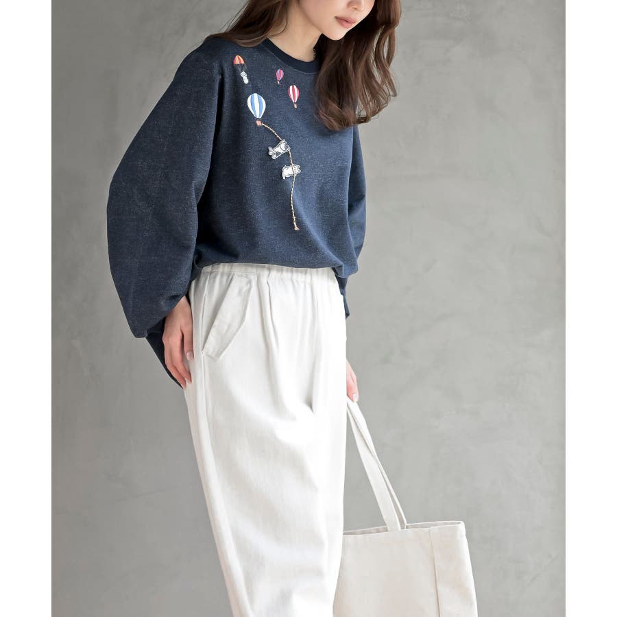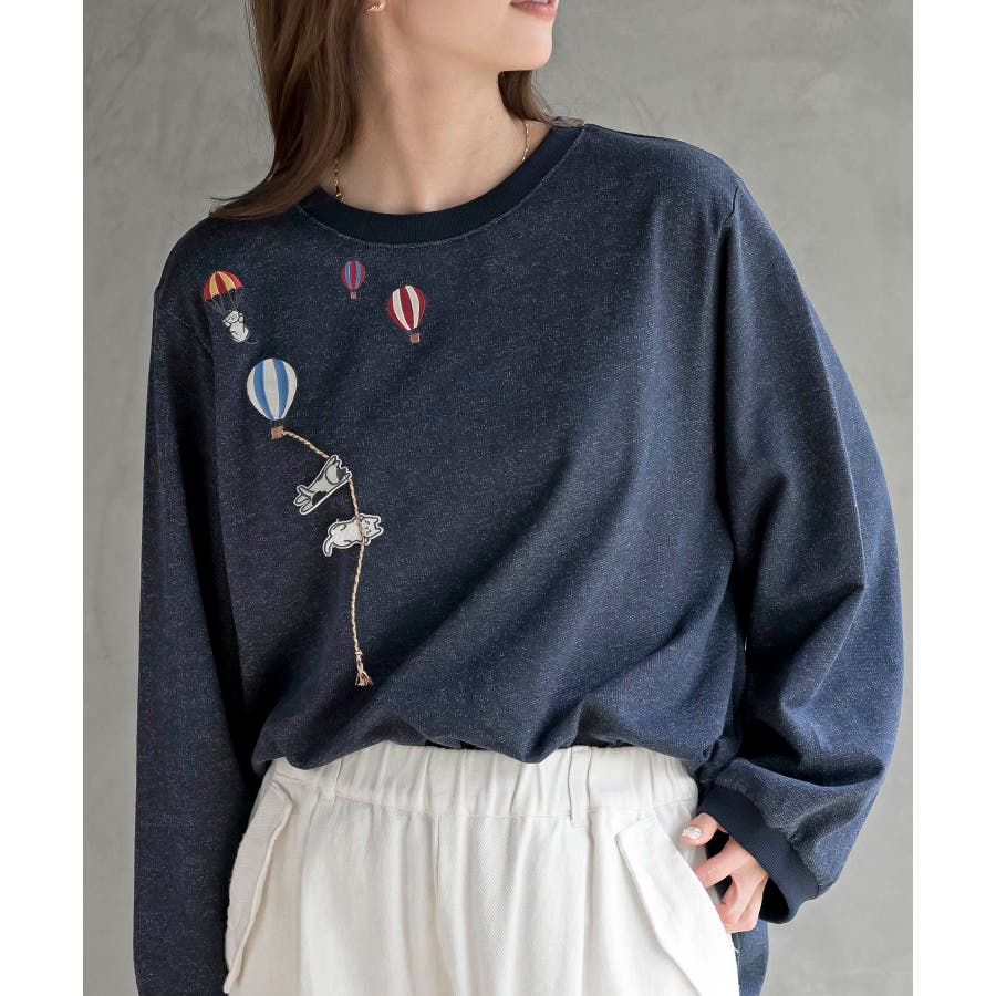 気球キャット刺繍ミニ裏毛プルオーバー
