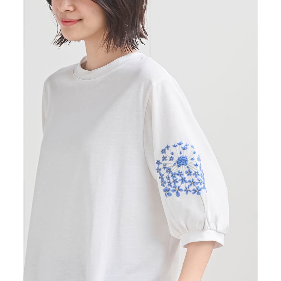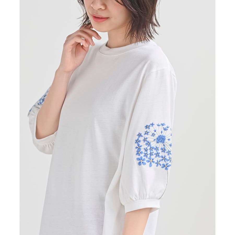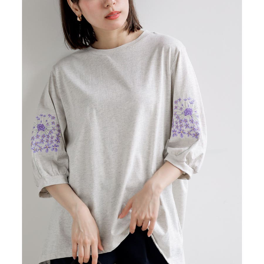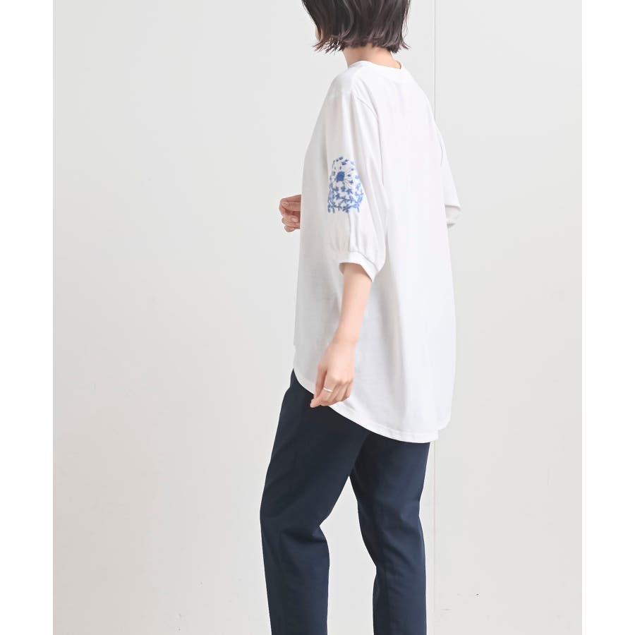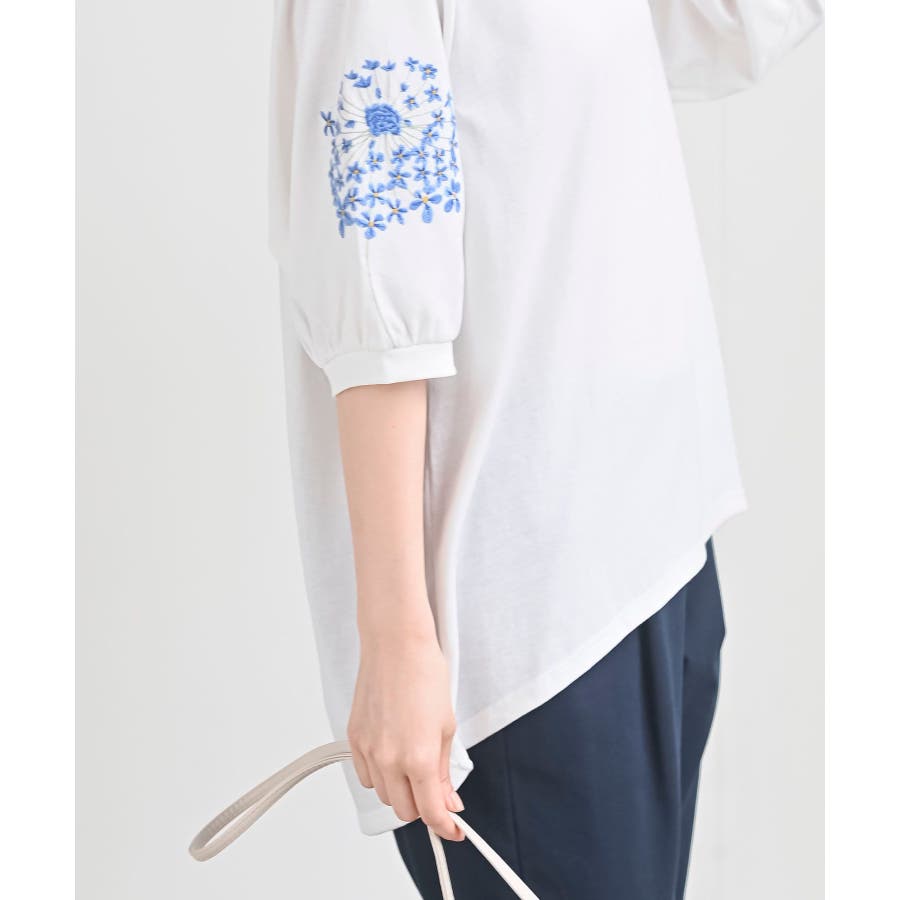 刺繍スリーブ7分袖カットプルオーバー