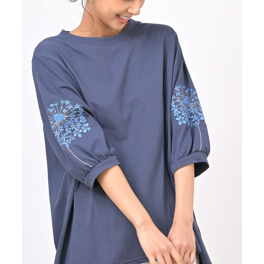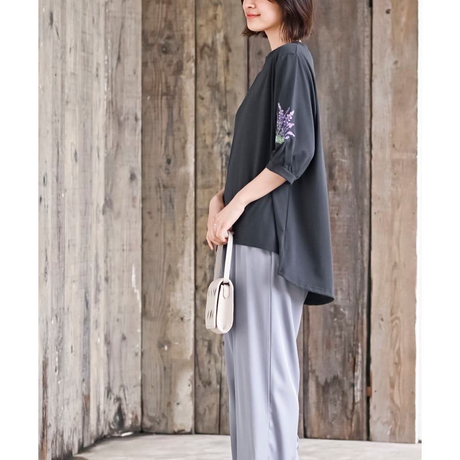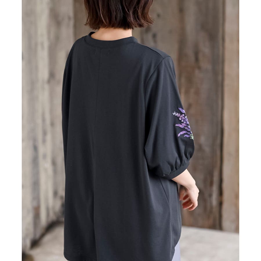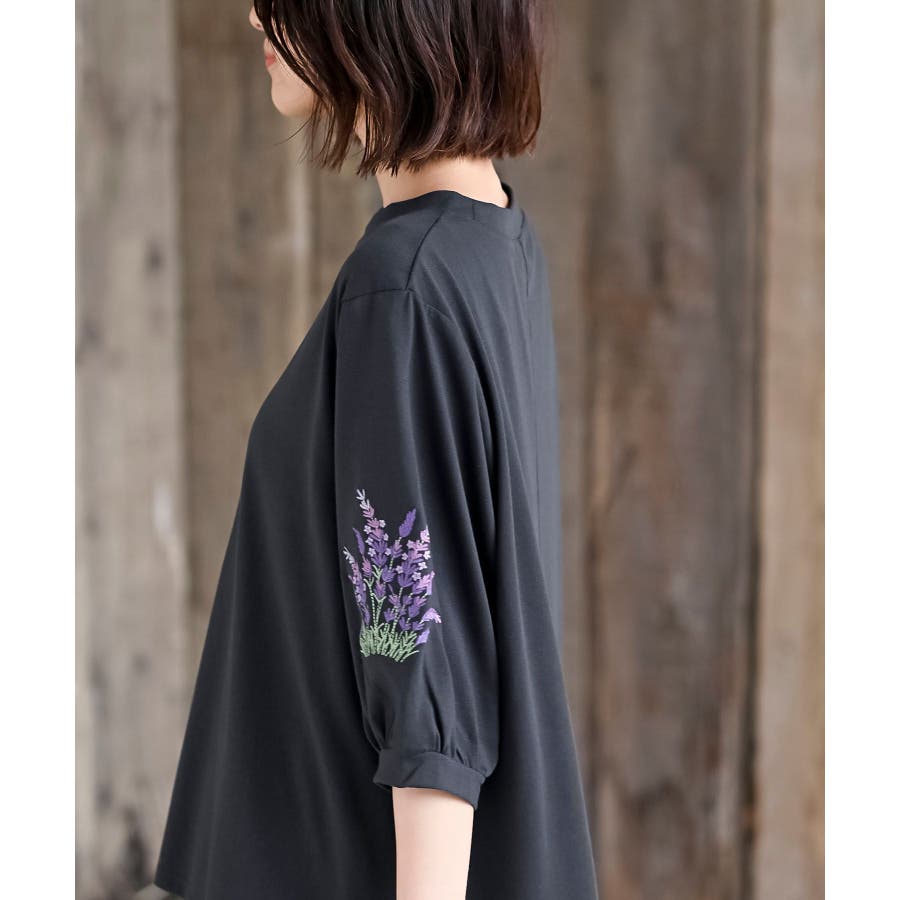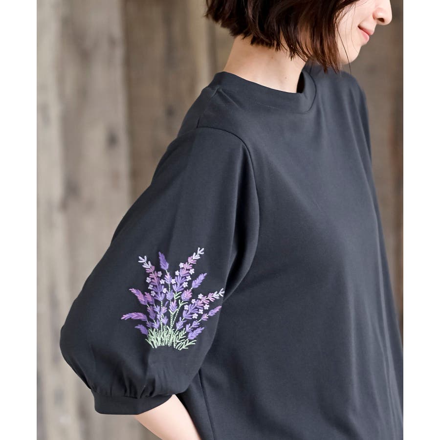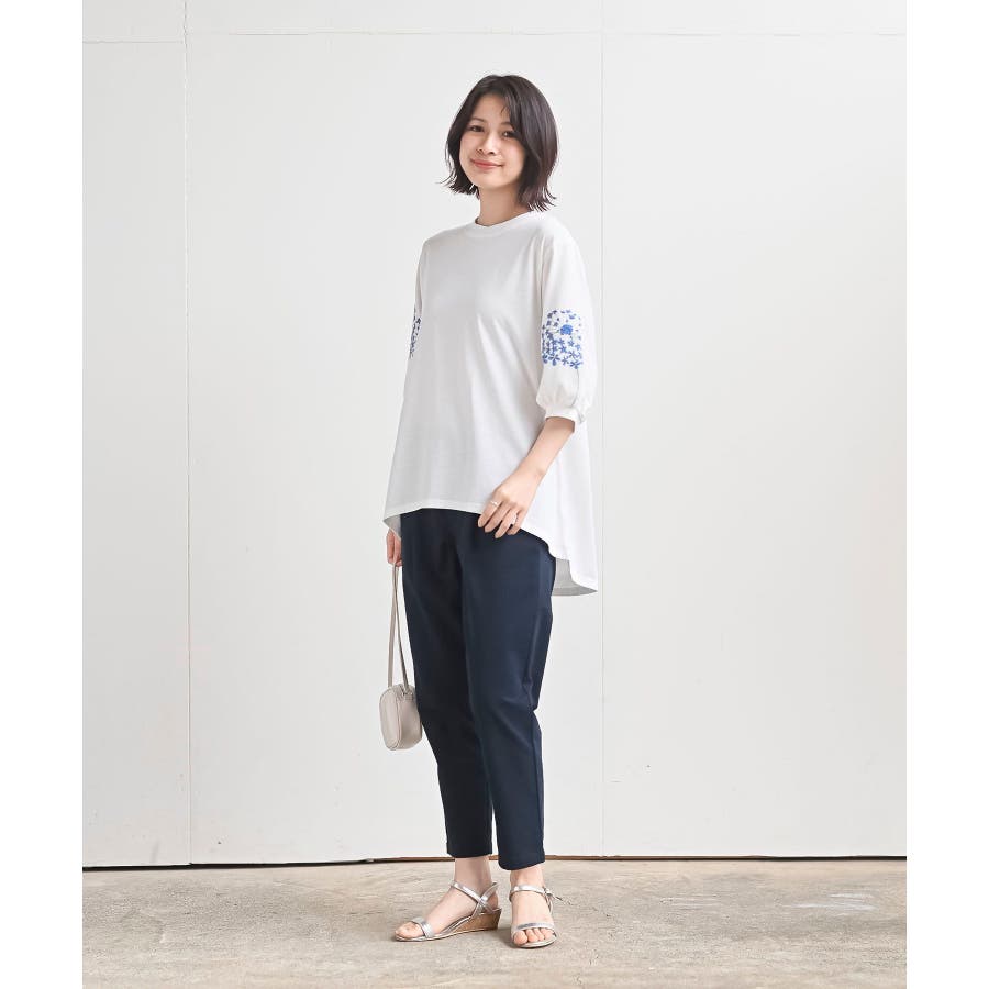 刺繍スリーブ7分袖カットプルオーバー