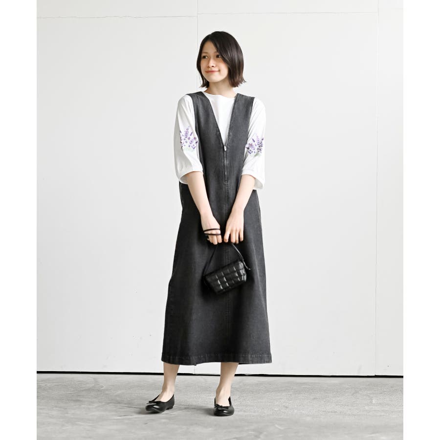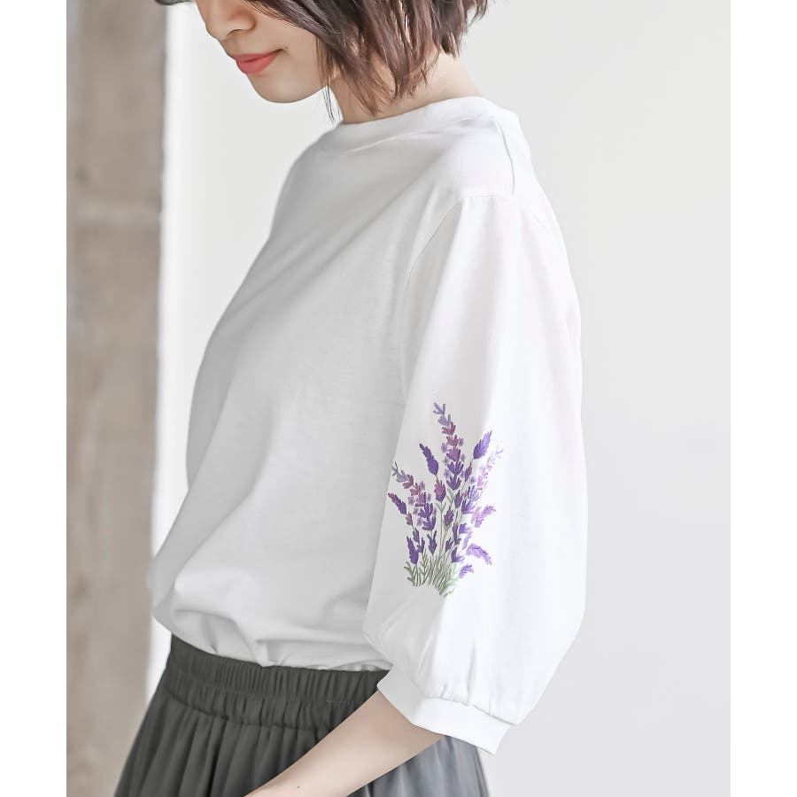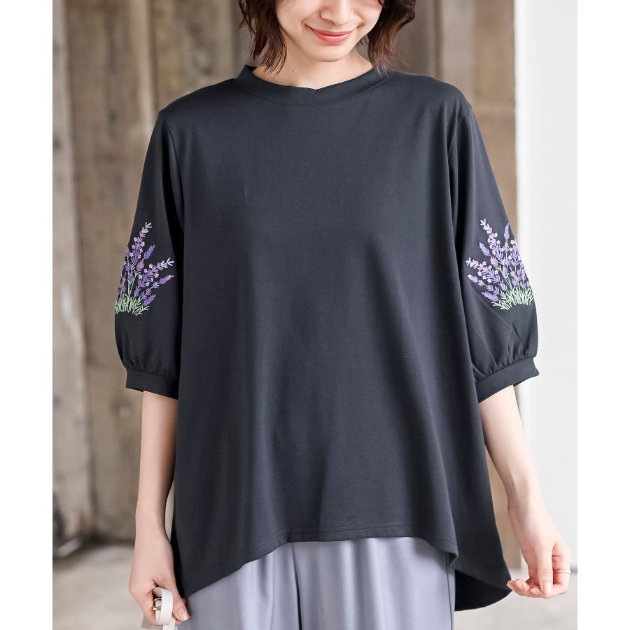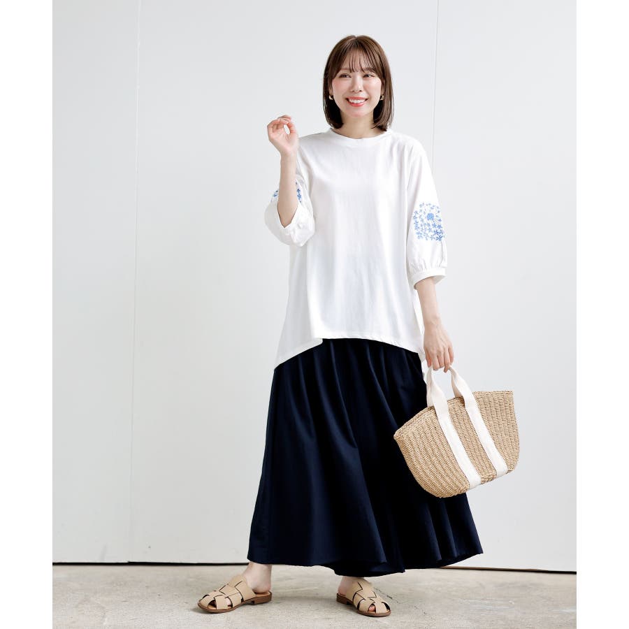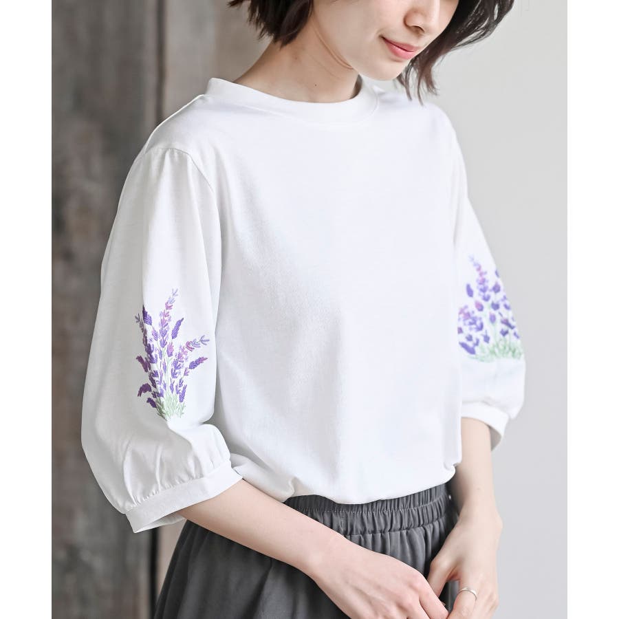 刺繍スリーブ7分袖カットプルオーバー