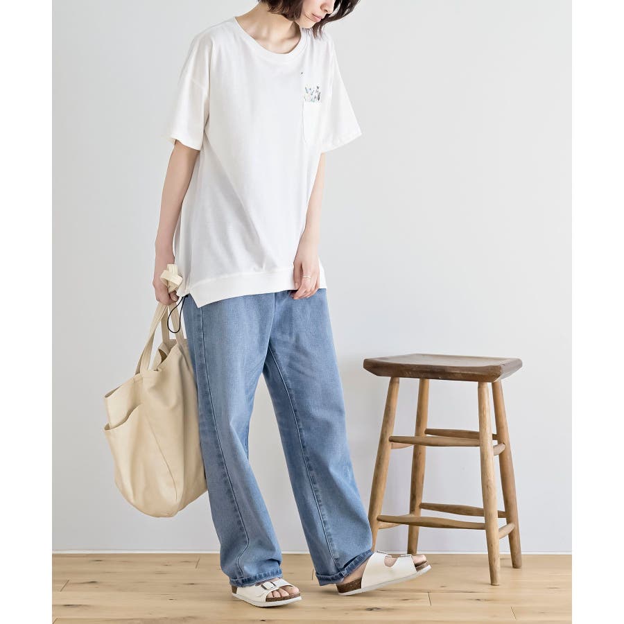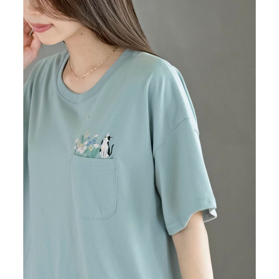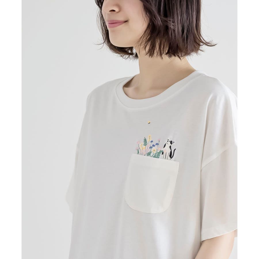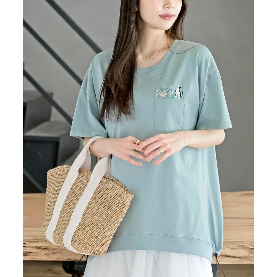 フラワーキャット裾ドロストTシャツ