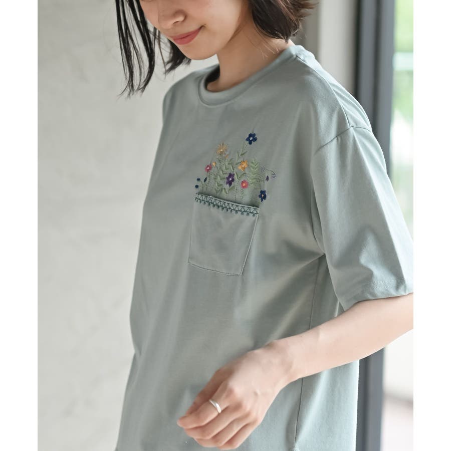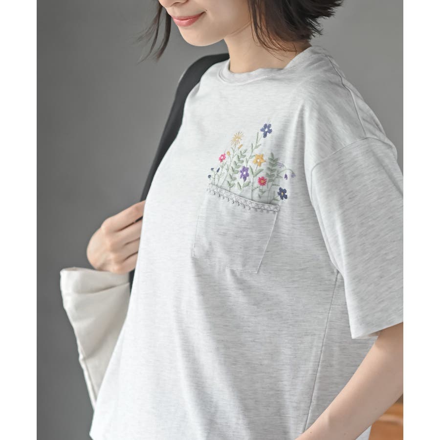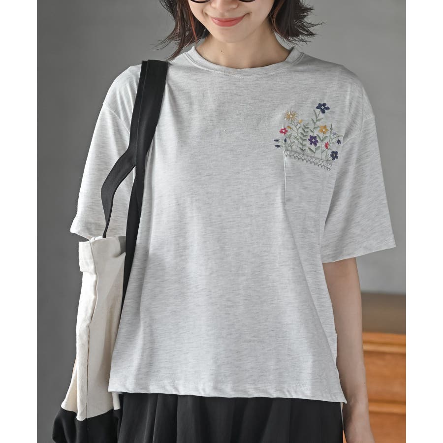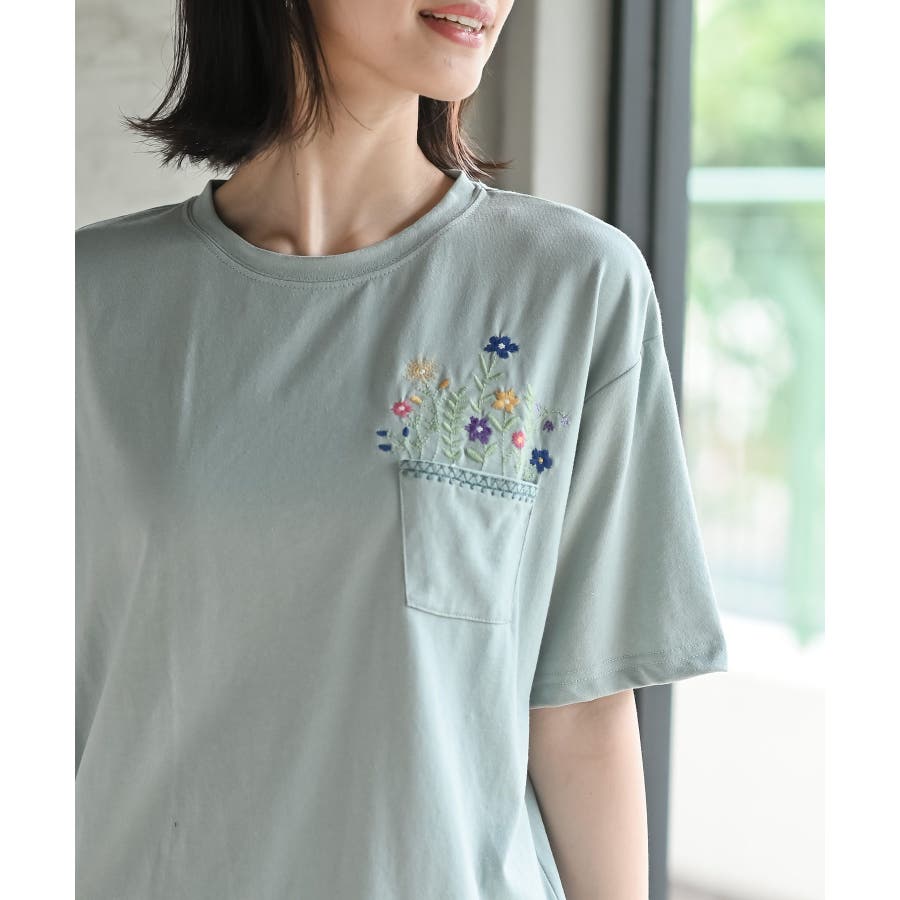フラワーポット刺繍T