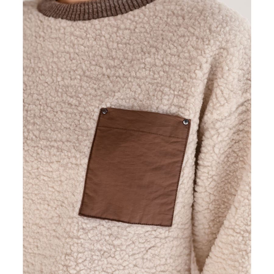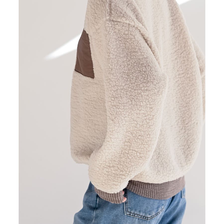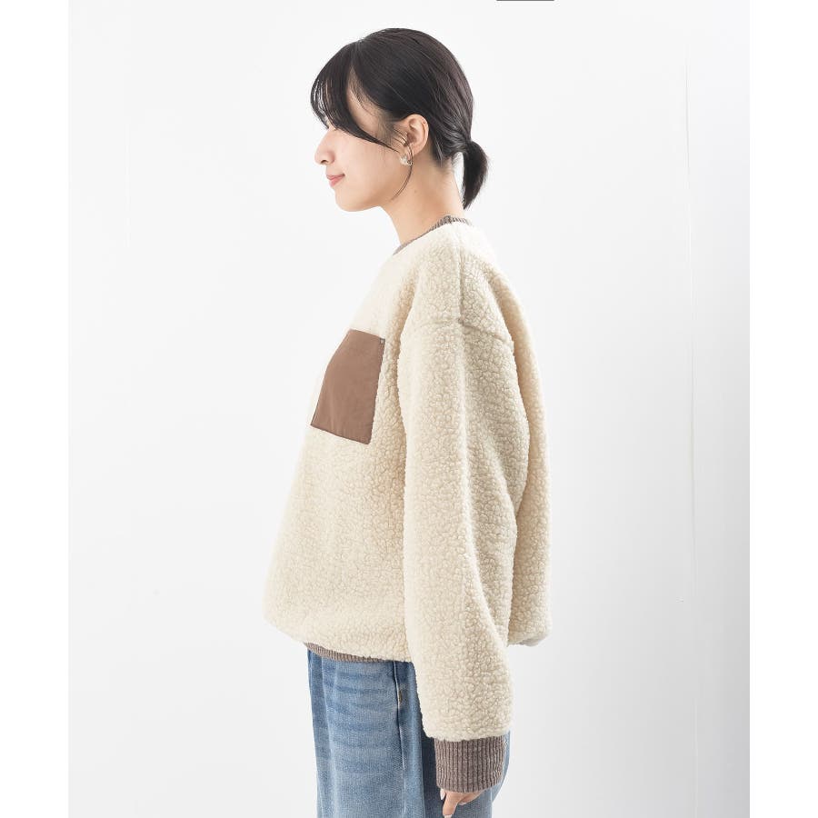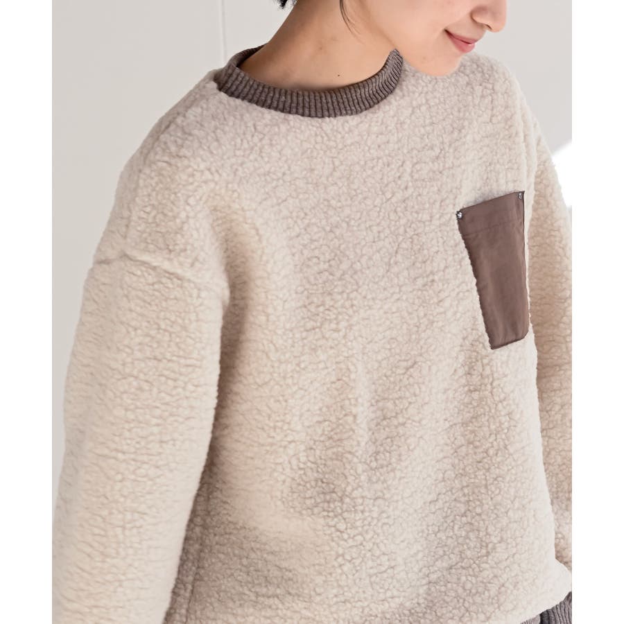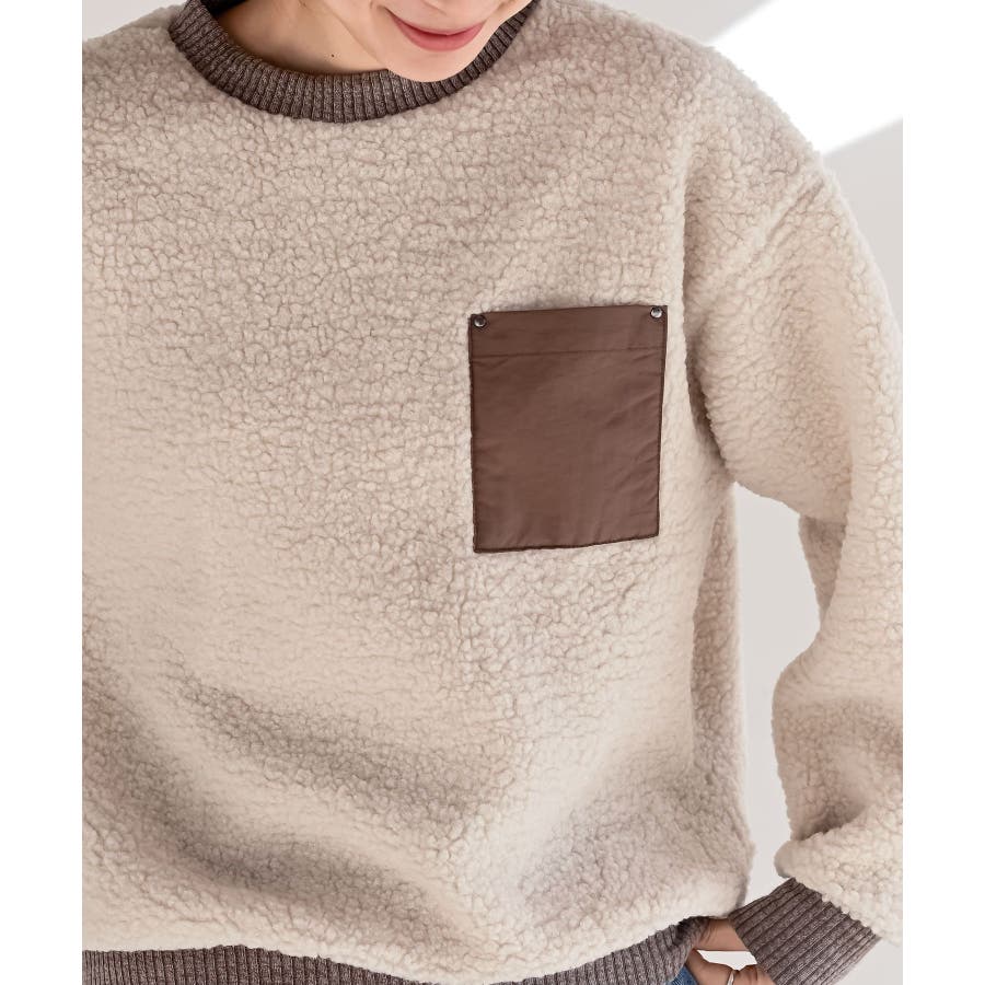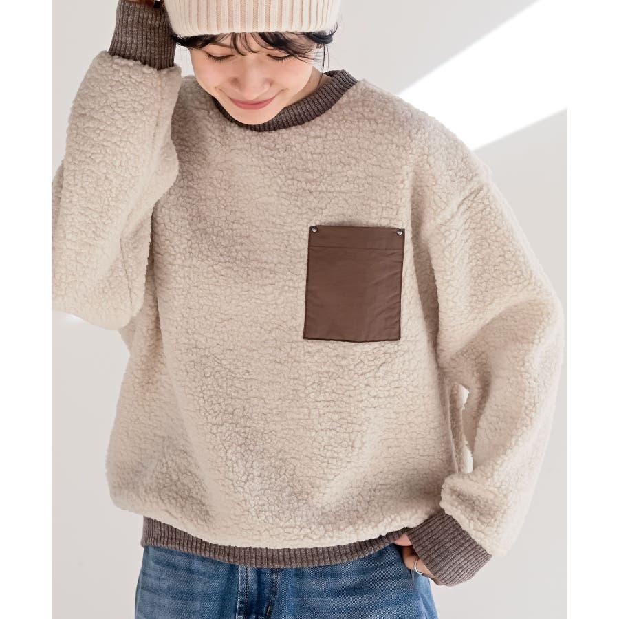 配色ポケットボアプルオーバー