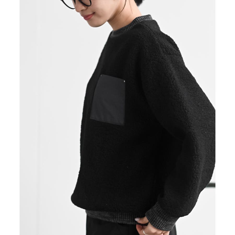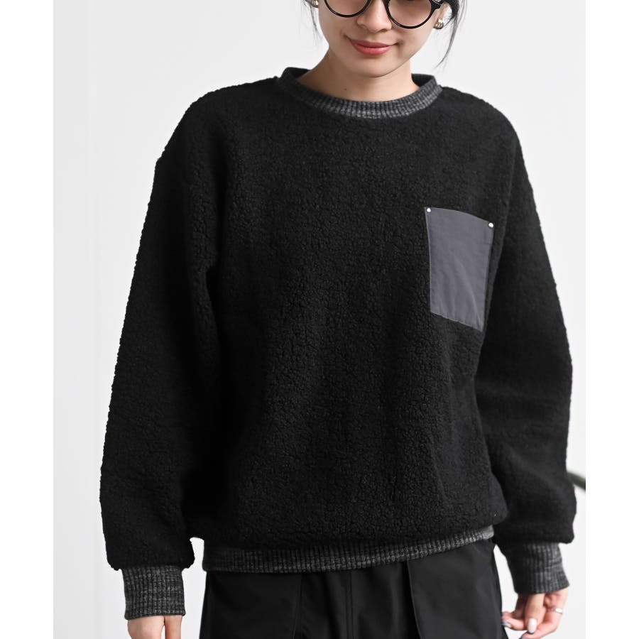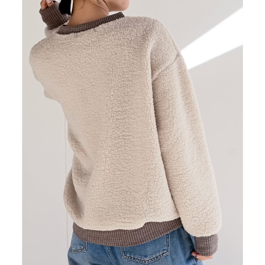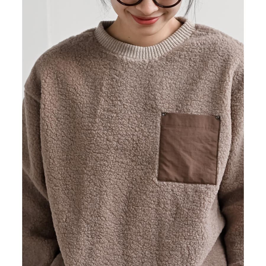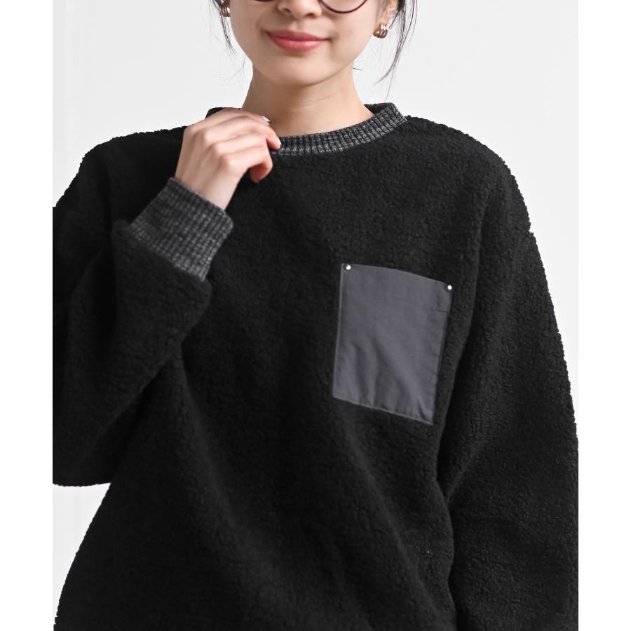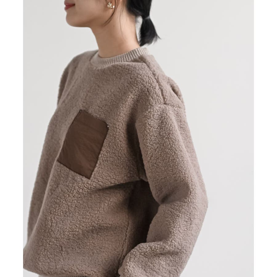配色ポケットボアプルオーバー