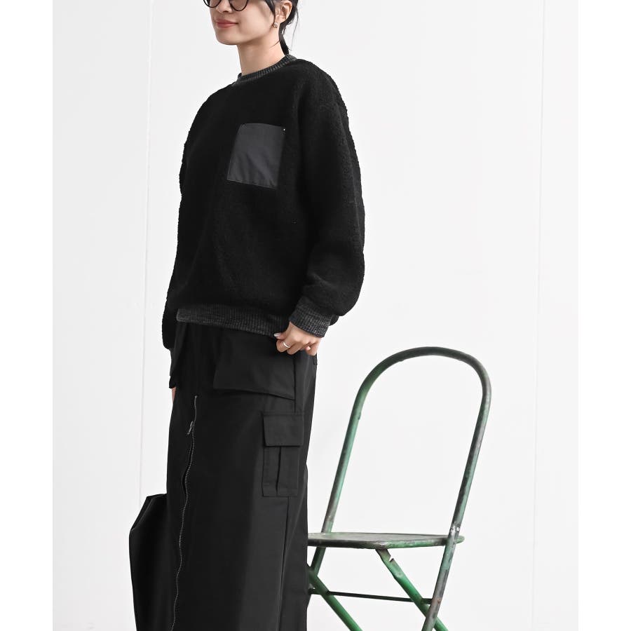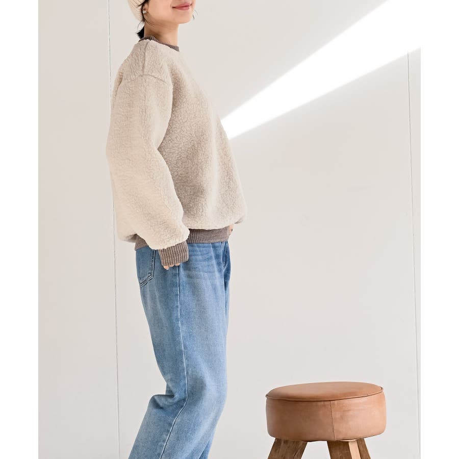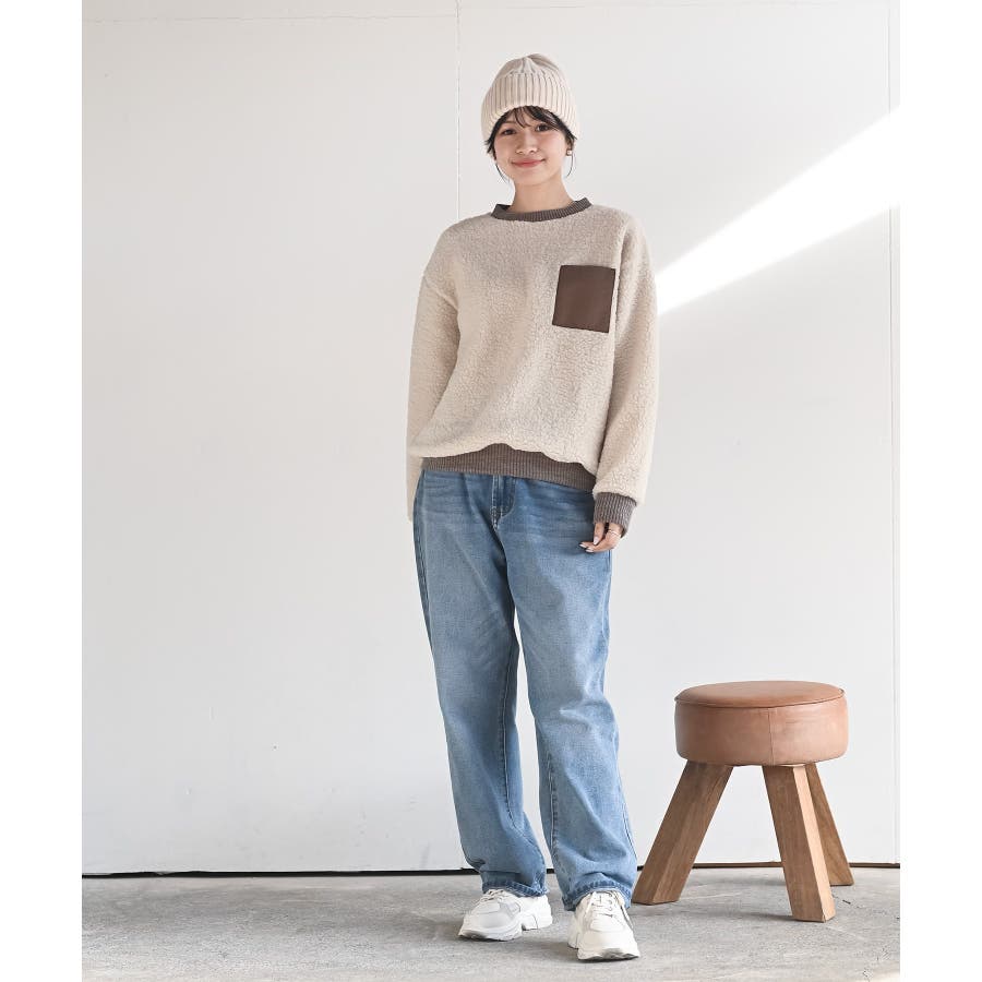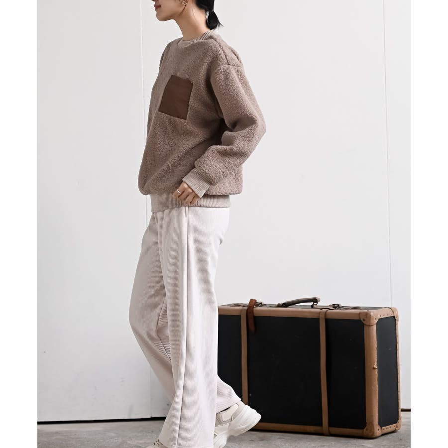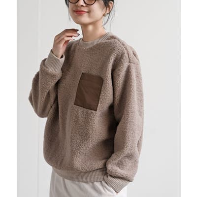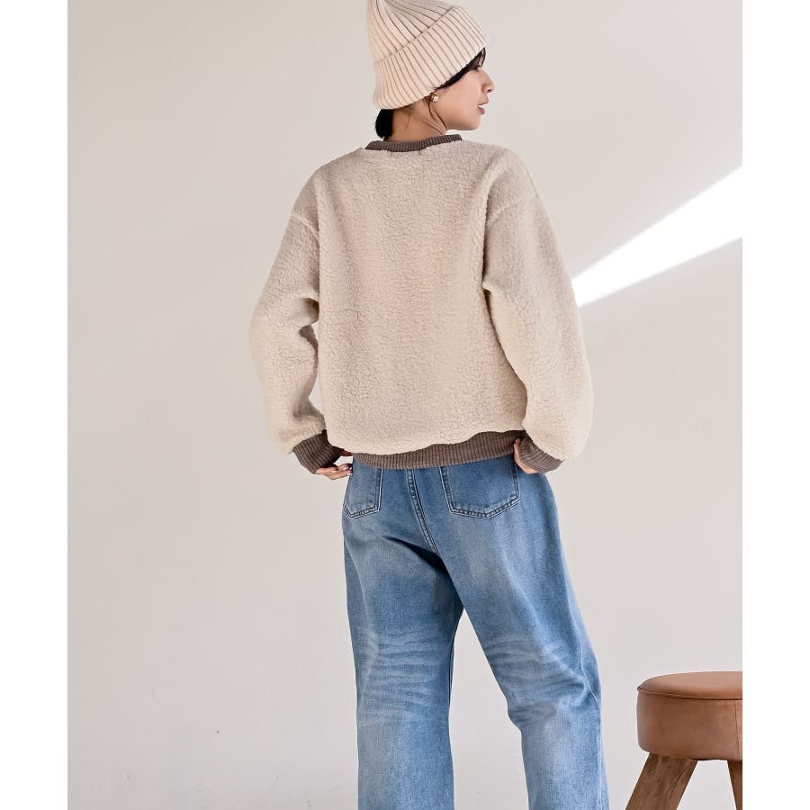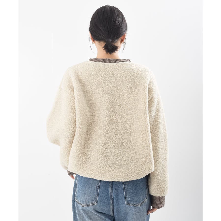 配色ポケットボアプルオーバー