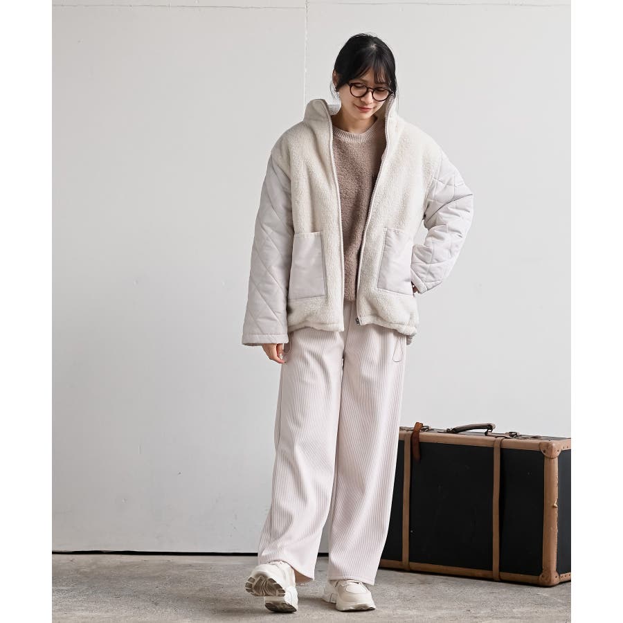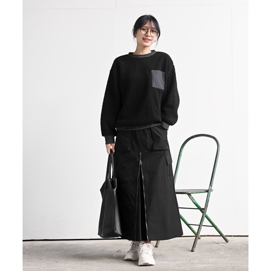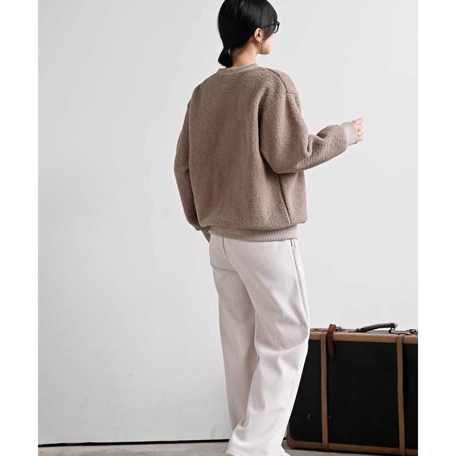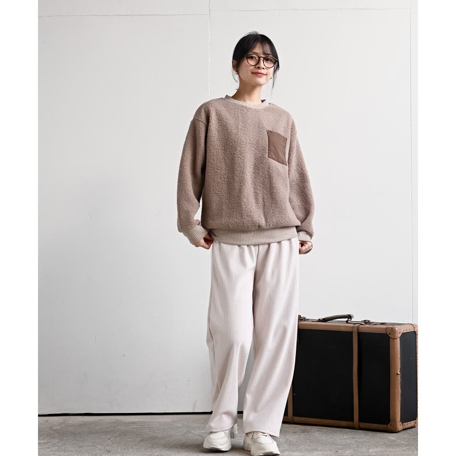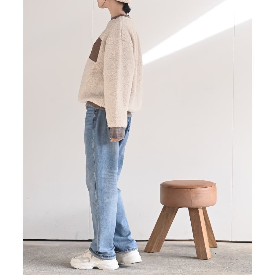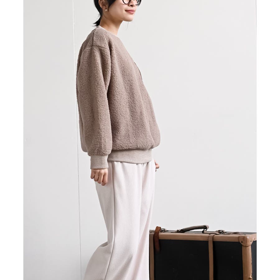 配色ポケットボアプルオーバー