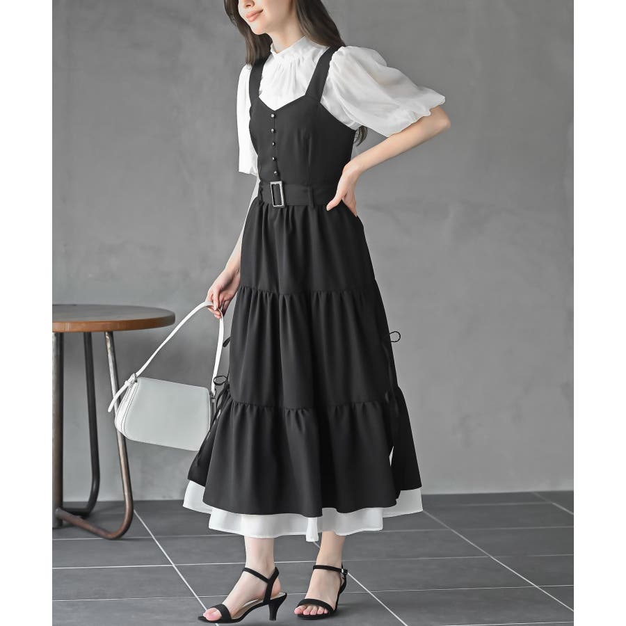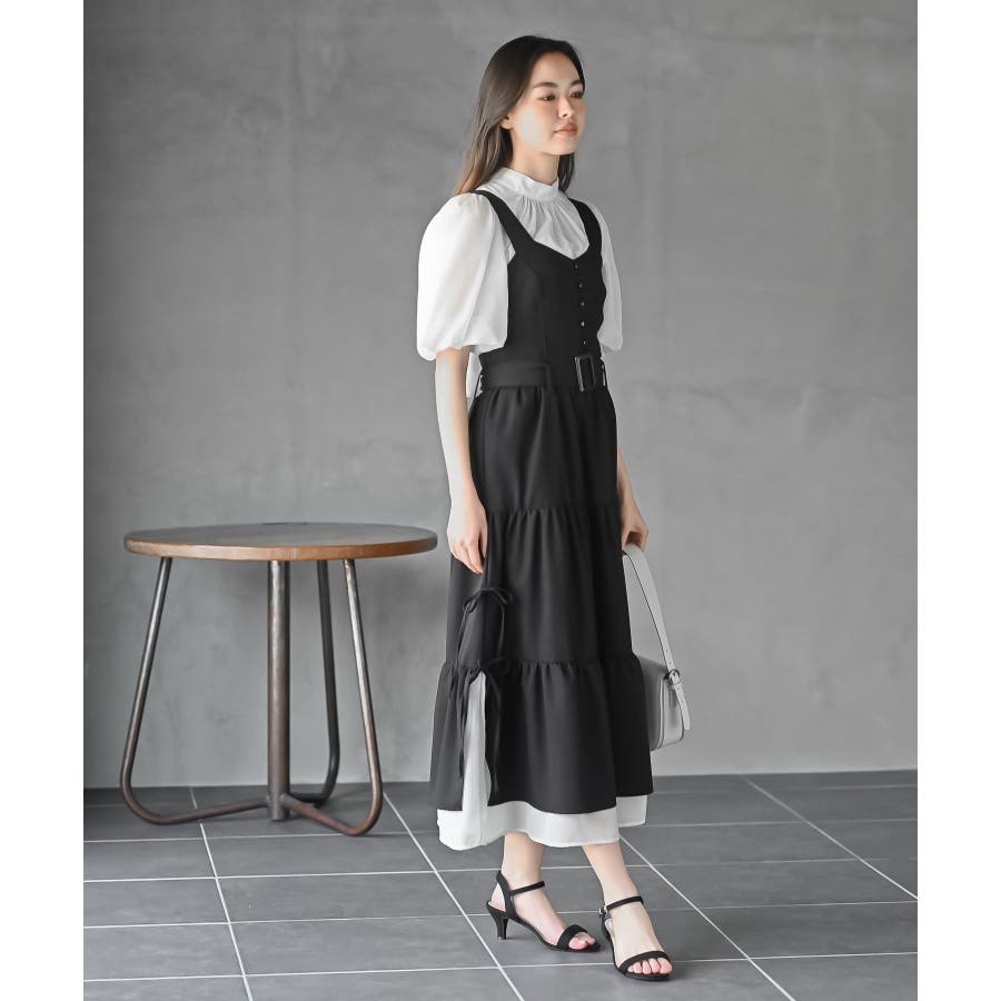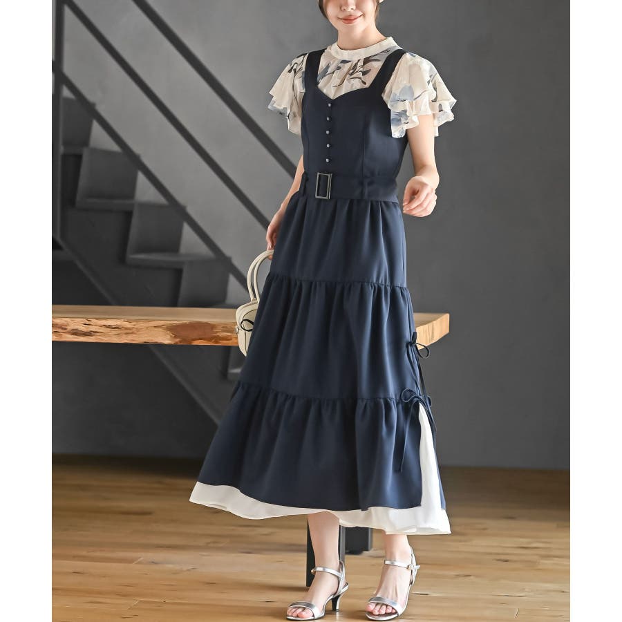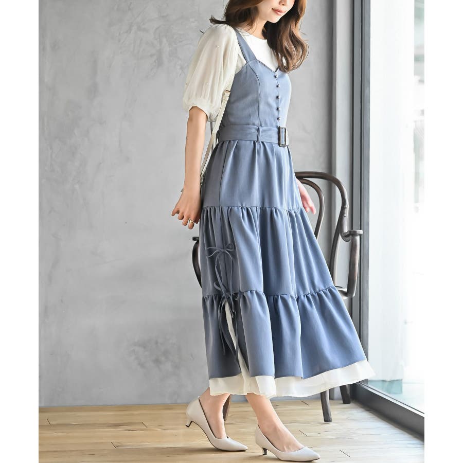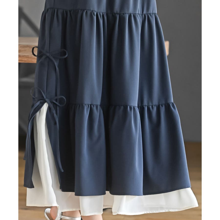 サイドリボンシフォンレイヤーティアードジャンスカ
