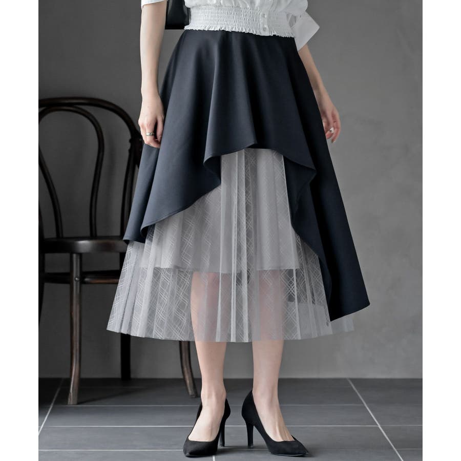 異素材切替ラッフルスカート