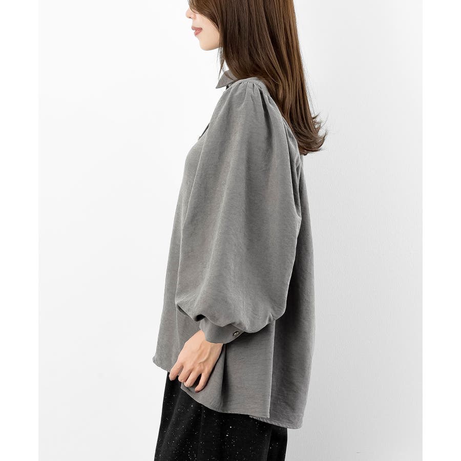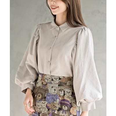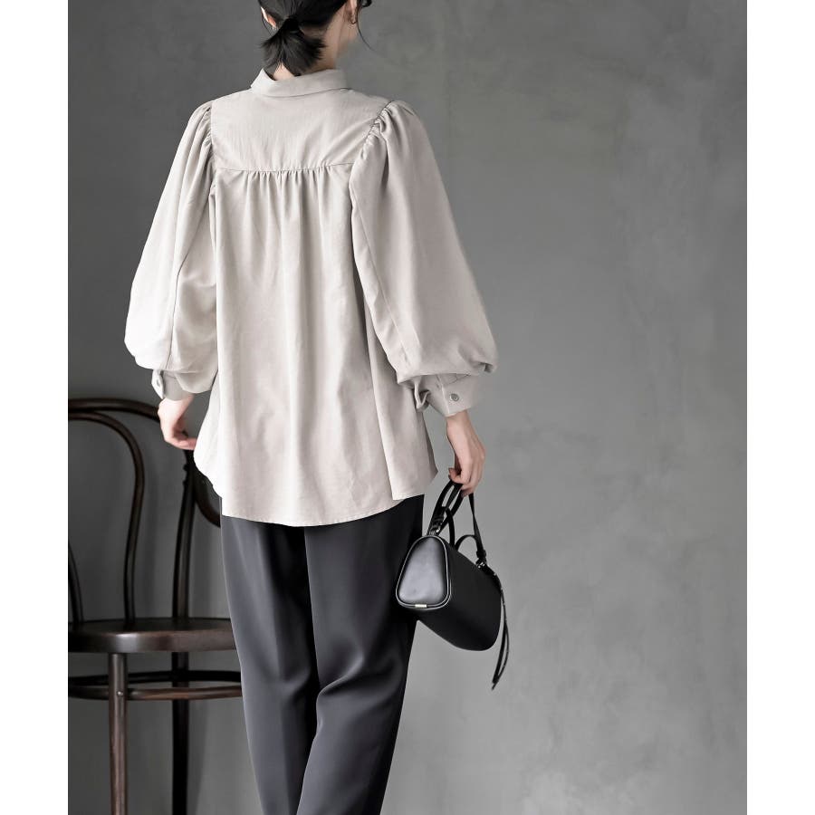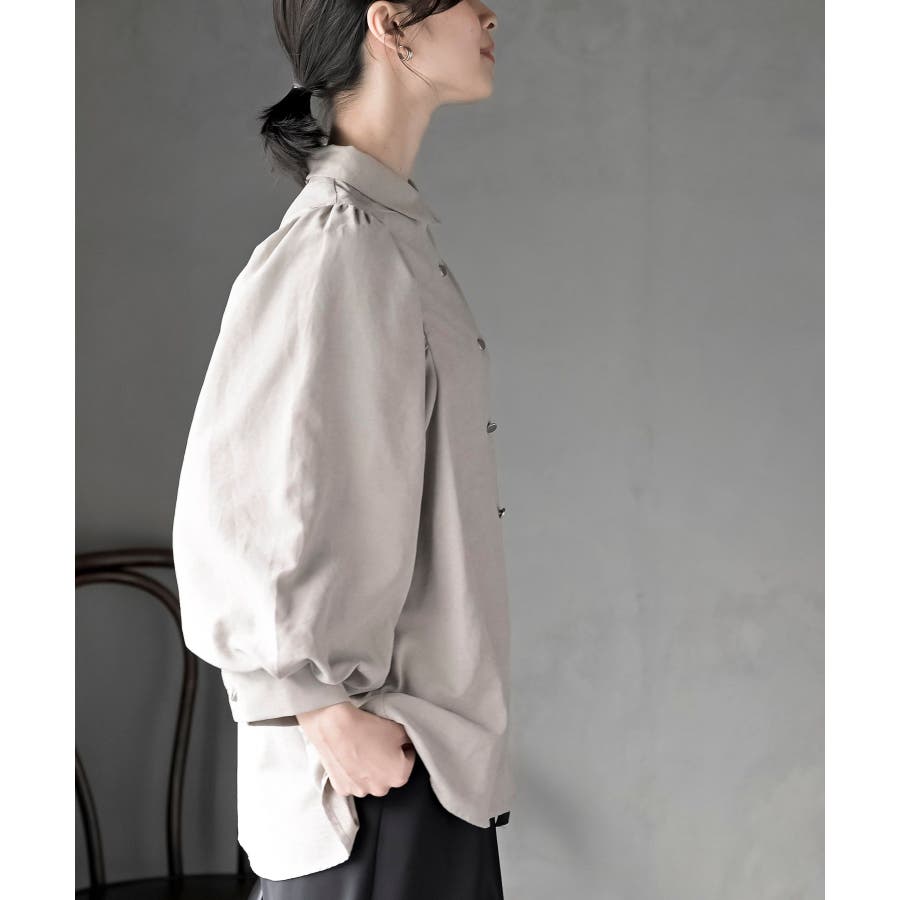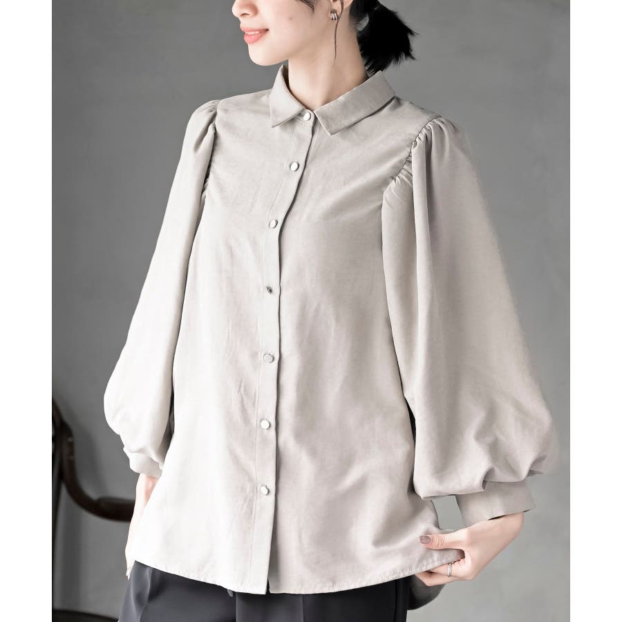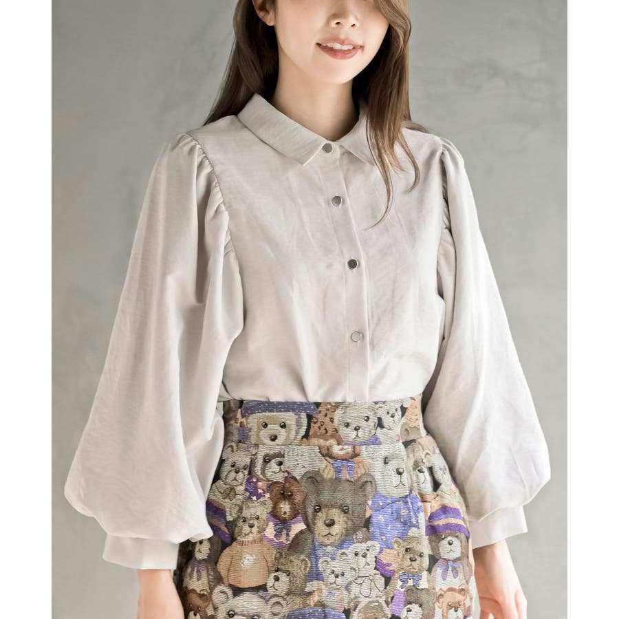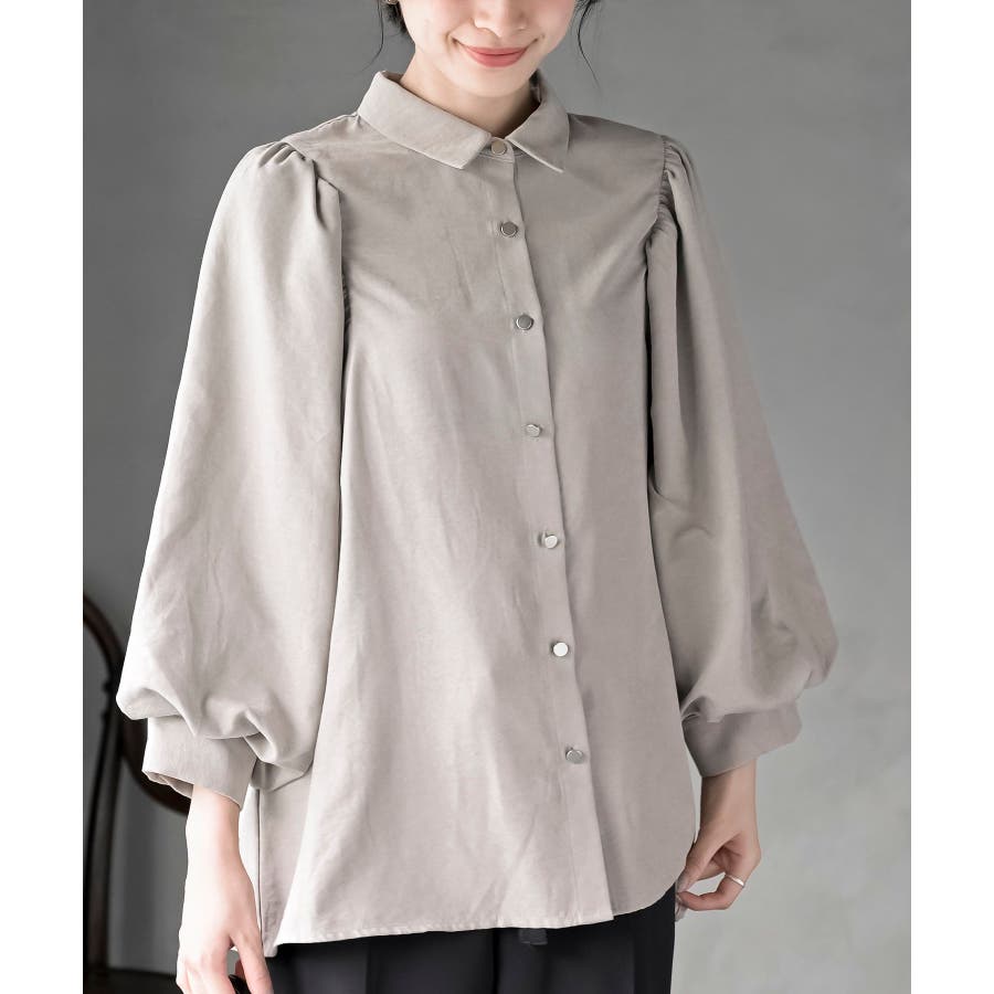 ゴールド釦ピーチ起毛ボリュームブラウス