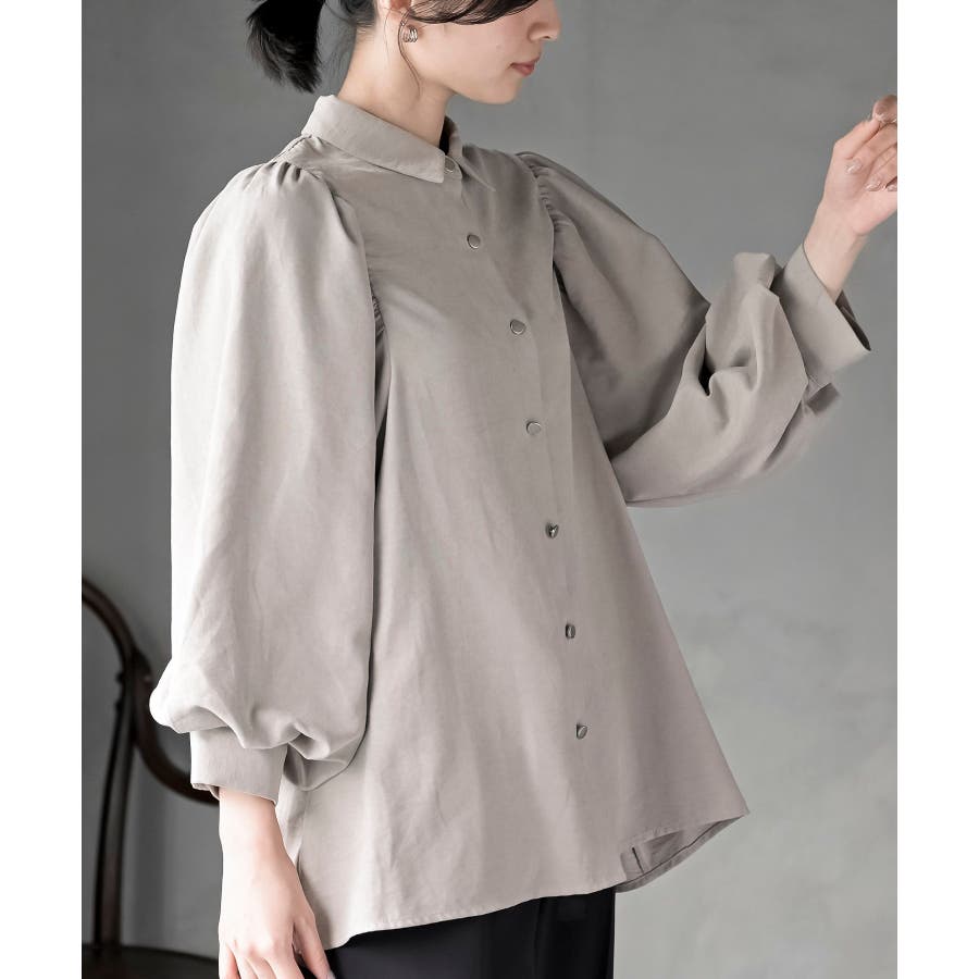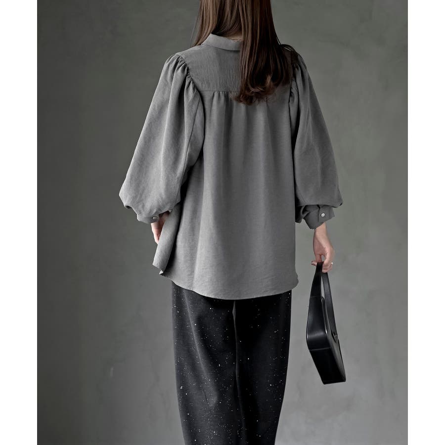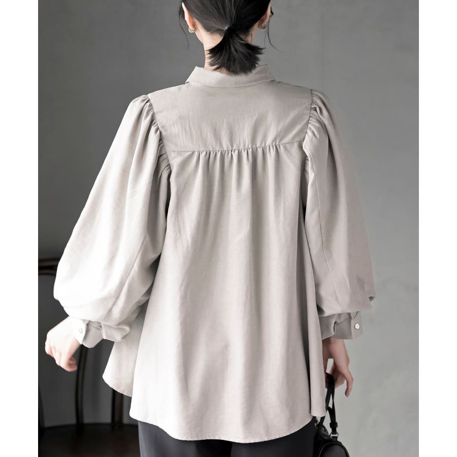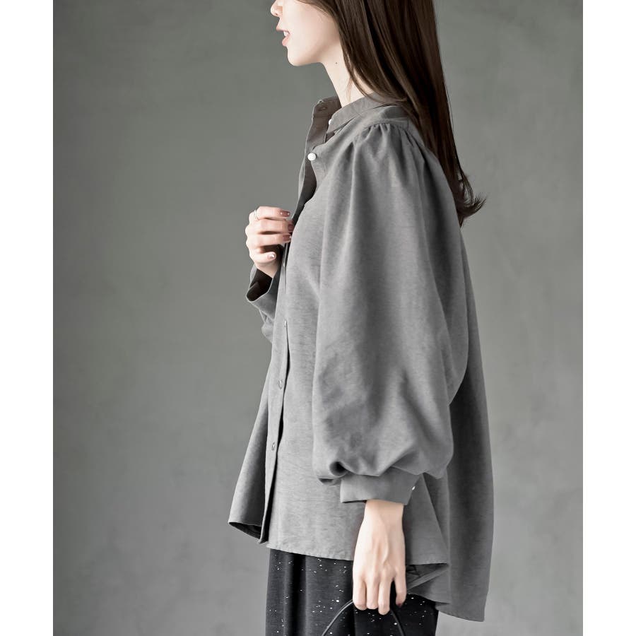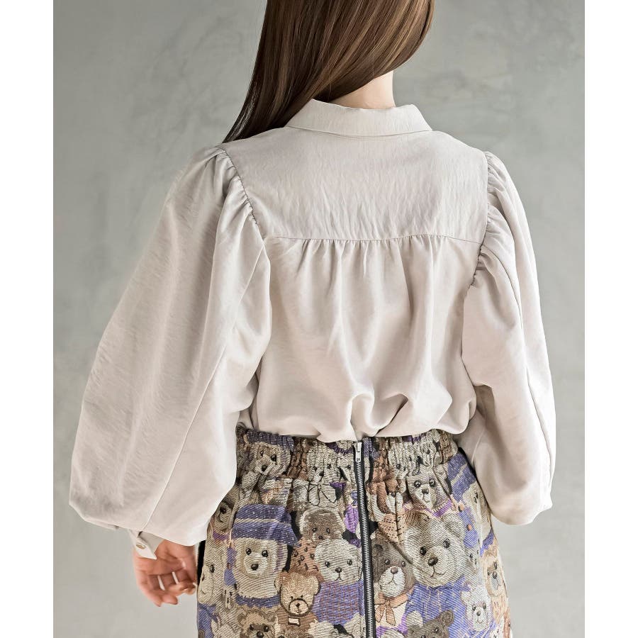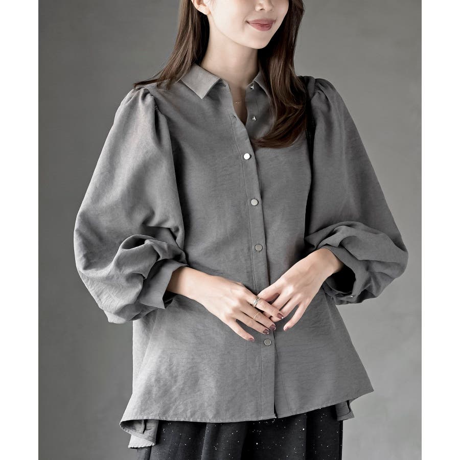 ゴールド釦ピーチ起毛ボリュームブラウス