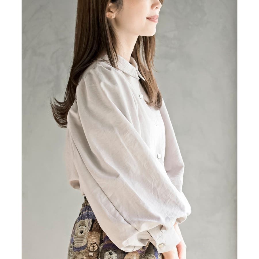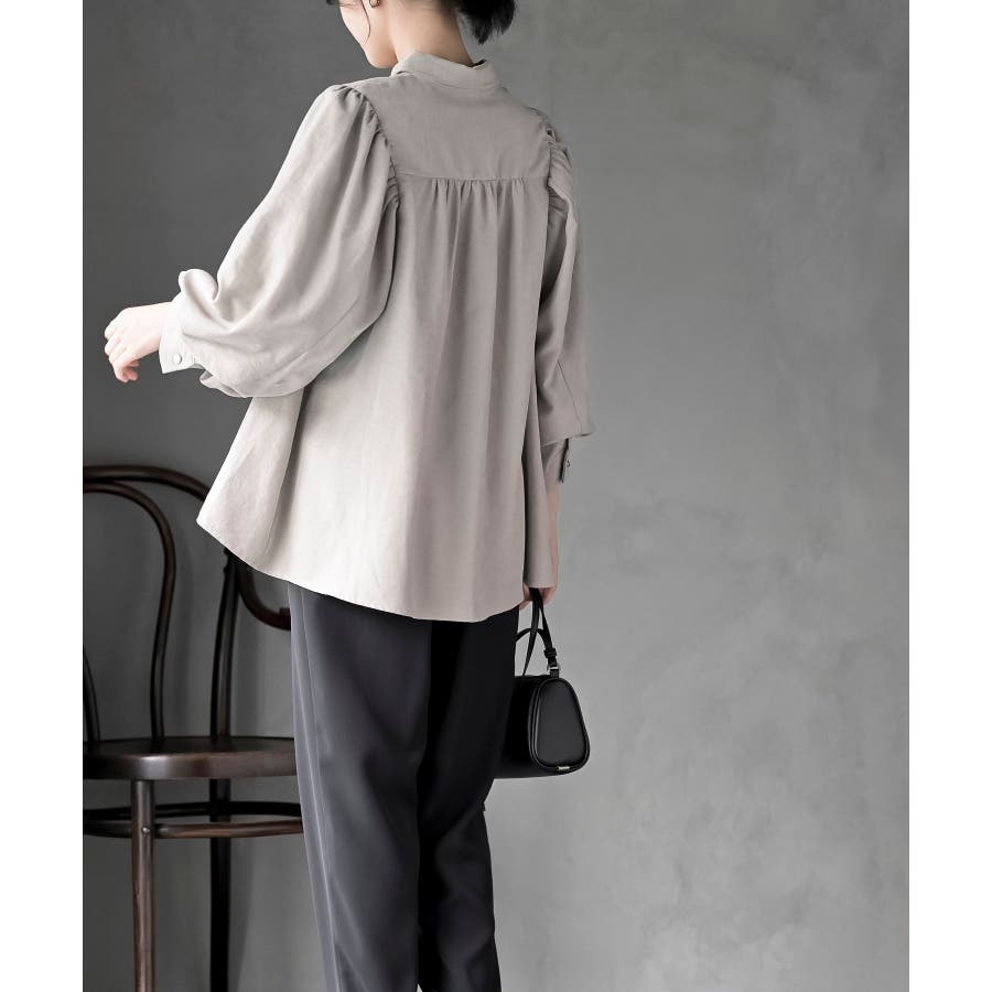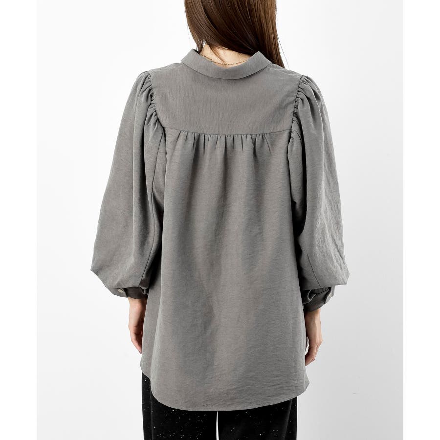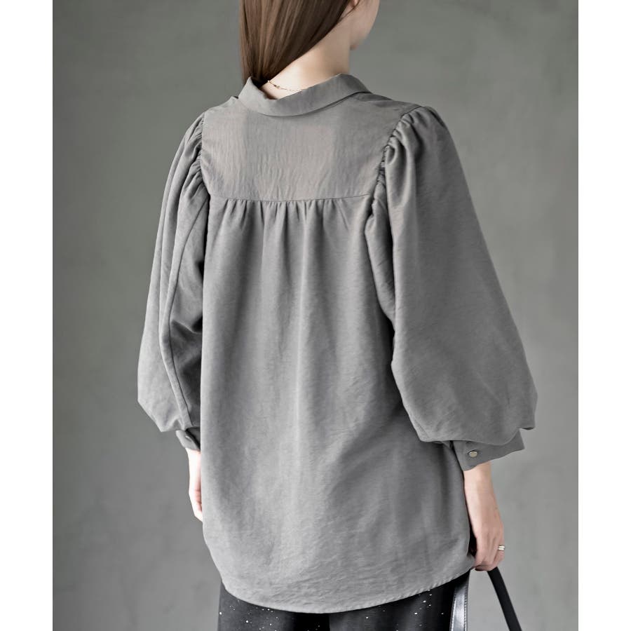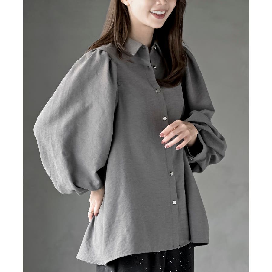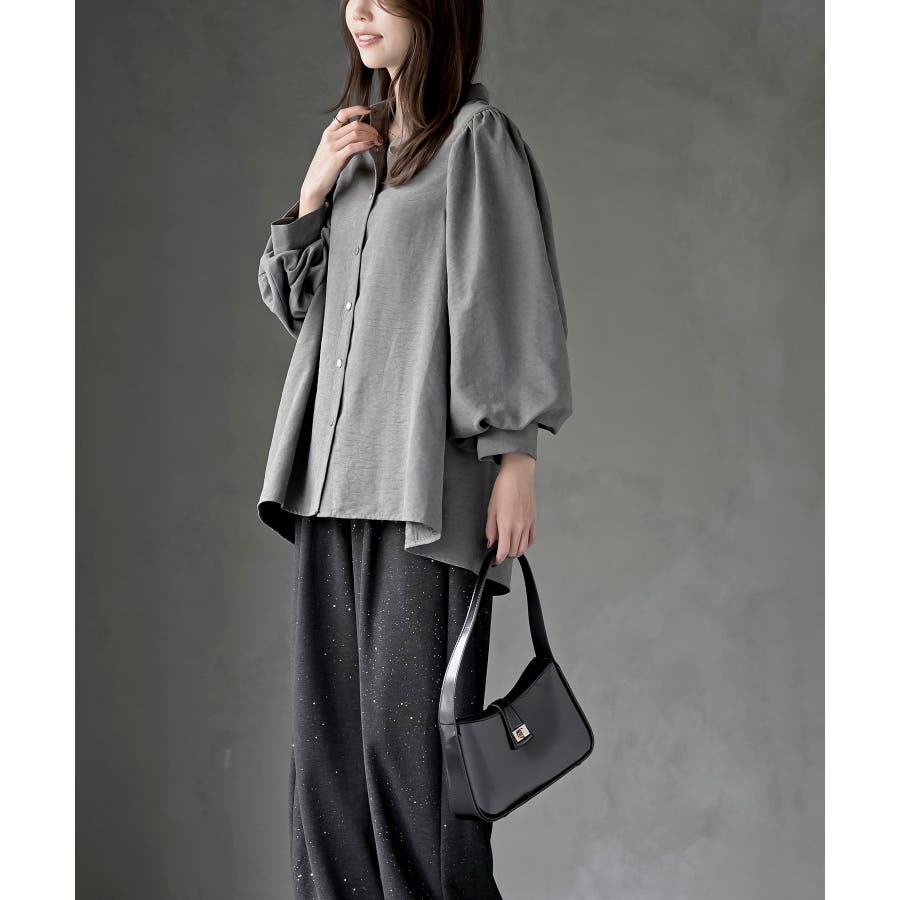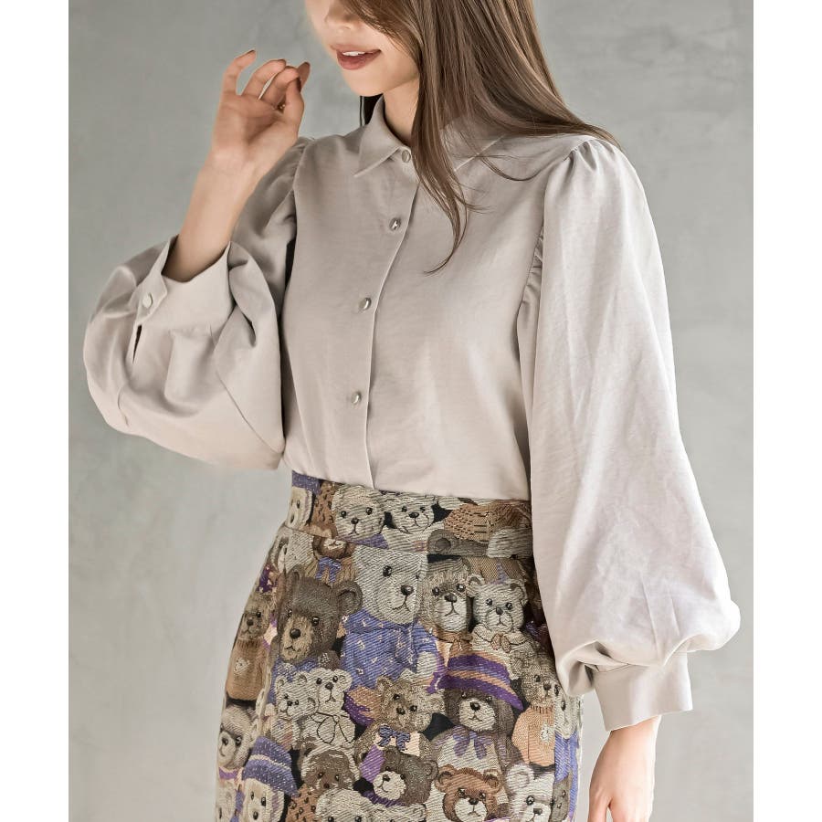 ゴールド釦ピーチ起毛ボリュームブラウス