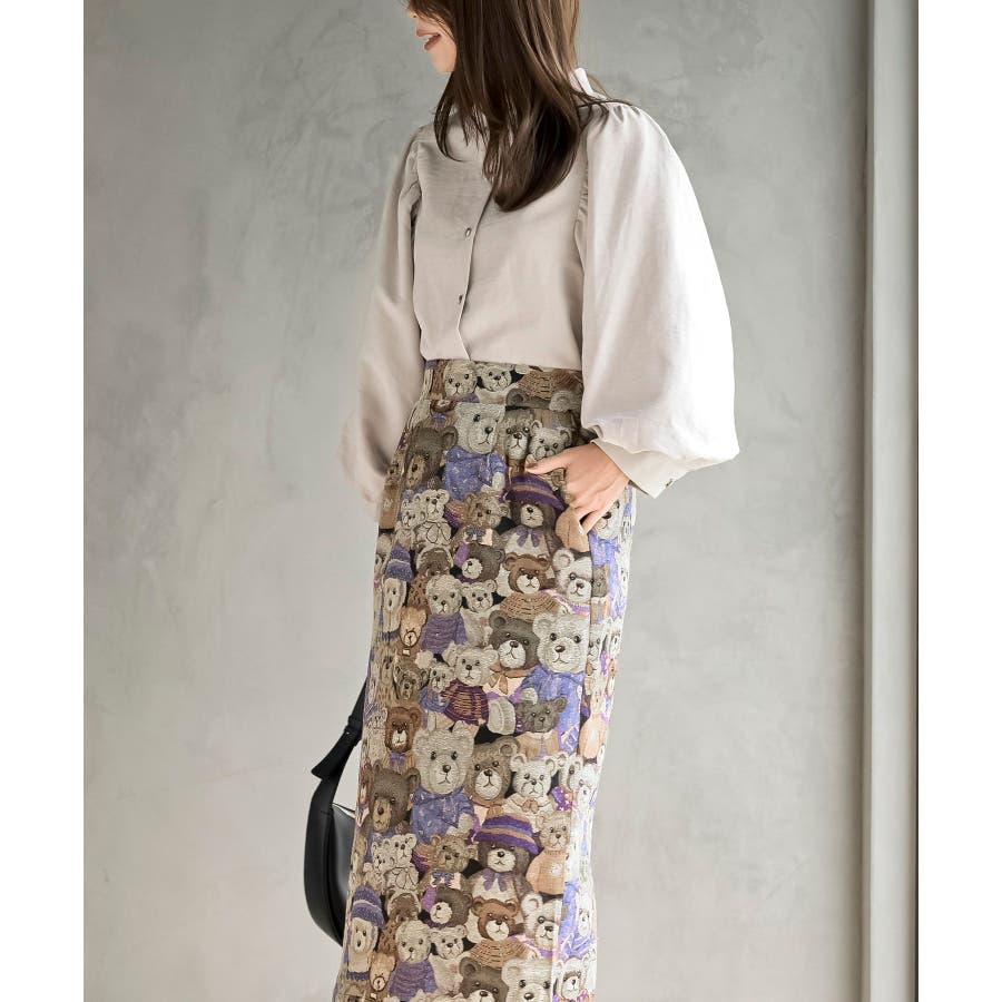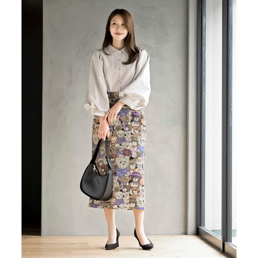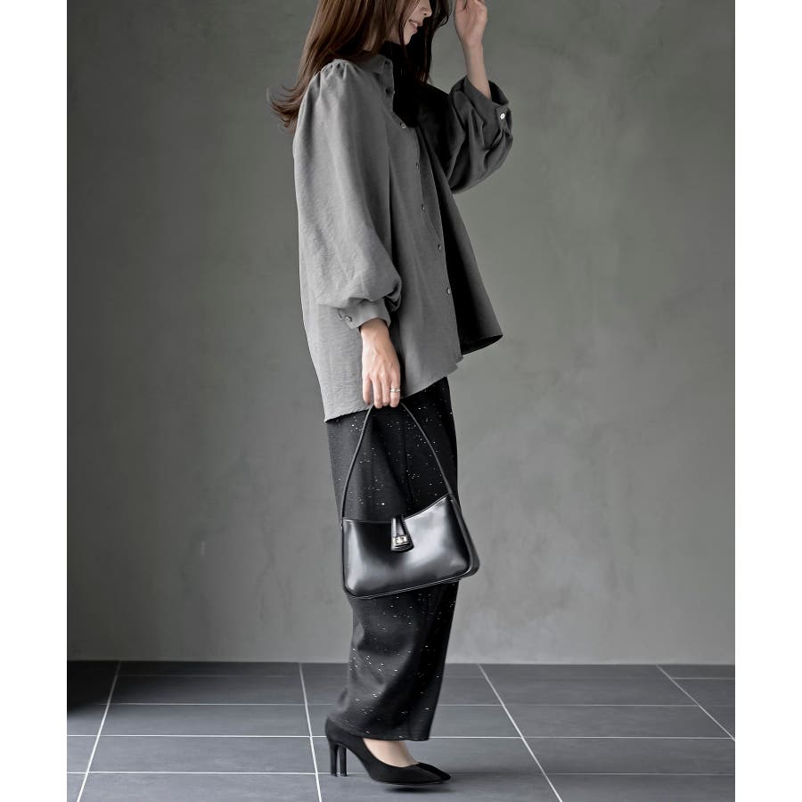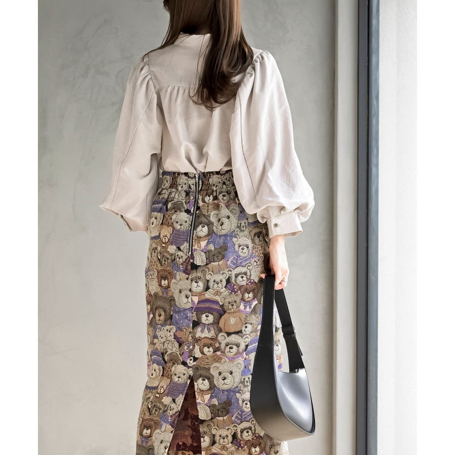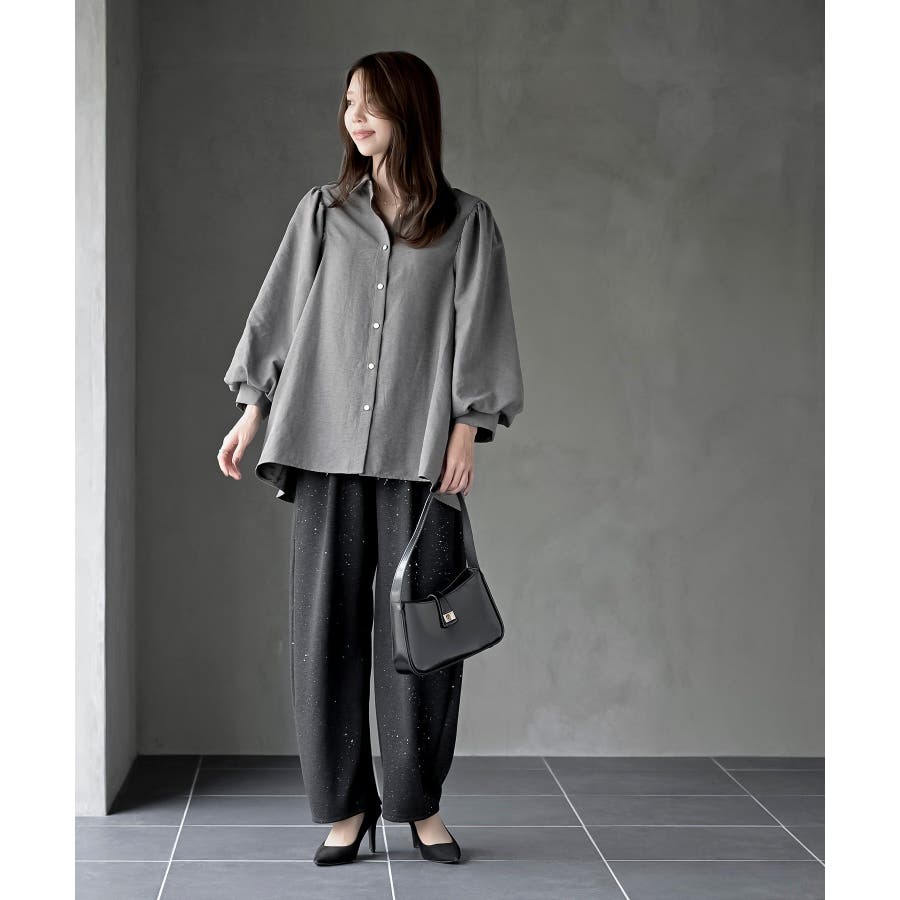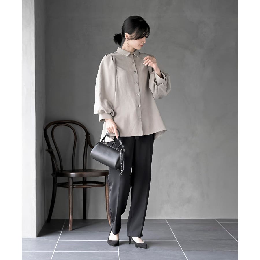 ゴールド釦ピーチ起毛ボリュームブラウス