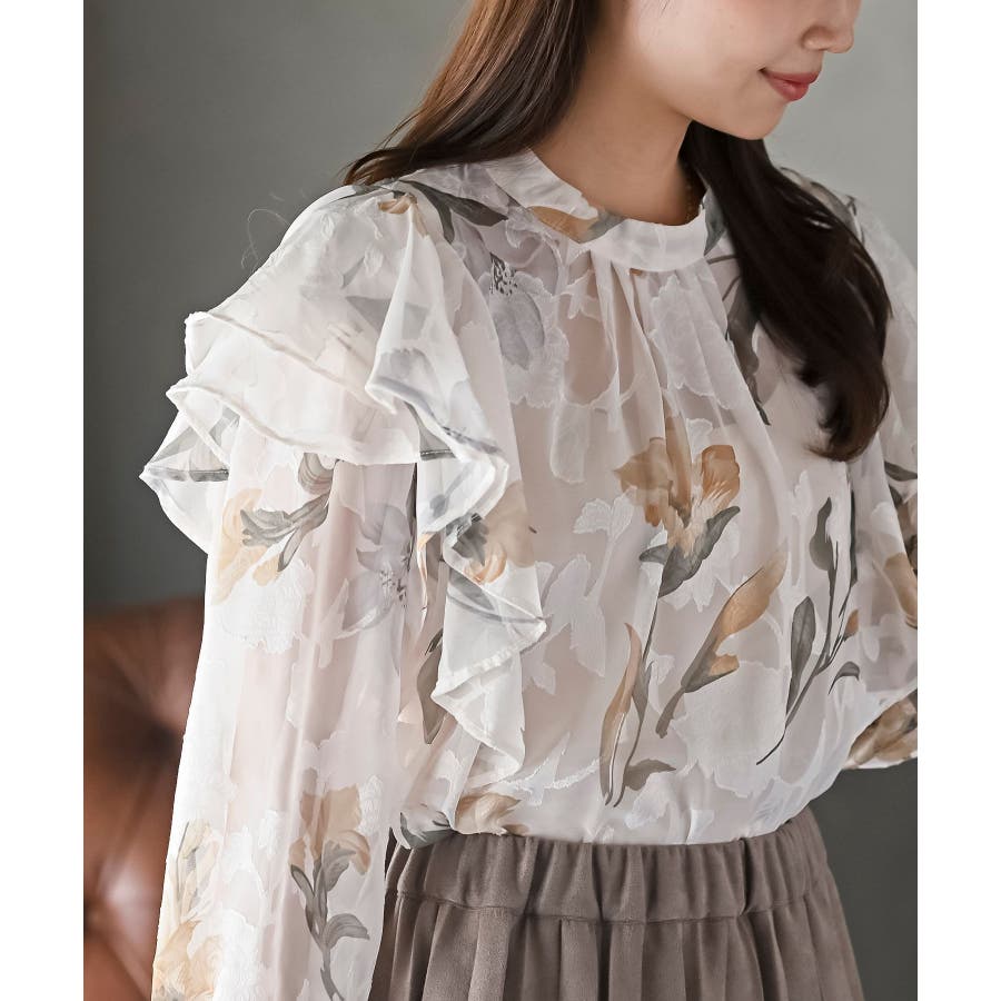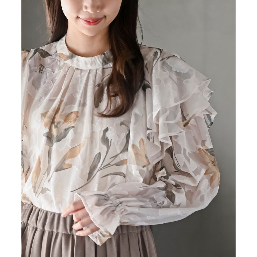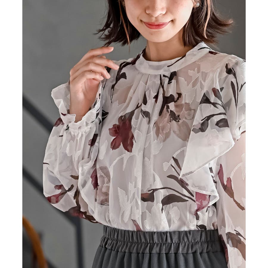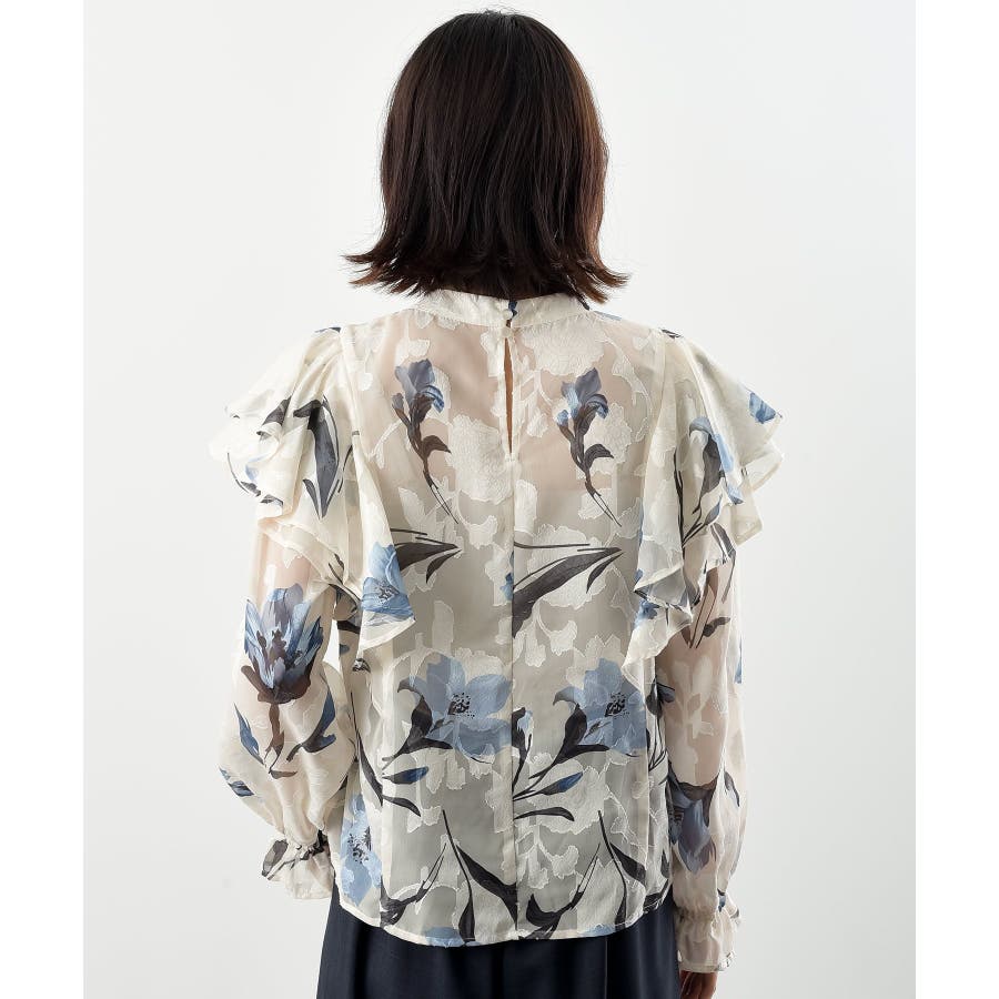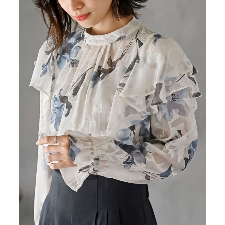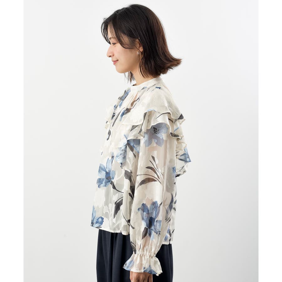 ジャガード花柄フリルブラウス