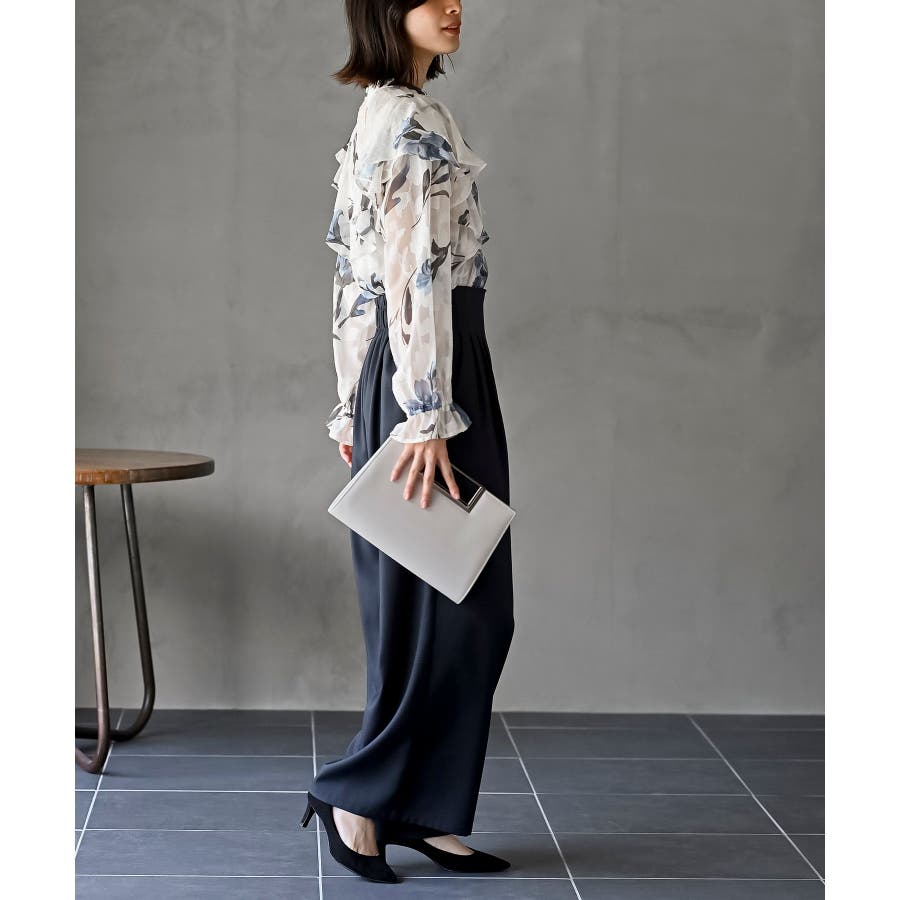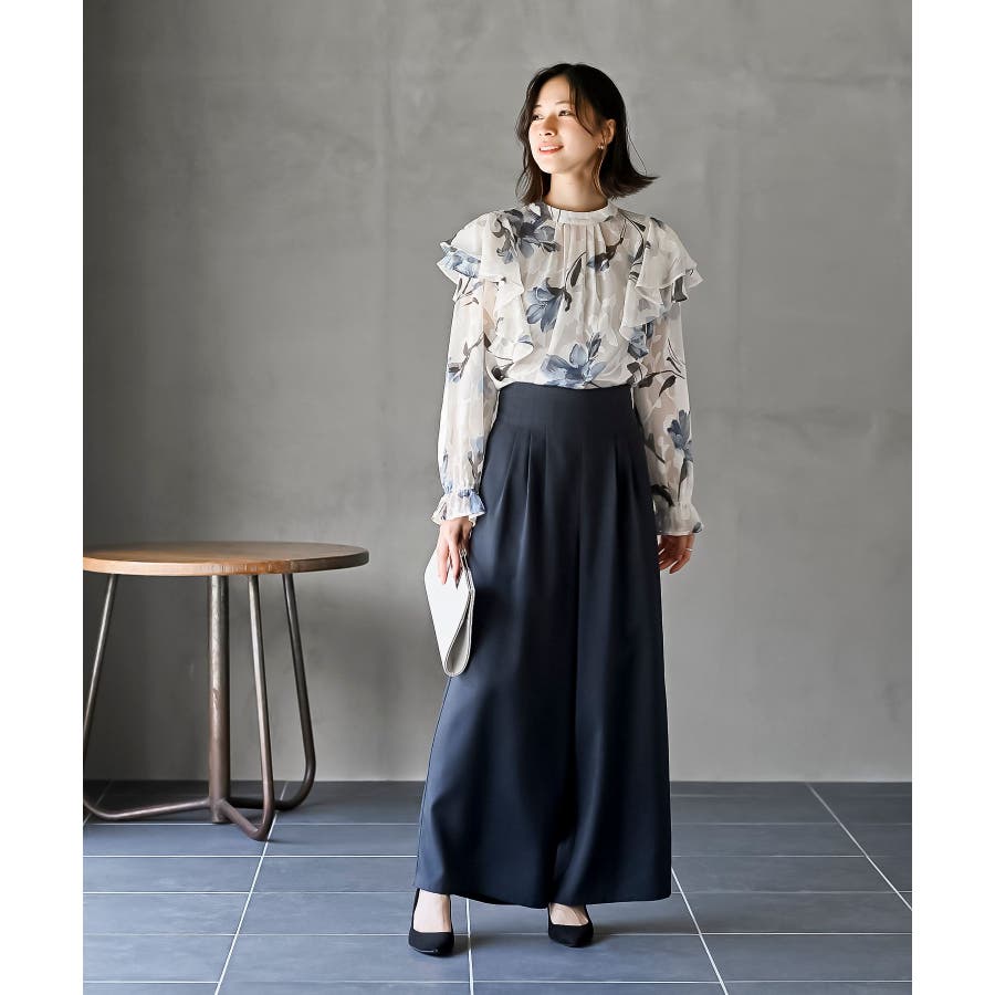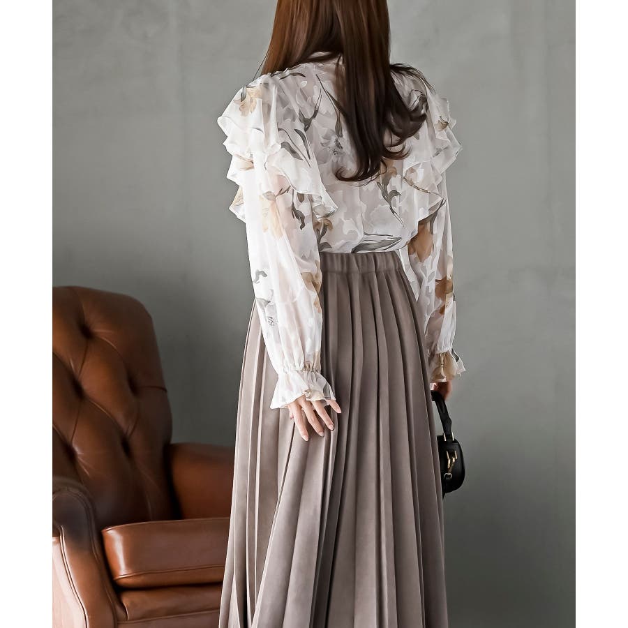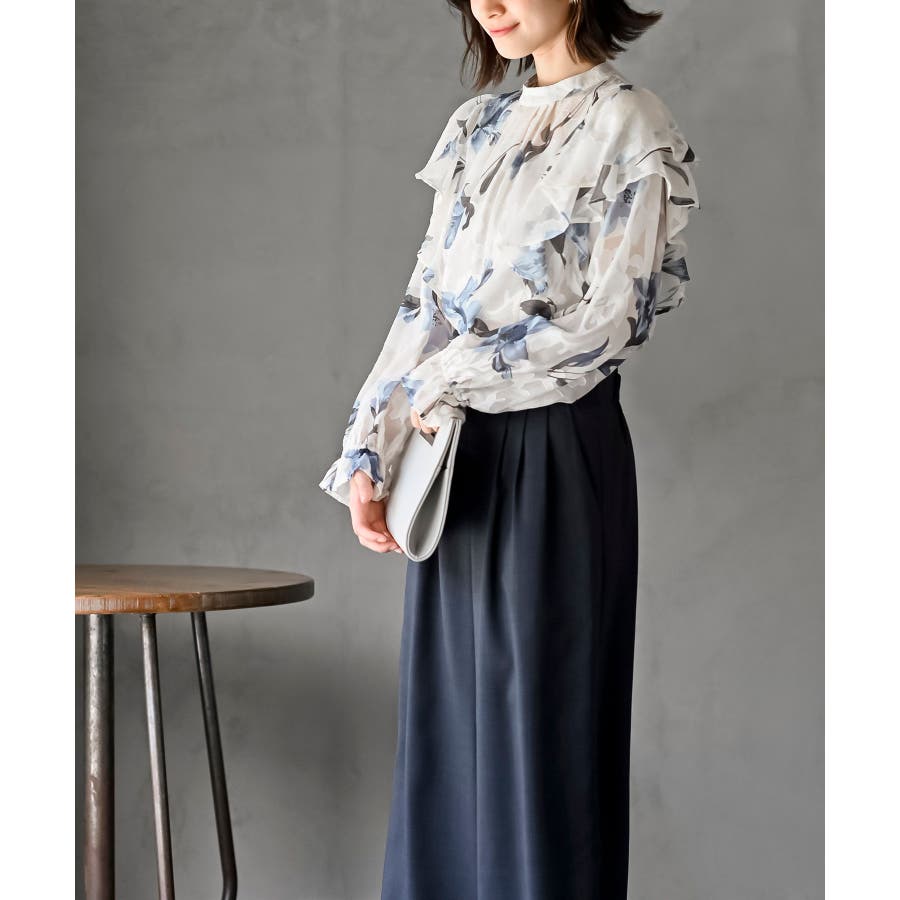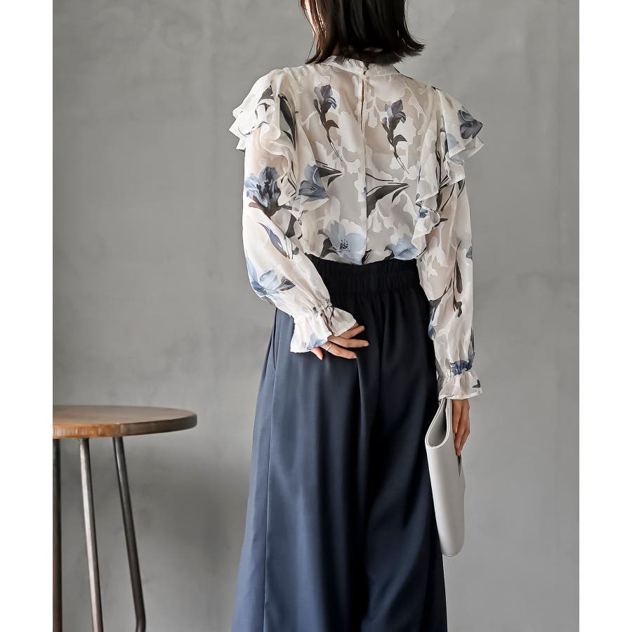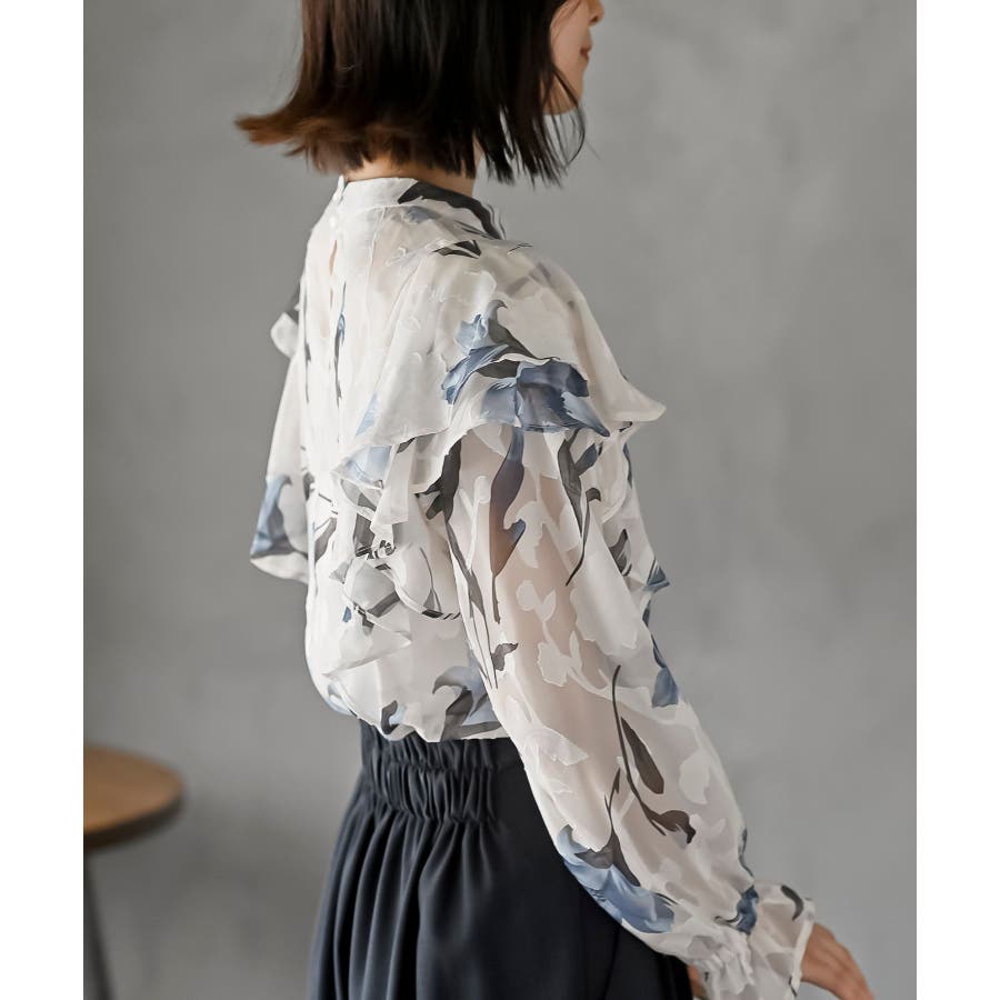 ジャガード花柄フリルブラウス