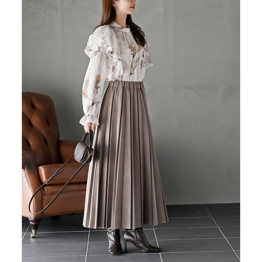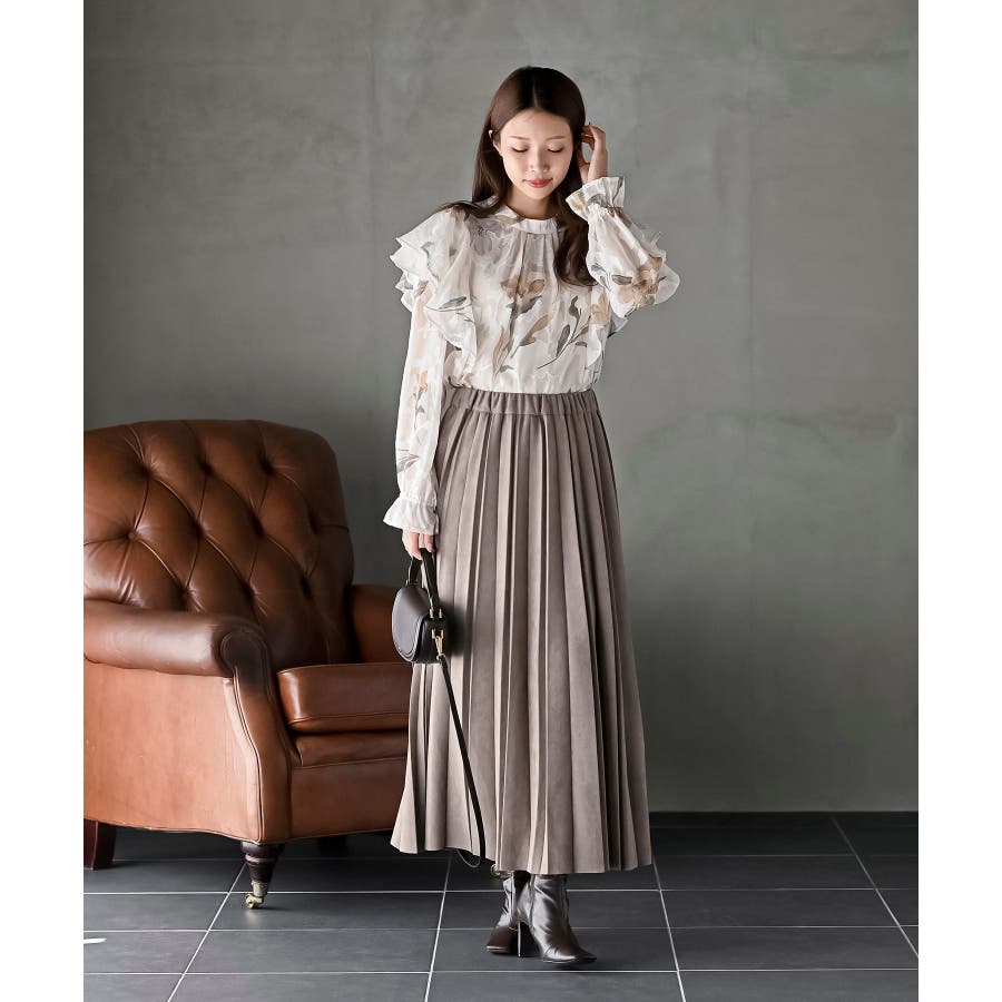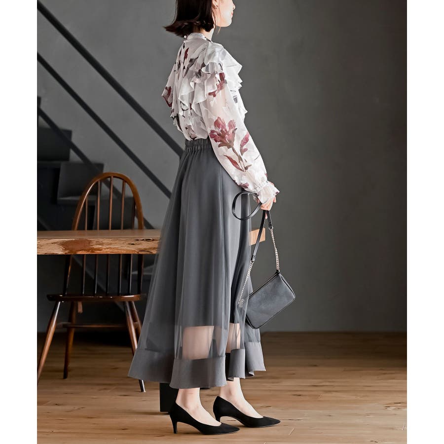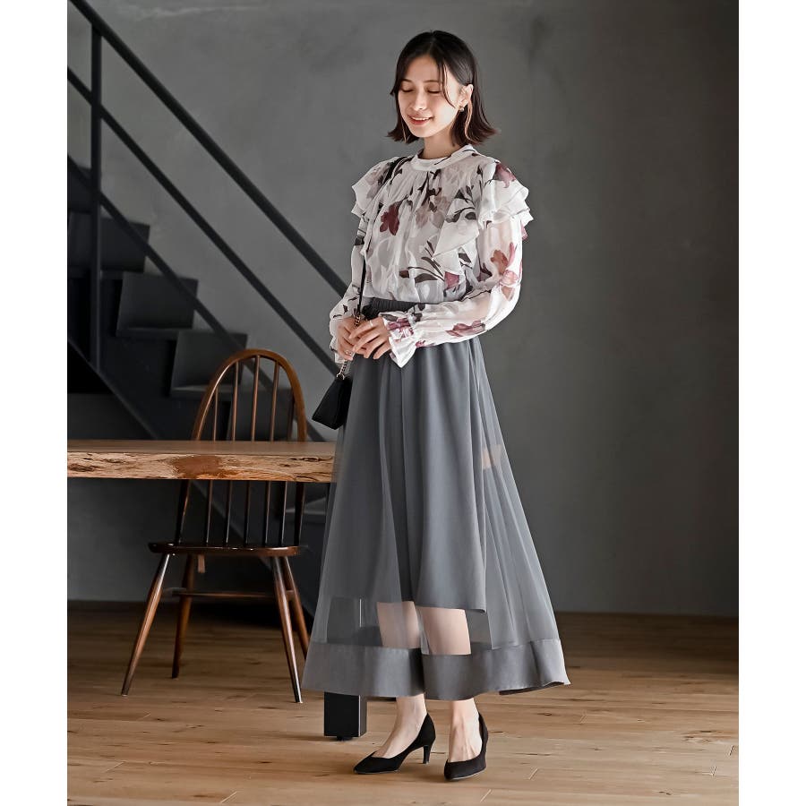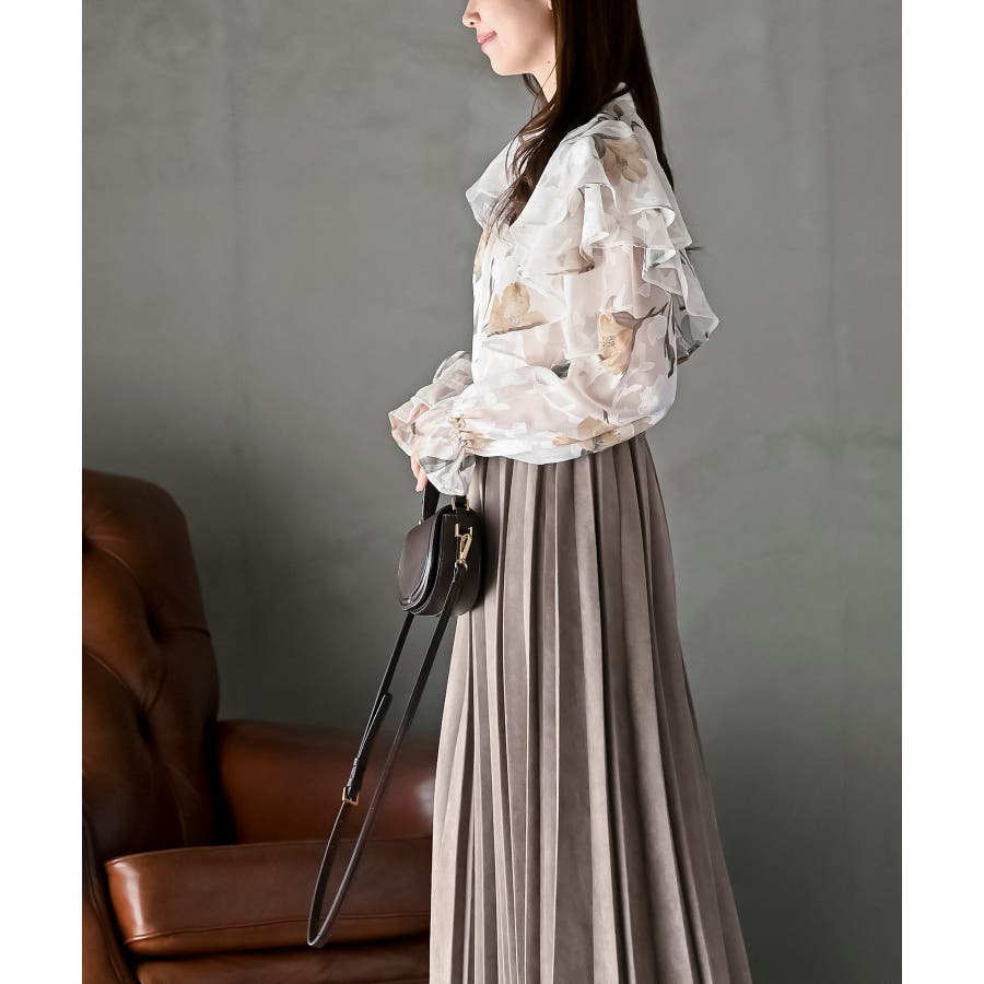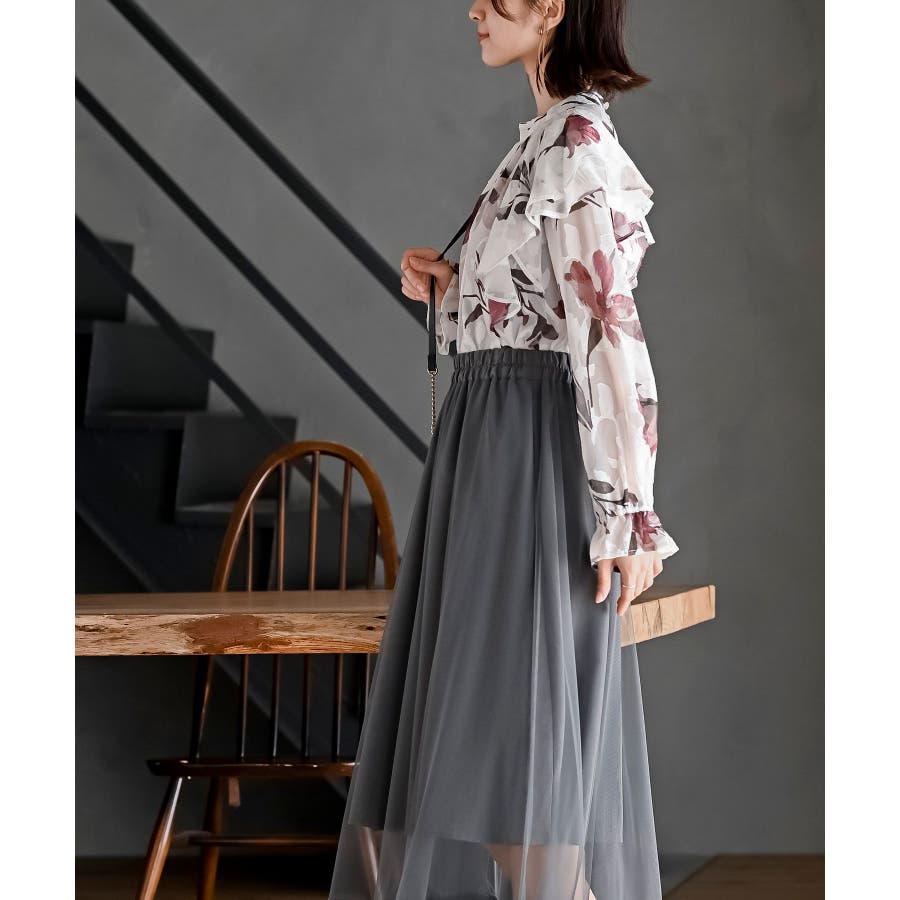 ジャガード花柄フリルブラウス