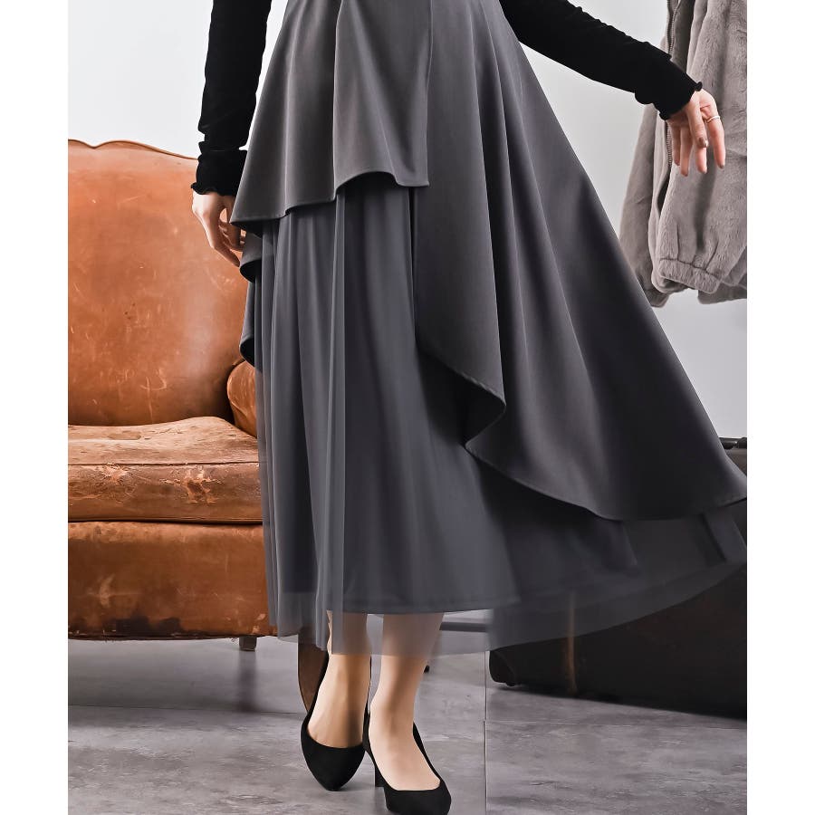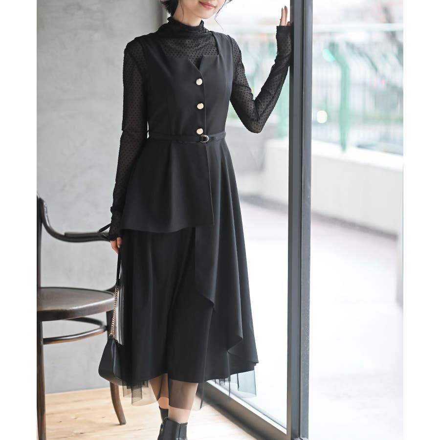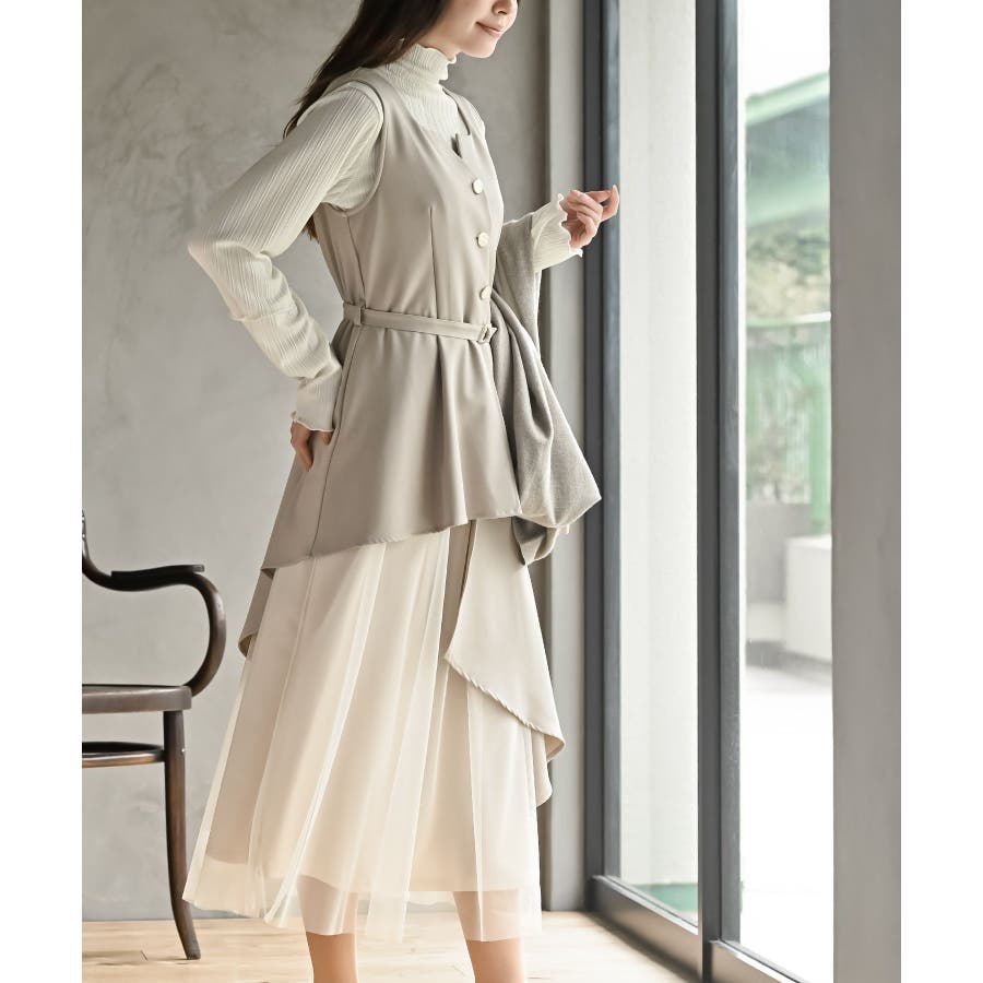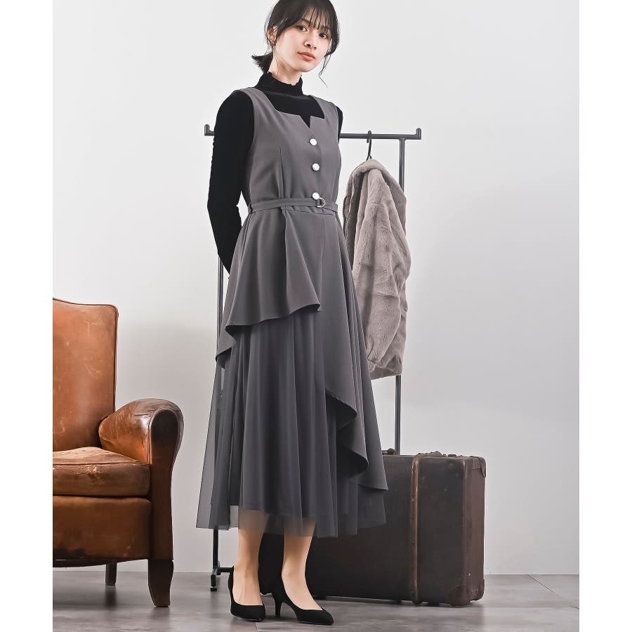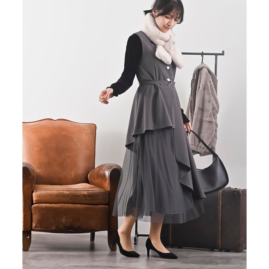 チュールレイヤードワンピース